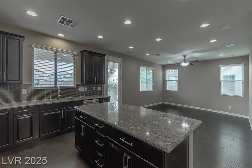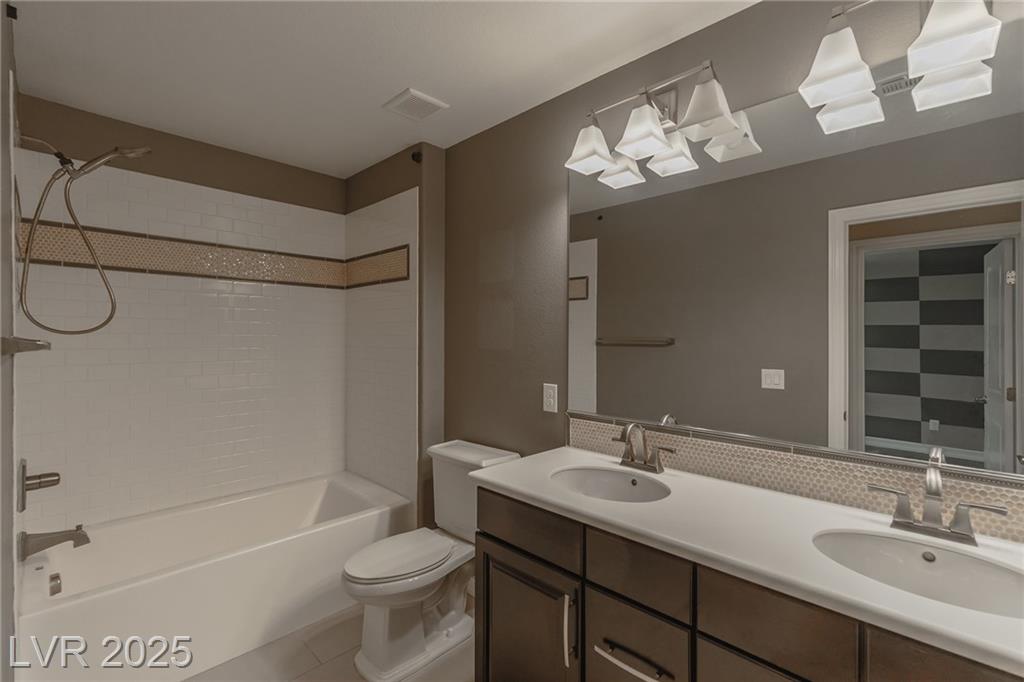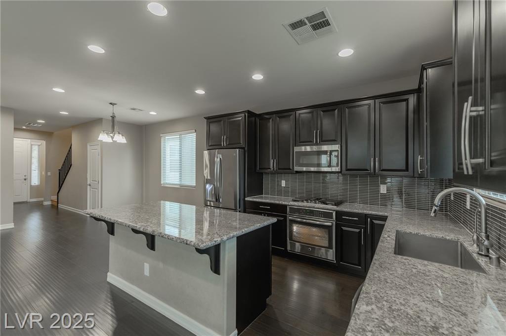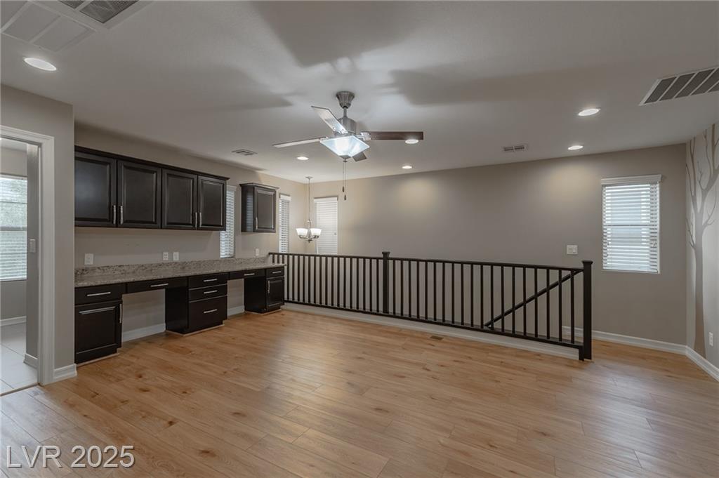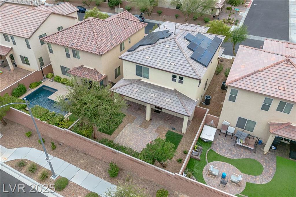 Solar Owned! LOCATION! LOCATION! LOCATION! Immaculately Maintained Two-Story, Former Model Home Located in the Highly sought-after Great Southwest area of Las Vegas! Very Cozy and Quiet Neighborhood. Home Features 4 Beds(1 Bed & 1 Full Bath Down), 3 full Bath, Very Spacious 2 Family Rooms (Upstairs and Downstairs), Massive Loft upstair with Built-In Work Station for a Home office. Gorgeous Kitchen complete with a 42' Custome Cabinetry, Beautiful Backsplash, Stainless Steel Appliances and Island with Granite Countertops. Luxury Engineering Wood Floor throughout 1st Floor and Upgraded Modern Style Laminate Flooring throughout Upstair. Upgraded Light Fixture and Upgraded Heavy Insulation from the Builder. Low maintained Backyard with Covered Patio. Huge Primary Bedroom and Ceiling Fans & Light in Everyroom including Familyroom & Loft. Convenient Location close to 215 Freeway and many Restaurants, Shopping, School, Parks