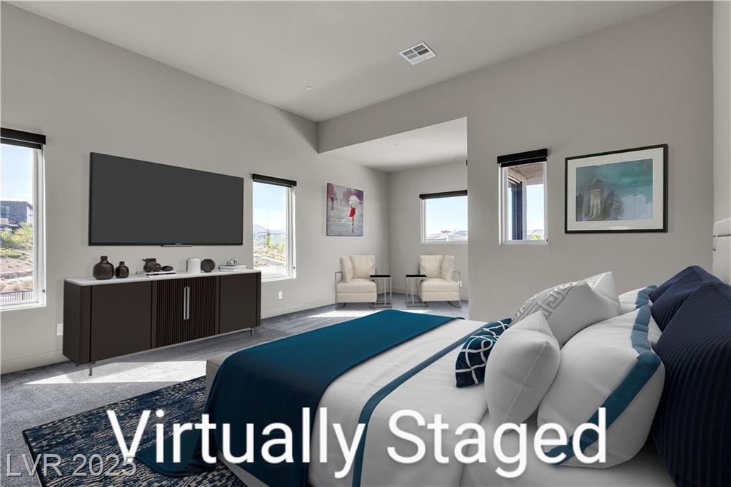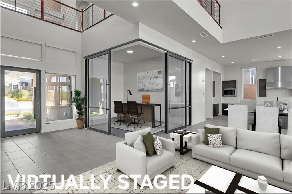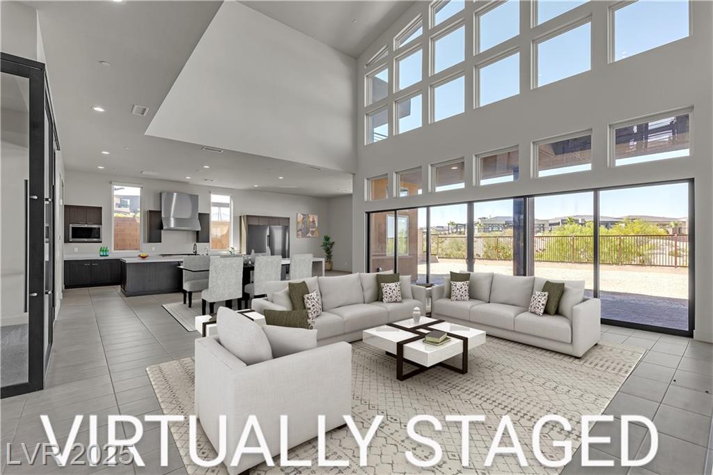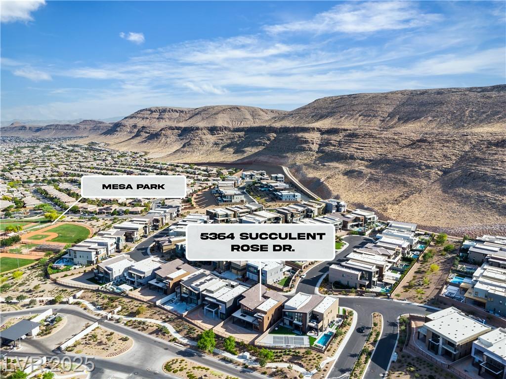 PRICED UNDER APPRAISED VALUE. Welcome to 5364 Succulent Rose Dr, a stunning modern estate in the prestigious guard-gated Skyview Collection at Mesa Ridge by Toll Brothers. Built in 2023 on a 9,583 sq ft lot, this 5,218 sq ft home offers 5 bedrooms, 5.5 baths, and elevated desert contemporary living. The chef’s kitchen showcases Wolf & Decor appliances, Oversized Quartz island, and custom cabinetry. Towering ceilings, a dramatic two-story fireplace, and pocket doors create seamless indoor-outdoor flow with breathtaking Strip, city, and mountain views. The private backyard is a blank canvas—ready for your dream pool, spa, or outdoor kitchen. Enjoy access to nearby Mesa Park, all within a short drive to Downtown Summerlin. Rare opportunity to own a luxury home in one of Las Vegas most exclusive enclaves.