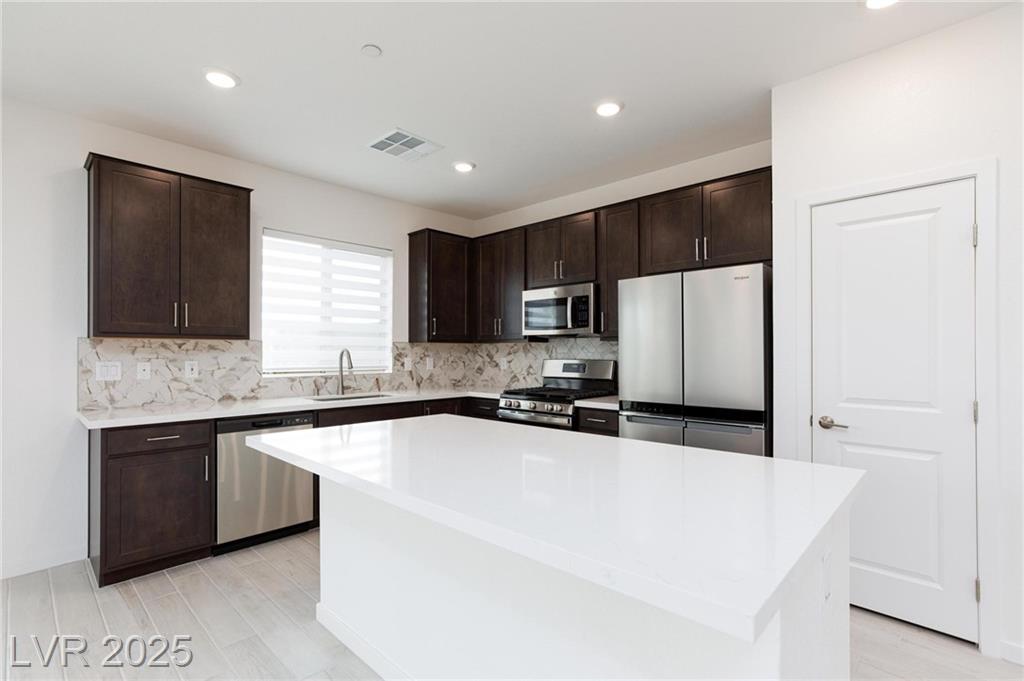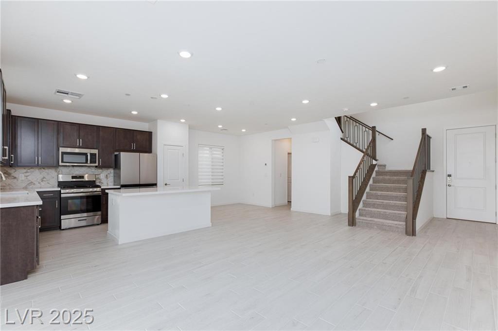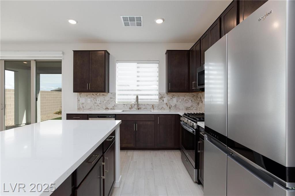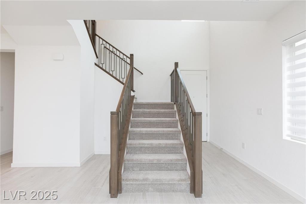 Stunning 3-bedroom, 2.5-bath modern retreat nestled in the exclusive gated community of Crested Canyon in Summerlin. This barely lived-in home offers a perfect balance of contemporary design and everyday comfort. The kitchen showcases 42-inch cabinets, stainless steel appliances, and a 12-foot center-meet sliding glass door that opens to the backyard, creating an ideal space for entertaining or relaxing. Upstairs features three spacious bedrooms, including a bright primary suite with a walk-in shower and abundant natural light. The open floor plan enhances the home’s airy feel, complemented by thoughtful upgrades such as sleek cabinet hardware, ceiling fan prewires and electronic front door lock. Move-in ready and located in one of Summerlin’s most desirable gated communities, this exceptional home combines style, function, and comfort—ready for its next owner to enjoy.
