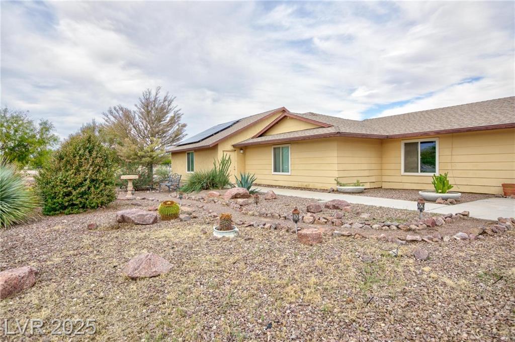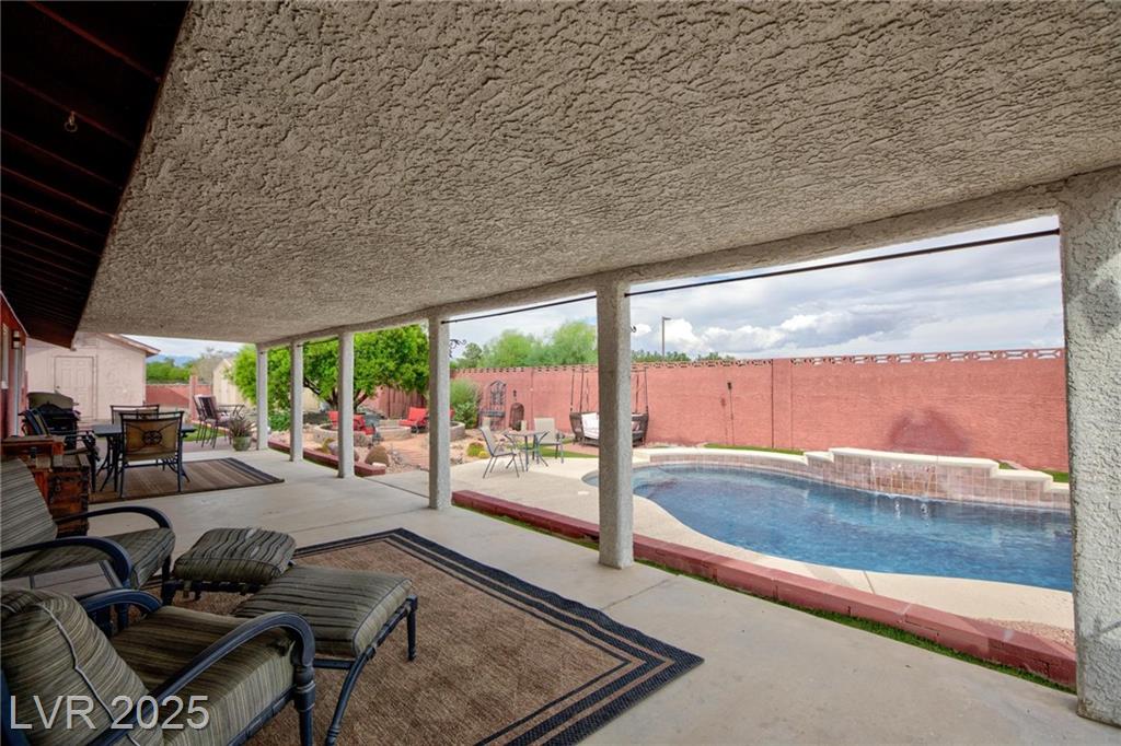 OPEN HOUSE this Sat/Sun 11a-3p. NO HOA! This unique and expansive single-story estate sits on 2/3 of an acre and offers 2,284sf of living space with 4 bedrooms, 3 baths, and an additional 576sf extra large room. The 2-car tandem garage can accommodate up to 4 vehicles, plus there’s RV parking, a pet area and solar. Vintage charm flows throughout, featuring a cozy wood-burning fireplace and beautifully landscaped yards with a private pool and waterfall. The backyard also includes a large 32x12 outbuilding and shed. Perfect for storage or creative projects. The stylish kitchen showcases painted cabinets and granite countertops, while the bathrooms feature granite counters, upgraded Kohler fixtures, and spacious vanities. Enjoy the benefits of a private community water well (only $500/yr), septic system, and a quiet cul-de-sac with just 4 custom homes. Neighborhood amenities coming soon include a park, walking trail, and tennis/pickleball court. Plenty of space for the whole family.