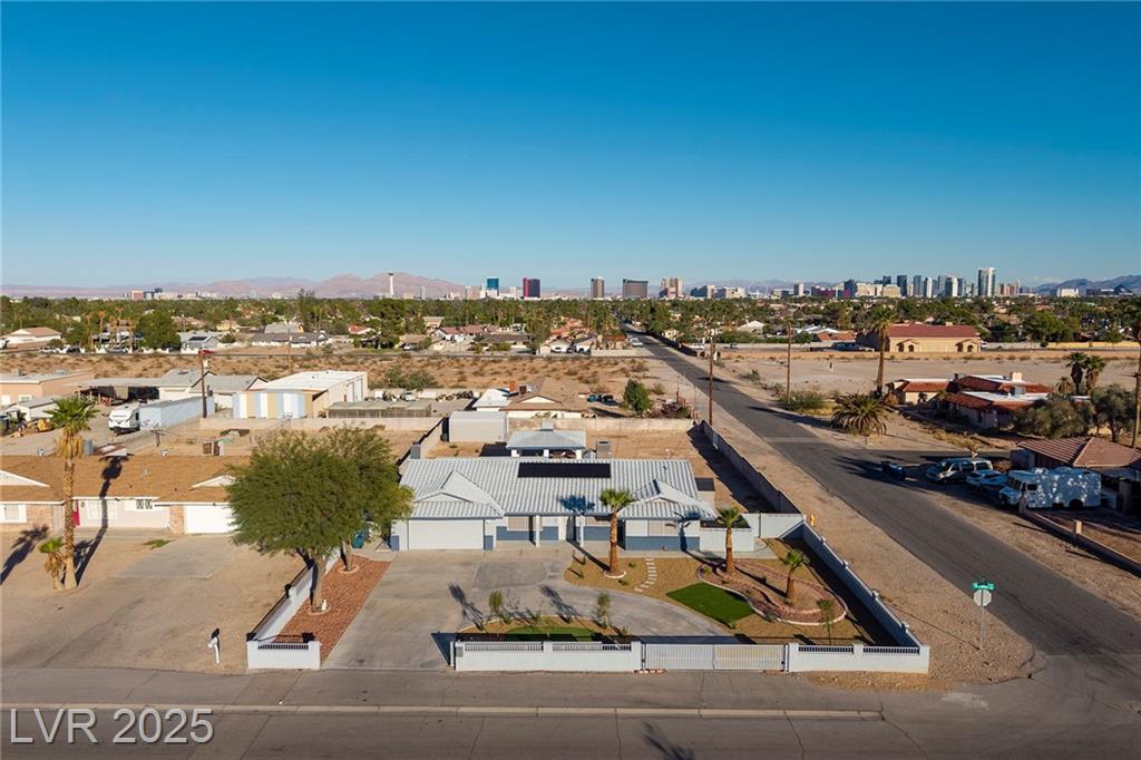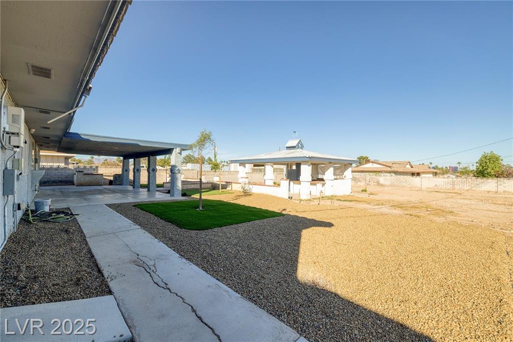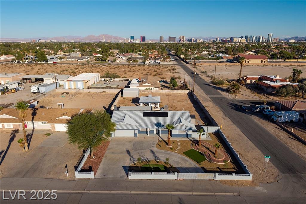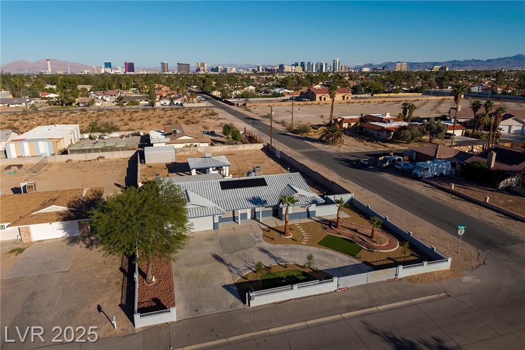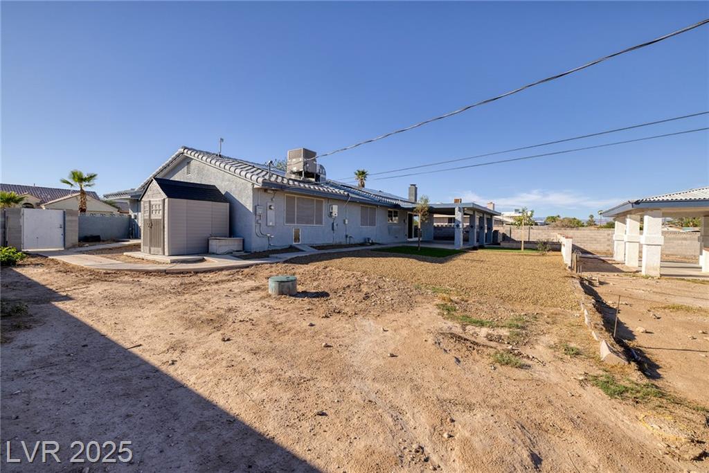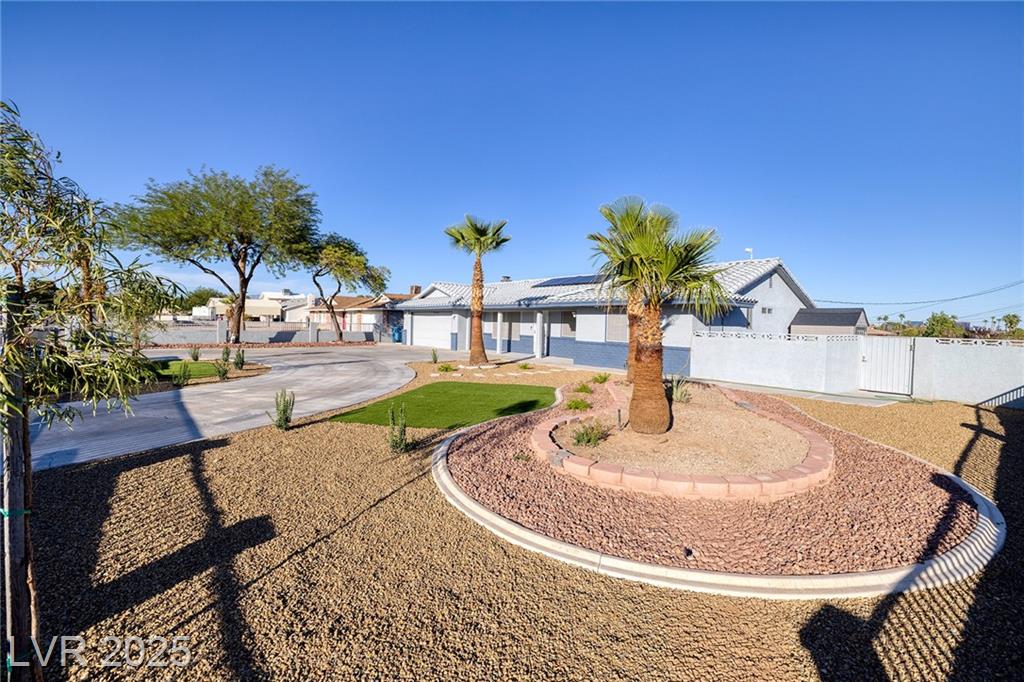 WELCOME TO YOUR NEW HOME! THE ELECTRIC GATES WELCOME YOU TO THE CIRCULAR DRIVEWAY AND LOW MAINTENANCE YARD. SOLAR PANELS ALSO MAKES THIS HOME SUPER ENERGY EFFICIENT WITH SOLAR BILLS AT $20/MONTH. THIS HOME SITS ON A HALF ACRE WITH NO ASSOCIATION AND HAS ROOM TO DO EVERYTHING YOU CAN DREAM OF. THE COVERED BBQ PATIO ALREADY HAS RUNNING WATER AND ELECTRICITY SO THERE IS SO MUCH POTENTIAL TO DO MORE WITH IT, MAKE IT BIGGER, CONVERT IT TO A CASITA, ADD A POOL, THE LOT IS SO LARGE YOU CAN HAVE IT ALL! IF YOU OWN A COMPANY WITH TRUCKS AND EQUIPMENT THE PROPERTY ALSO HAS A SEPARATE GATE AT THE BACK AND A LARGE STORAGE SHED. THIS HOME IS ALSO STEPS AWAY FROM CHINA TOWN, RAIDER STADIUM AND THE INFAMOUS LAS VEGAS STRIP