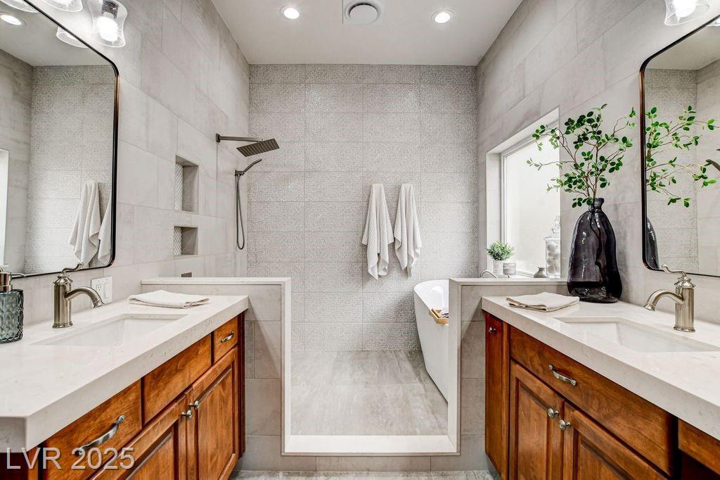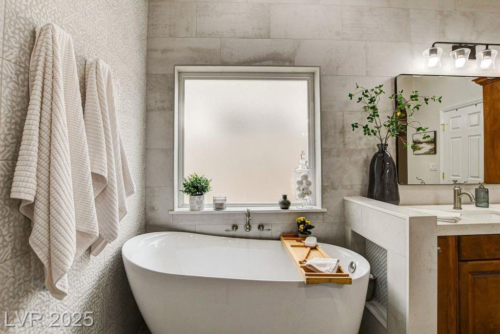 INCREDIBLE OPPORTUNITY! ONE-OF-A-KIND CUSTOM THAT LIVES LIKE A SINGLE-STORY HOME IN THE GUARD-GATED COMMUNITY OF PAINTED DESERT NEAR LONE MOUNTAIN! RECENTLY REMODELED FOR MODERN 2025 LIVING. THIS BEAUTIFUL 4 BEDROOM PLUS OFFICE AND LOFT HOME FEATURES AN OPEN FLOOR PLAN WITH SOARING CEILINGS AND 2X6 CONSTRUCTION. GORGEOUS QUARTZ COUNTERS, DESIGNER CABINETRY, AND UPGRADED STAINLESS STEEL APPLIANCES. STUNNING FLOOR-TO-CEILING TILE IN PRIMARY BATH PLUS TWO MORE UPDATED BATHROOMS. BEDROOMS WITH WALK-IN CLOSETS, LARGE PANTRY, CUSTOM SHUTTERS, AND A SPACIOUS LAUNDRY ROOM WITH BUILT-IN CABINETS AND COUNTERS. ENJOY YOUR PRIVATE BACKYARD RETREAT WITH A SPARKLING POOL, LARGE COVERED PATIO, AND PLENTY OF SPACE ON AN OVERSIZED LOT. 3-CAR GARAGE WITH TESLA CHARGER. SUPER-EFFICIENT ENERGY SYSTEM WITH AVERAGE POWER BILL AROUND $19/MONTH! LOCATED IN PAINTED DESERT GOLF COURSE COMMUNITY WITH CLUBHOUSE, RESTAURANT, 8 LIGHTED PICKLEBALL COURTS & 4 LIGHTED TENNIS COURTS. A TRUE GEM YOU WON’T WANT TO MISS!