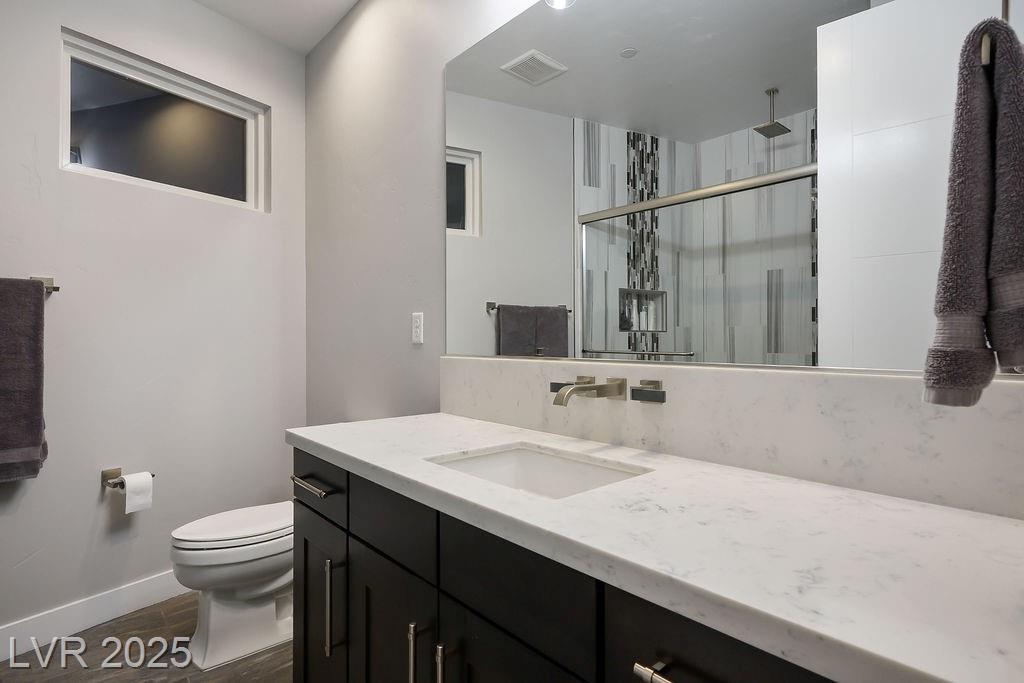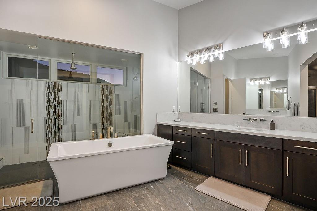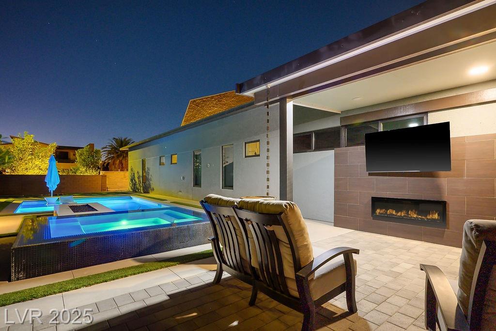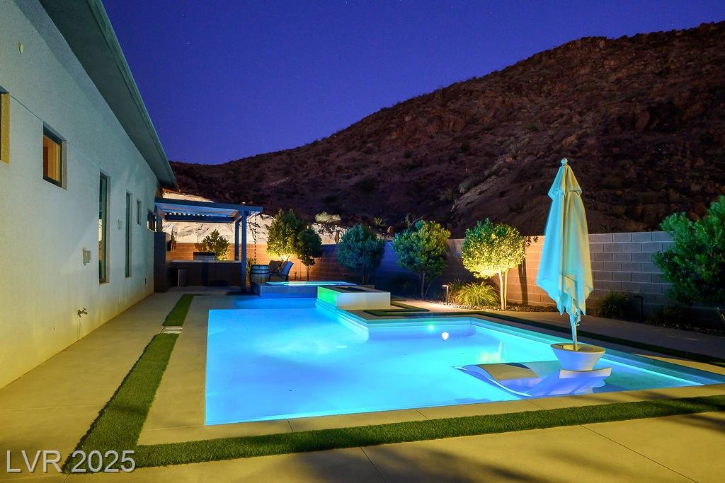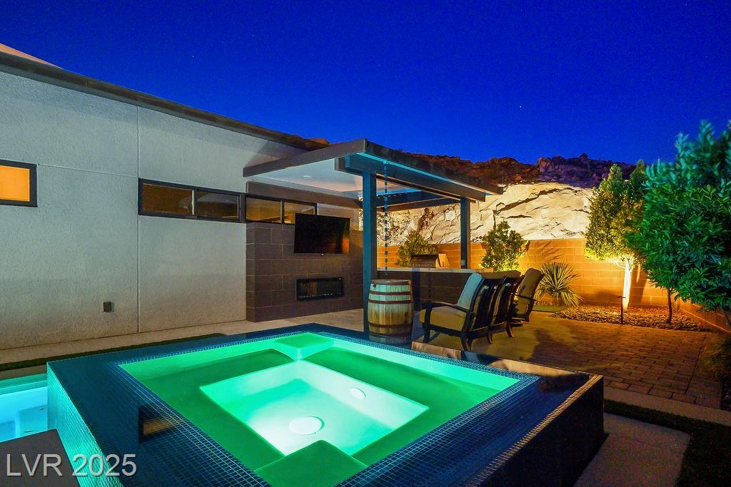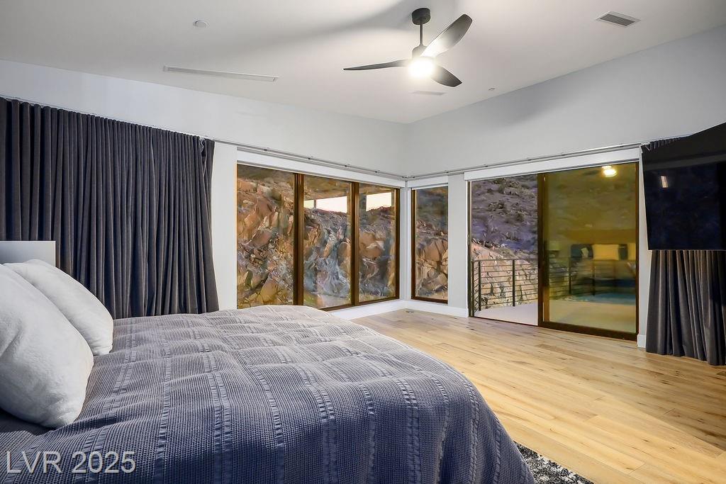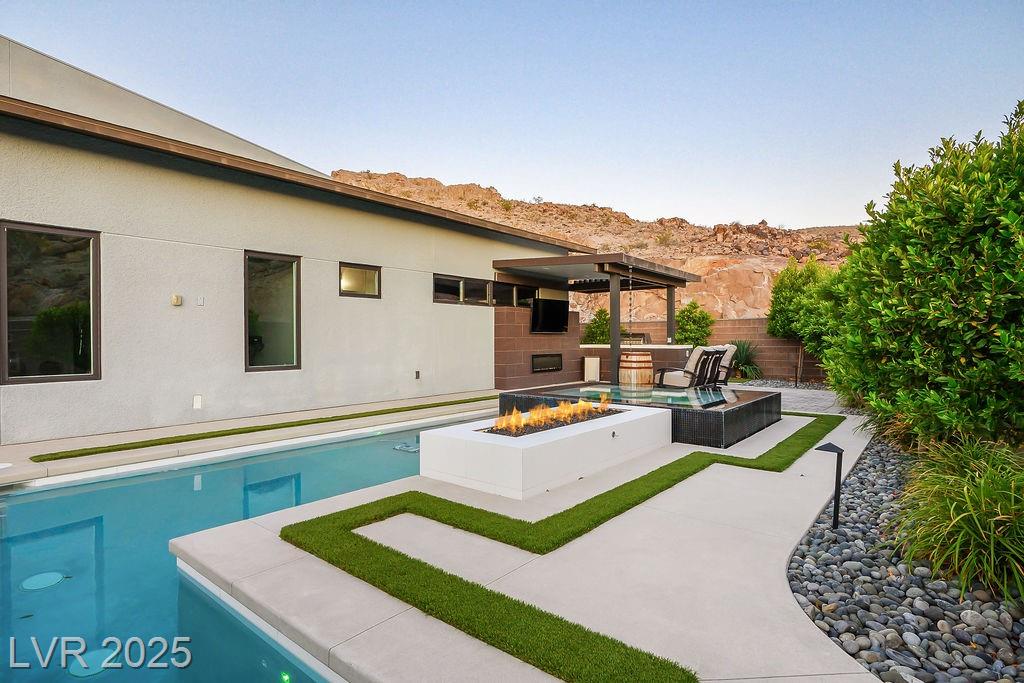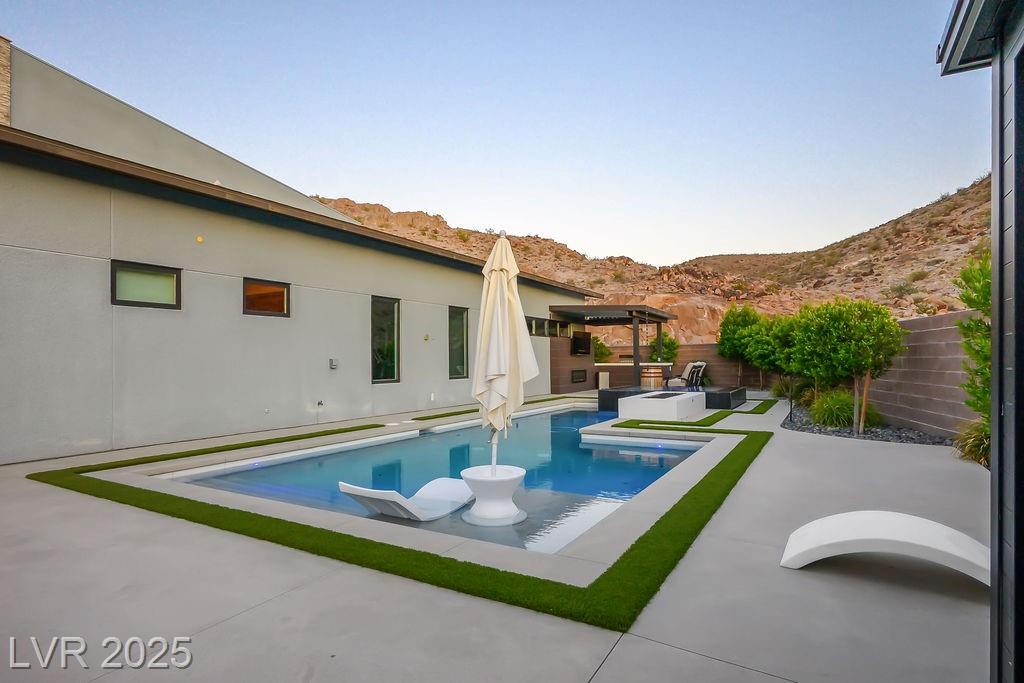 This striking 5-bedroom, 6-bath contemporary estate is located in the gated Axis at MacDonald Ranch, offering ultimate privacy and breathtaking mountain views. Expansive walls of glass fill the home with natural light and highlight an open-concept floor plan. The gourmet kitchen features top-brand appliances, a large center island, custom cabinetry, and a walk-in pantry. The primary suite offers a spa-inspired bath with freestanding tub, oversized shower, and walk-in closet. Each additional bedroom has an en suite bath. Outdoors, enjoy a pool, elevated spa, outdoor kitchen, covered patio. Additional highlights include a dedicated office, 3-car garage, and motorized window treatments. Every detail reflects modern design, luxury, and thoughtful living.