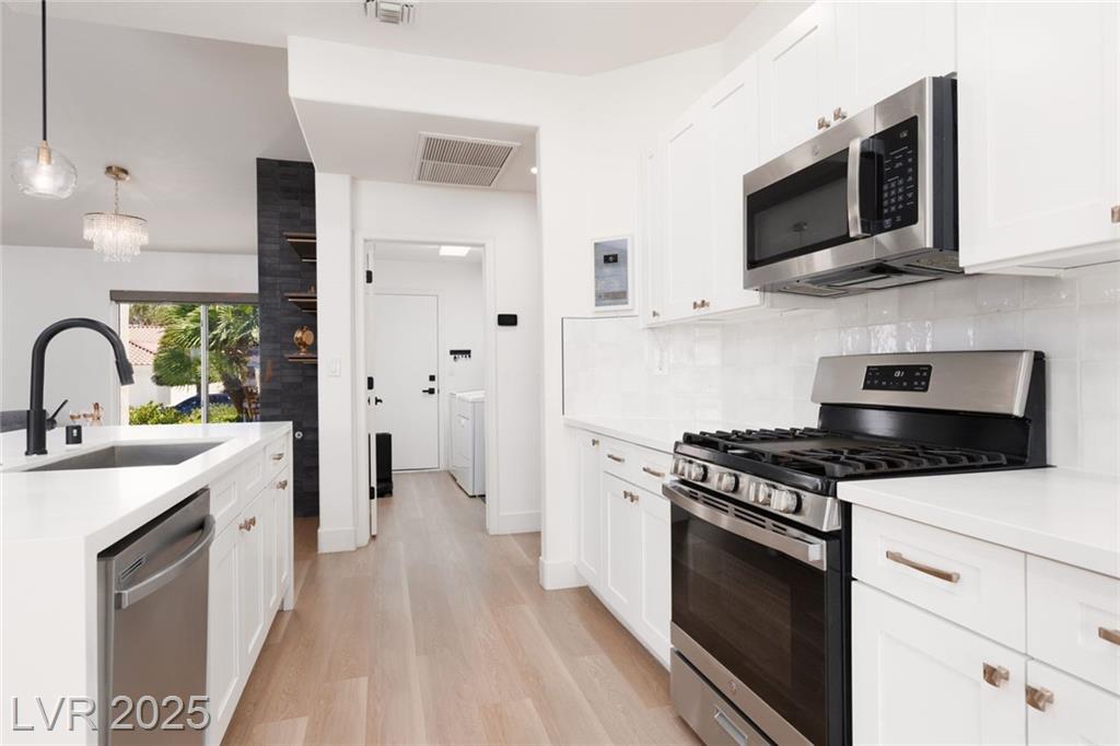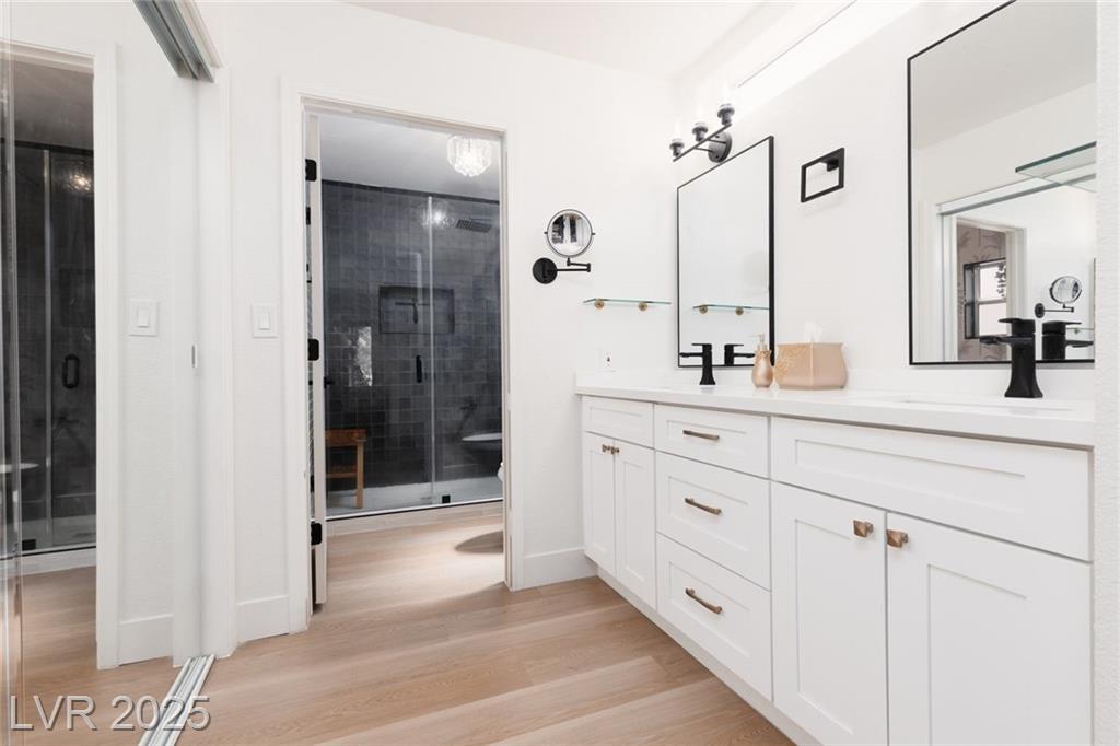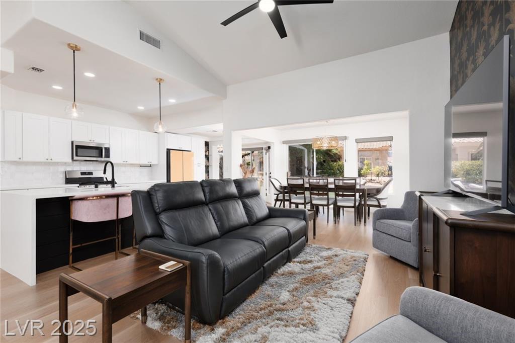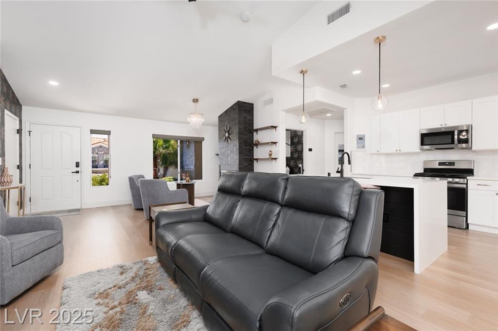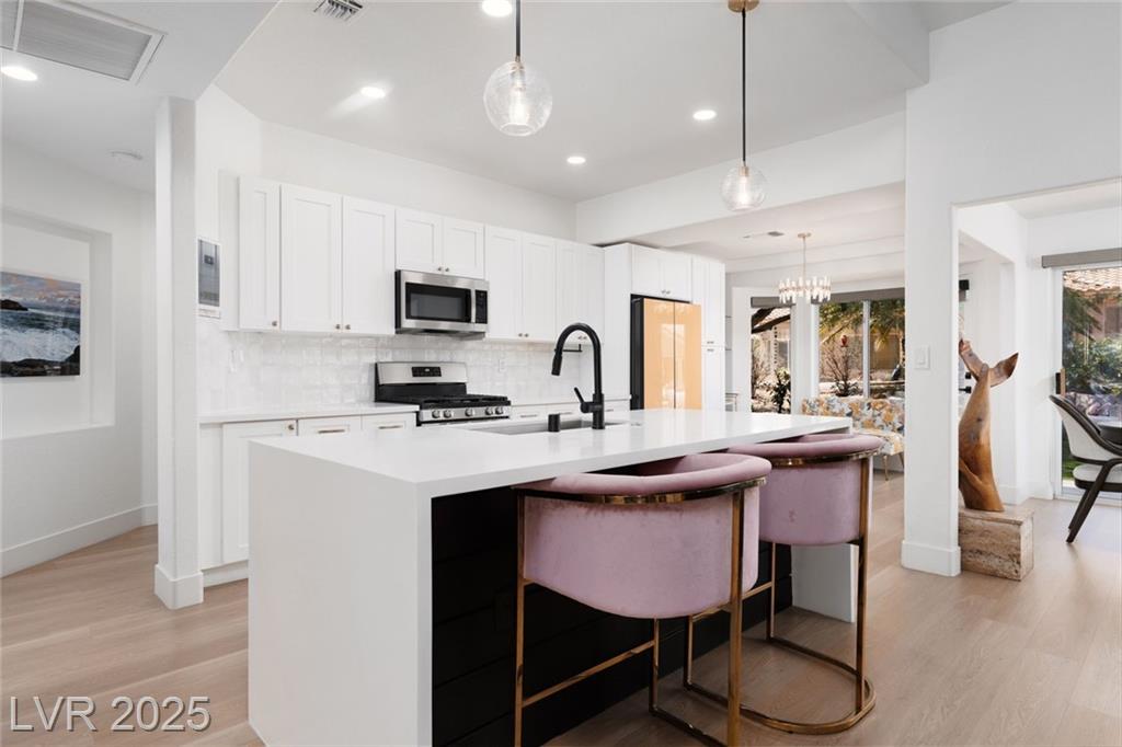A MUST-SEE FOR BUYERS WHO APPRECIATE DESIGN & UPGRADES! This beautifully upgraded home in the sought-after 55+ community of Sun City Summerlin blends modern style with everyday comfort. Come and tour the open-concept layout perfect for both living and entertaining. The stunning kitchen showcases quartz countertops, custom cabinetry, stainless steel appliances, and a large center island—perfect for hosting. Luxury vinyl flooring runs throughout, complemented by plush carpet in the bedrooms for added comfort. Recent upgrades include a new water heater and air conditioning unit (installed approx. 2 years ago) for energy efficiency and peace of mind. Enjoy low-maintenance desert landscaping in the front and back yards, with modern outdoor seating areas designed for relaxation. Located in one of Las Vegas’ most desirable 55+ communities offering 3 golf courses, 4 clubhouses, pools, fitness centers, a theater, and over 80 social clubs—all with a low monthly HOA.