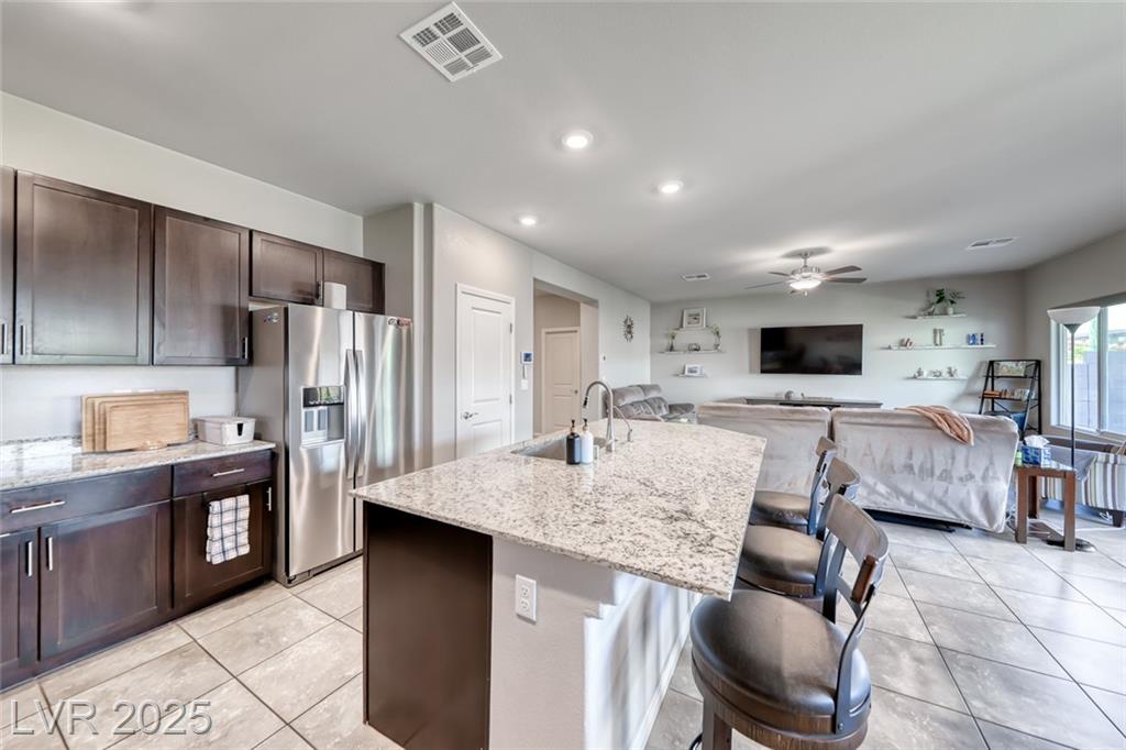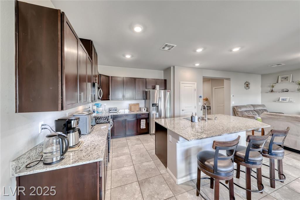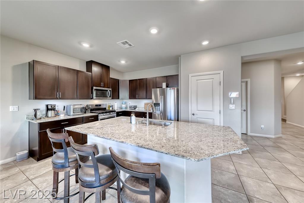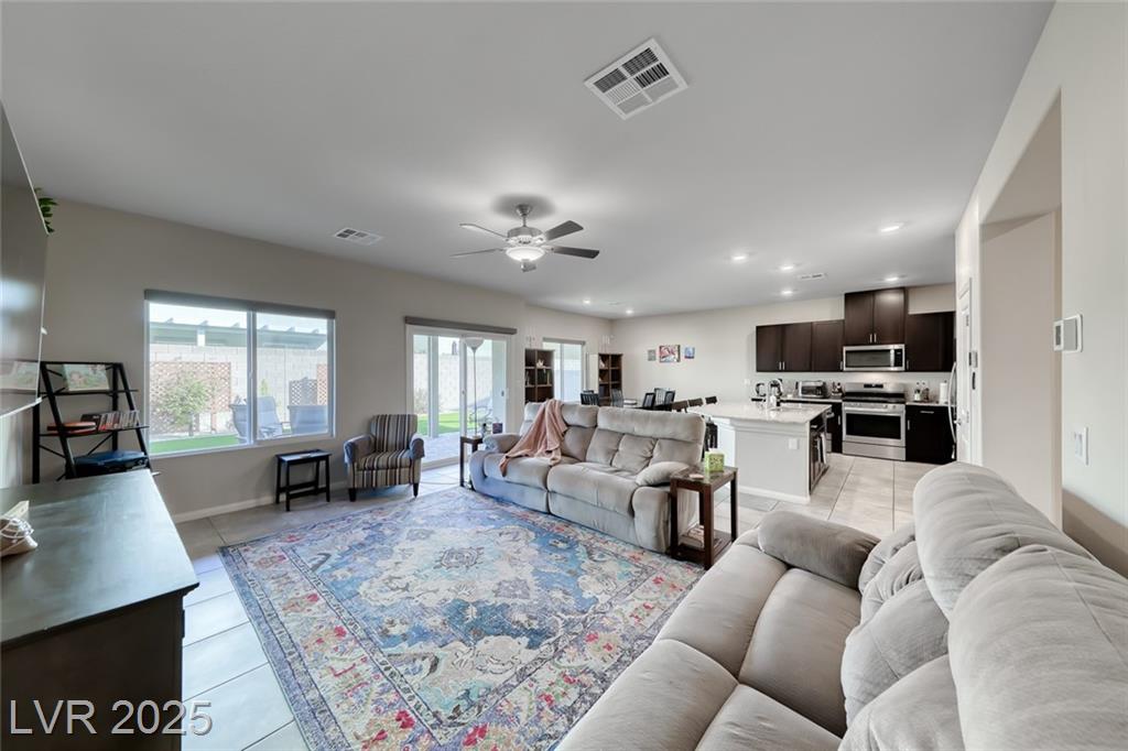 Discover your forever home at 4016 Floating Fern, North Las Vegas, NV 89084! This stunning 5-bedroom, 3-bath, 2,643 sq. ft. gem in the prestigious gated Valley Vista master-planned community offers modern elegance and spacious comfort. Enjoy an open-concept layout with beautiful tile floors, large kitchen featuring granite countertops and stainless steel appliances, and a luxurious master suite with a spacious bath. The three-car garage with beautiful epoxy floors offers ample space and a polished look. Flooded with natural light, this move-in-ready home boasts a serene backyard oasis perfect for entertaining. Nestled in a vibrant, family-friendly neighborhood with top-rated schools, parks, and walking trails, this rare opportunity in a prime gated community won’t last long. Schedule your tour today!