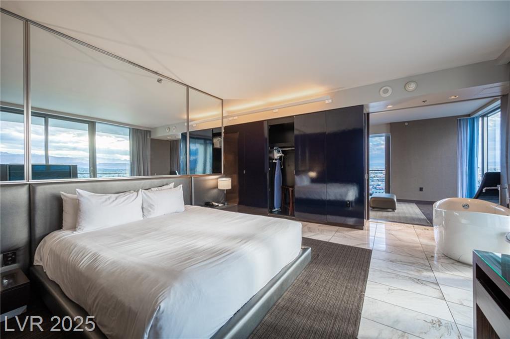 Experience Vegas Views, Vibes & Value from this stunning 25th-floor Palms Place condo! This 1 bed, 2 bath, 1,220 sqft luxury unit is fully furnished, turnkey, and ready to generate income. Enjoy Strip and mountain views, a spacious open layout, and high-end finishes throughout. This unit can be placed in the Palms rental program or managed privately for passive income potential. Enjoy resort-style amenities including a pool, spa, fitness center, 24-hour concierge, and valet. Located minutes from the Strip yet offering a peaceful retreat, this is your chance to own a piece of the Las Vegas skyline that works for you!