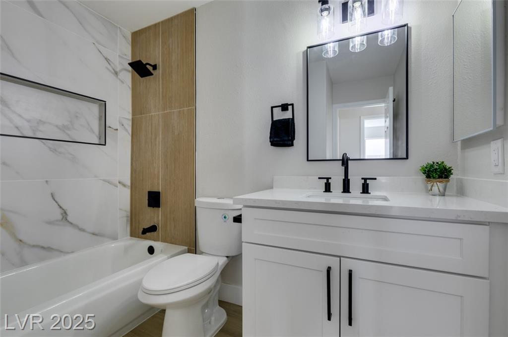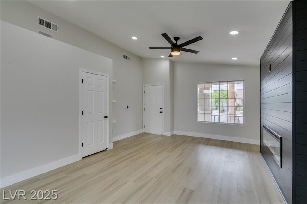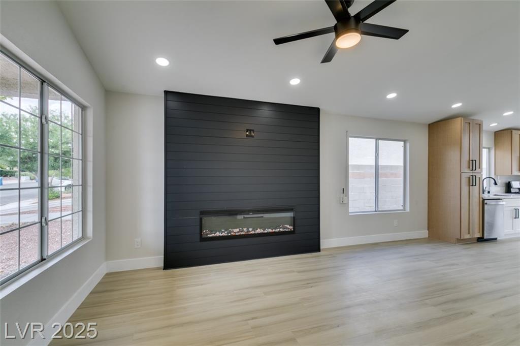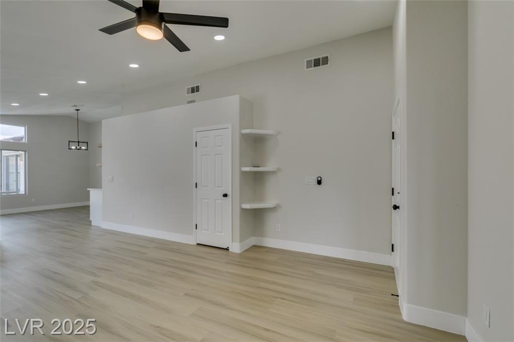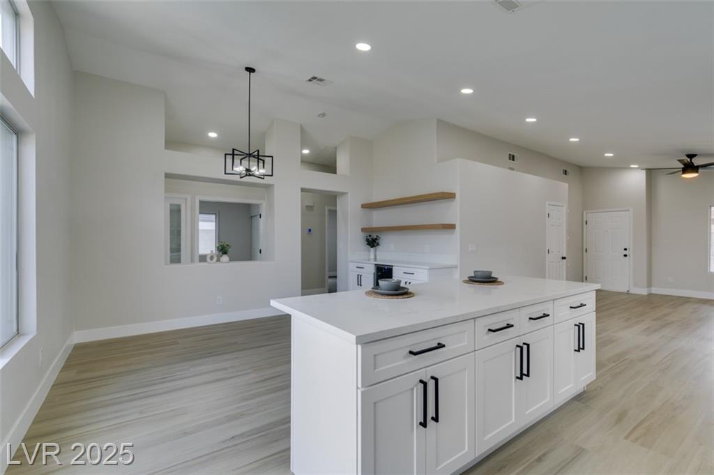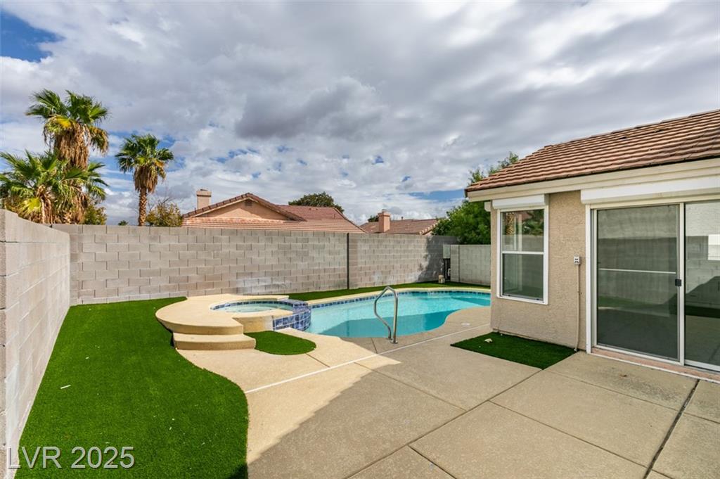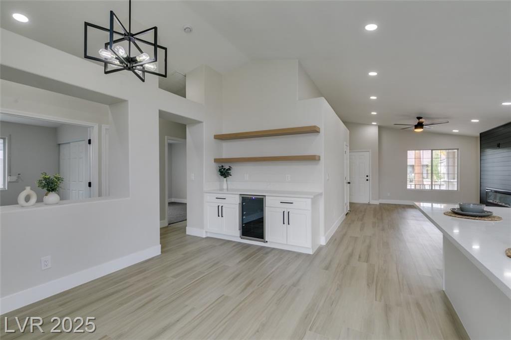 Stunning single story Summerlin home with pool & spa! This open concept remodel features vaulted ceilings, white oak & white shaker cabinets, quartz countertops, and stainless steel appliances. Entertain in style with a bar area and floating shelves. Relax by the custom floor-to-ceiling fireplace that anchors the living space. Rolladen shutters throughout add privacy, security, and energy efficiency. Bathrooms showcase porcelain Calacatta slab showers contrasted by warm oak tile and frameless glass enclosures. Finished with luxury vinyl plank flooring, 5" baseboards, and all new lighting, fans, and fixtures—this turnkey Summerlin retreat is ready to impress!