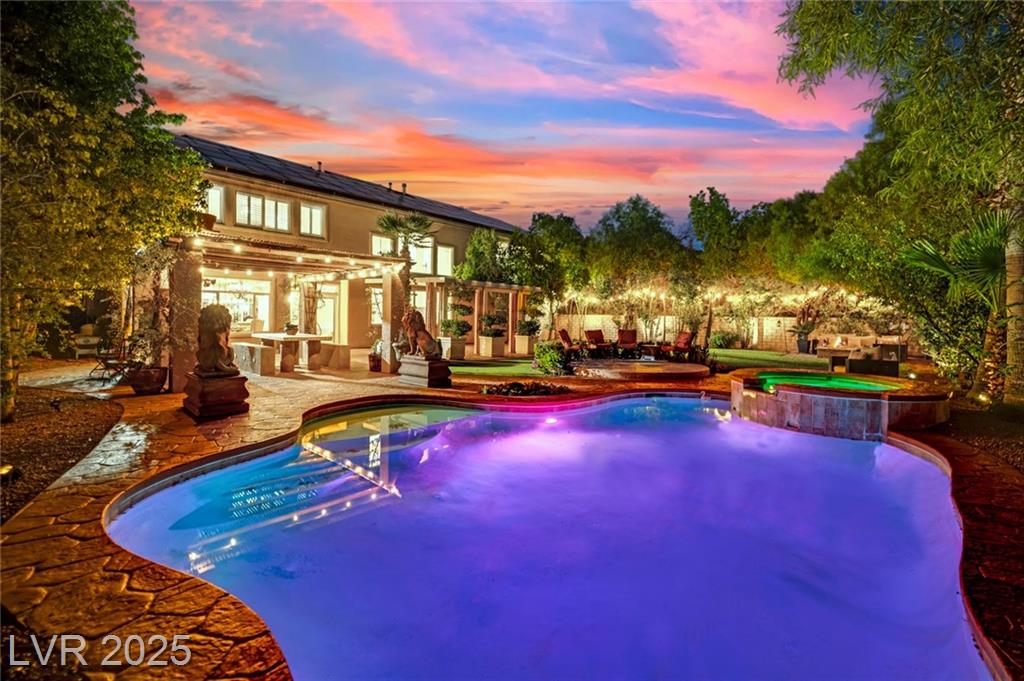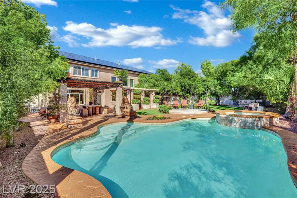 Step into a world of luxury and elegance with this stunning estate-style home in the highly desired Northwest. This one of a kind residence welcomes you with a grand entrance offers six spacious bedrooms and four and a half baths, including a Multi-Gen suite ideal for extended living. Enjoy versatile spaces perfect for a home office, gym or creative studio. The custom chef's kitchen includes stainless steel appliances, a walk-in pantry and elegant finishes throughout. Gorgeous travertine flooring and wood beans add timeless character and sophistication. Outside, retreat to your private oasis featuring a sparkling pool and lush mature landscaping with 16 varieties of cocktail fruit trees. This exceptional estate blends luxury, functionality and charm a rare find in the Northwest that truly has it all!