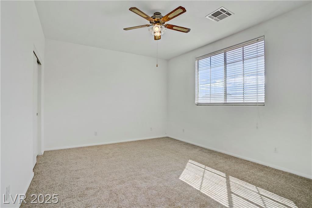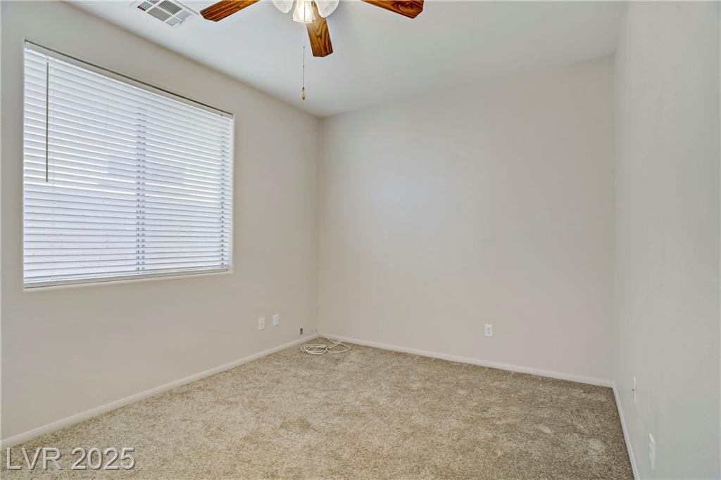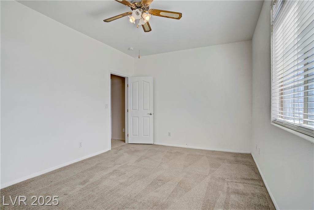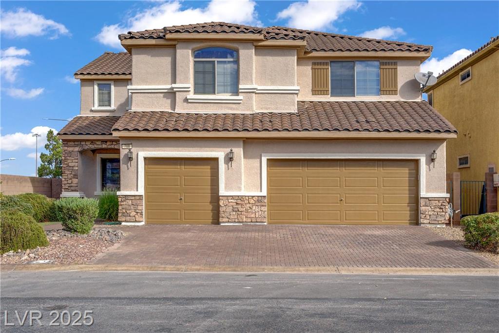 MORTGAGE SAVINGS MAY BE AVAILABLE FOR BUYERS OF THIS LISTING! It's all in the details. This stunning 2-story residence boasts 5 bedrooms & 3 full bath, including three oversized secondary bedrooms. The home features some newer carpet & tile flooring along with some laminate flooring in the family room. Ceiling fans throughout, some new interior & complete new exterior paint for a fresh feel, and a new never used dishwasher, new refrigerator and garage door opener. Entertainment center in the family room included. Step outside to a private backyard that is ready for your creativity with no neighbors to the West. The covered patio with balcony offers breathtaking views of the Las Vegas Strip, mountains & valley, perfect for enjoying sunsets & city lights. This home is clean & ready for immediate move-in. Situated within a desirable gated community, its prime location offers easy access to shopping centers, freeway access, schools, and the vibrant downtown Henderson Water Street District.