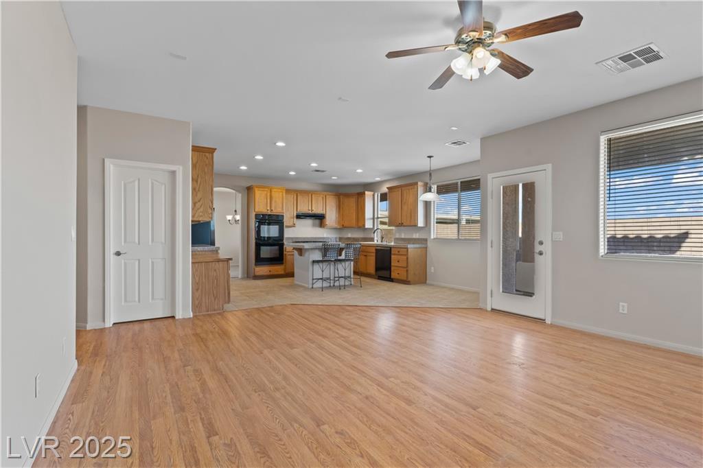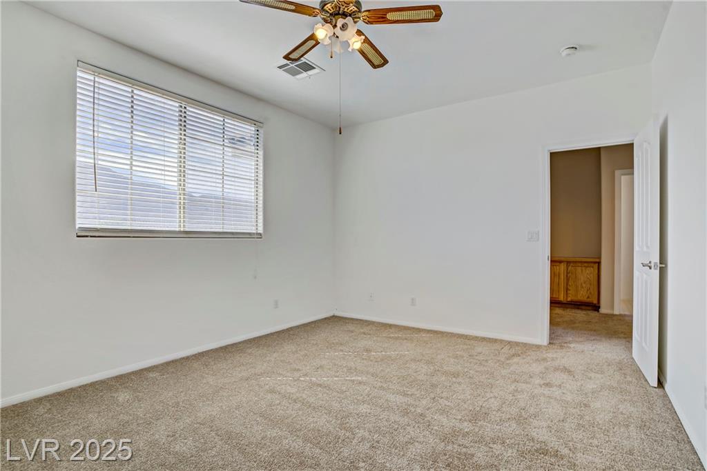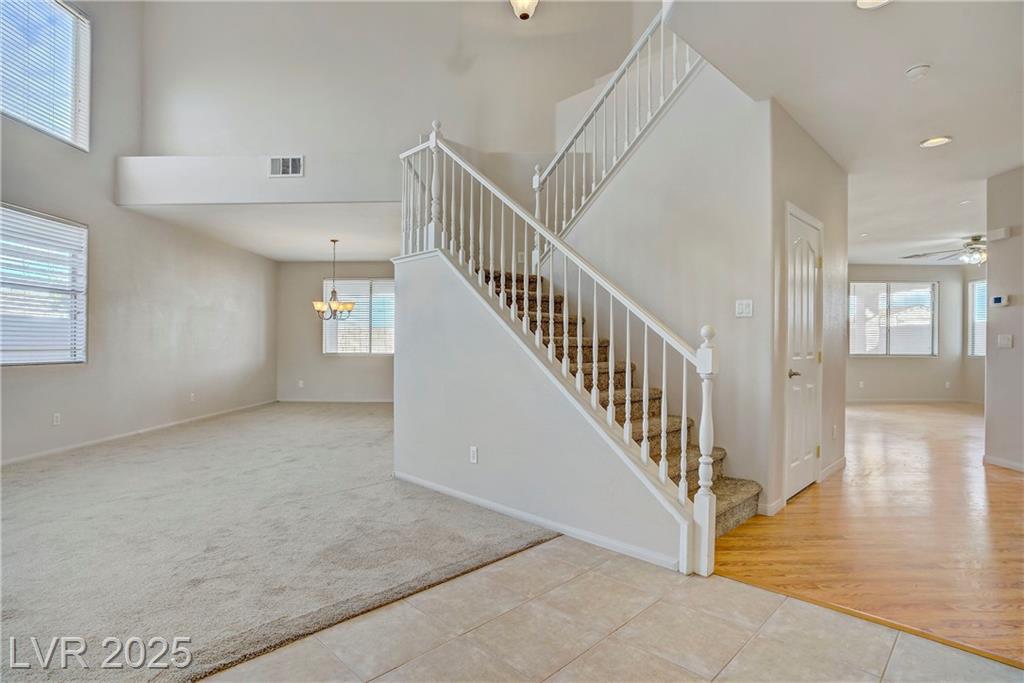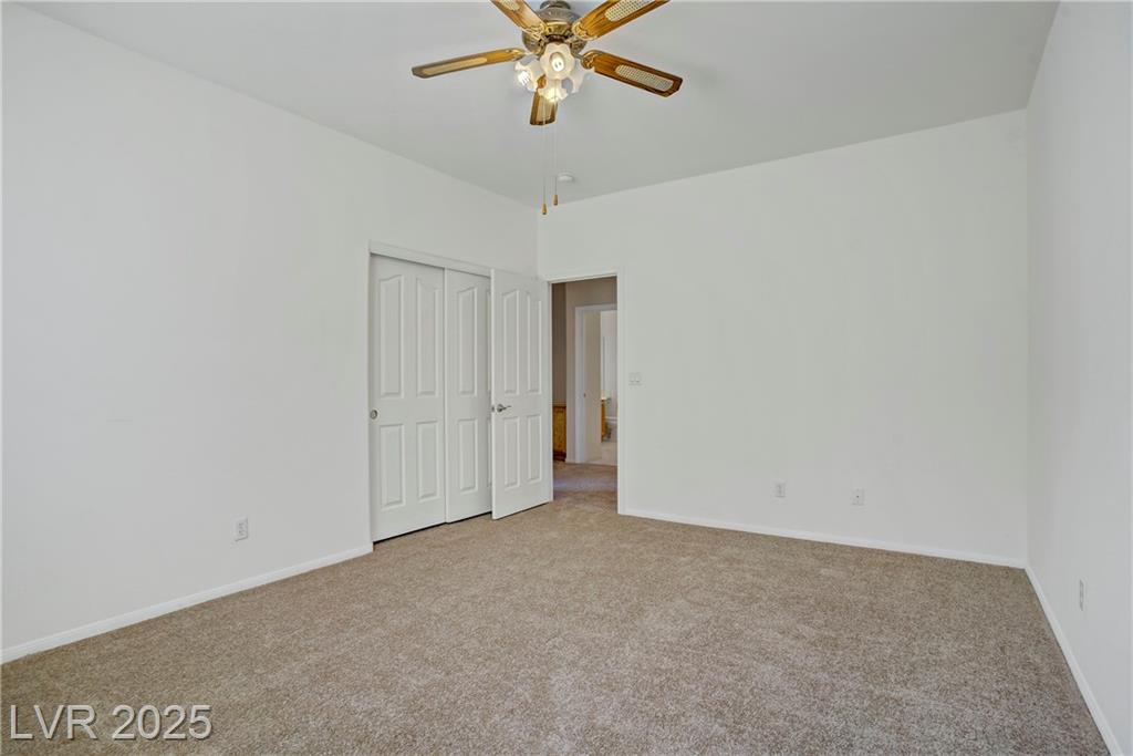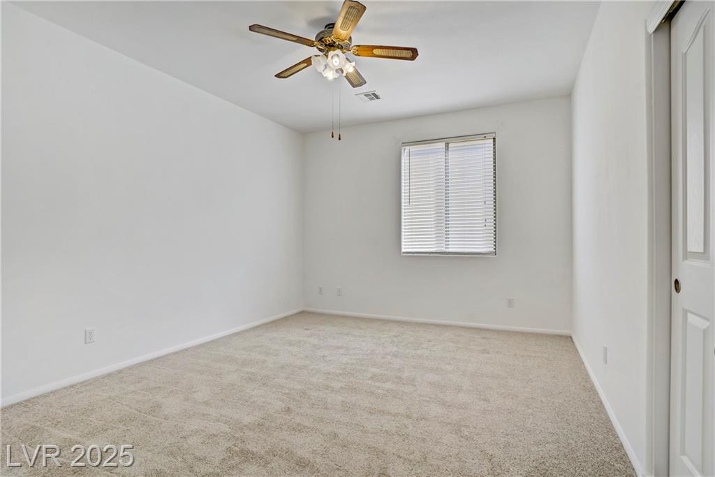 MORTGAGE SAVINGS MAY BE AVAILABLE FOR BUYERS OF THIS LISTING! It's all in the details. This stunning 2-story residence boasts 5 bedrooms & 3 full bath, including three oversized secondary bedrooms. The home features some newer carpet & tile flooring along with some laminate flooring in the family room. Ceiling fans throughout, some new interior & complete new exterior paint for a fresh feel, and a new never used dishwasher, new refrigerator and garage door opener. Entertainment center in the family room included. Step outside to a private backyard that is ready for your creativity with no neighbors to the West. The covered patio with balcony offers breathtaking views of the Las Vegas Strip, mountains & valley, perfect for enjoying sunsets & city lights. This home is clean & ready for immediate move-in. Situated within a desirable gated community, its prime location offers easy access to shopping centers, freeway access, schools, and the vibrant downtown Henderson Water Street District.
