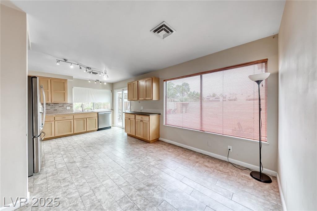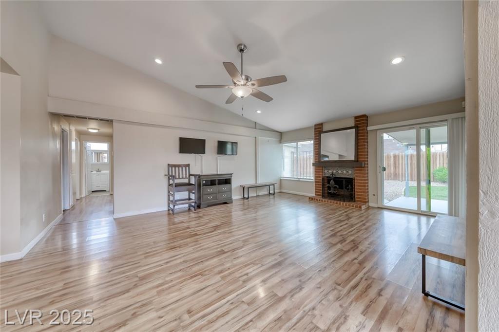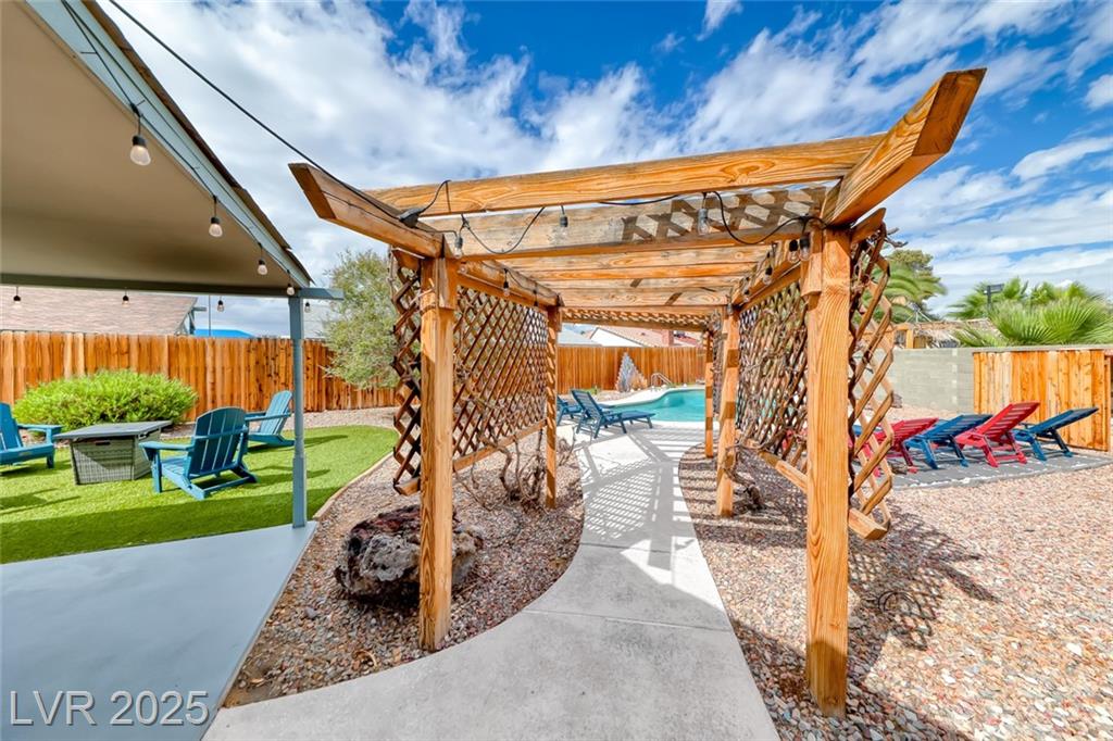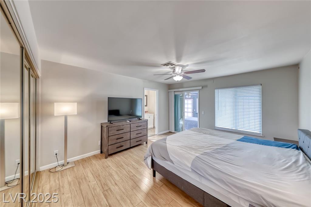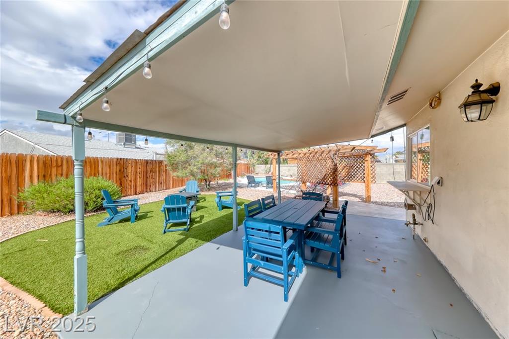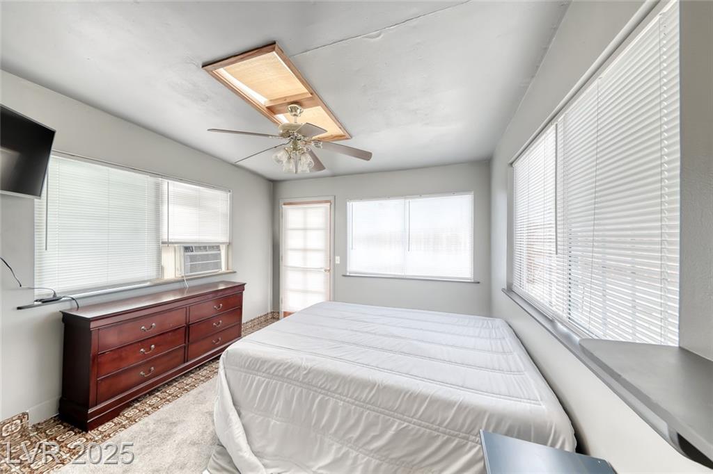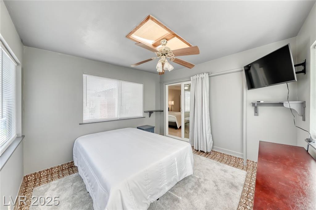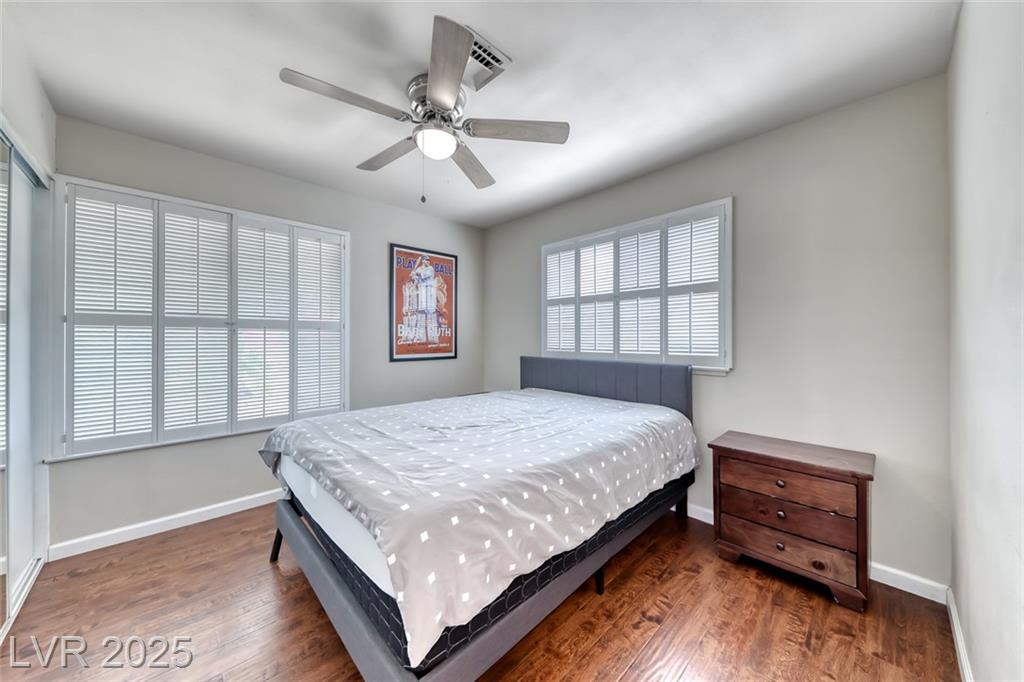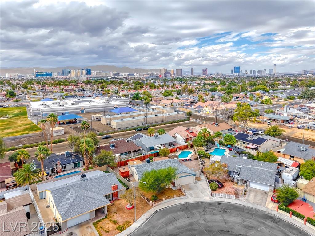 An amazing opportunity to live in the heart of Las Vegas and within minutes to UNLV, Las Vegas Strip, Harry Reid Airport, Allegiant Stadium, and everyday shopping needs. This beautiful single story property features all the comforts of home! Vaulted ceiling entry with plenty of room to entertain, enclosed garage with built-in center allowing for more livable space, spacious kitchen with plenty of cabinet storage, a generously sized primary suite and secondary sitting room, the primary bathroom has a walk in shower and double vanity, 2 additional bedrooms with ceiling fans, and a guest full bath. The backyard boasts an inground pool with new pool pump, a covered patio, artificial grass area, and is west facing to experience fantastic sunsets. The house has had quality renovations done in the last 3 years with a new AC, new roof, and water heater.