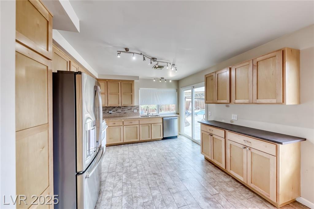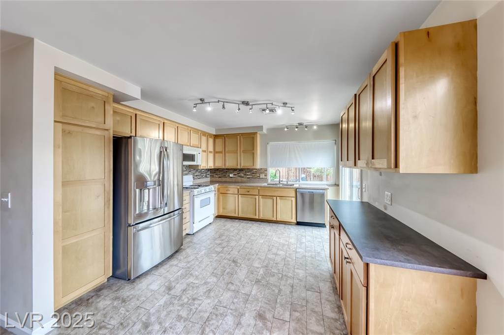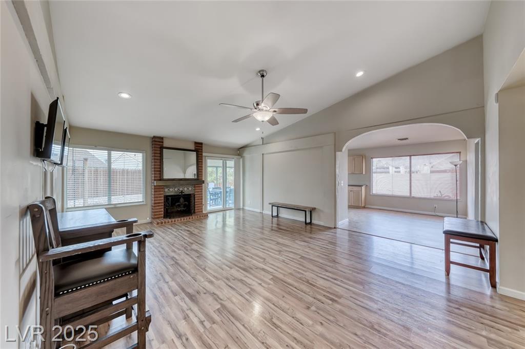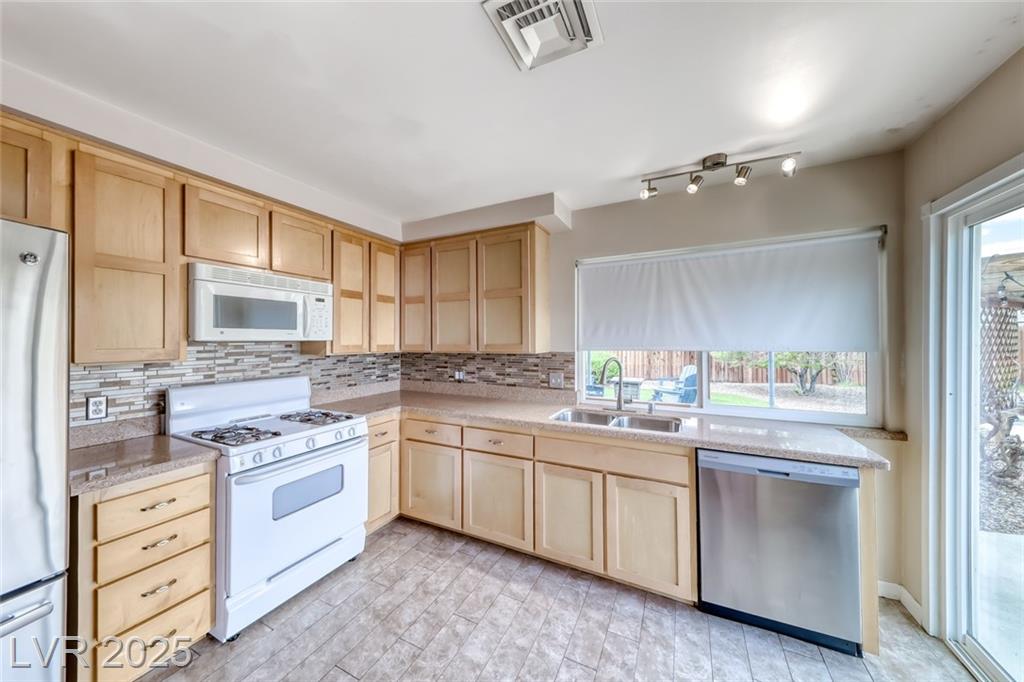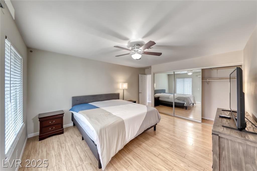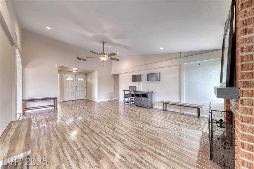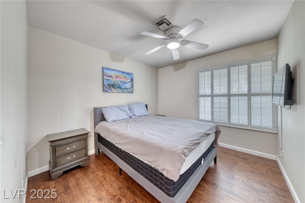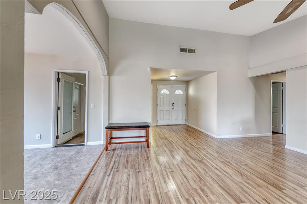 An amazing opportunity to live in the heart of Las Vegas and within minutes to UNLV, Las Vegas Strip, Harry Reid Airport, Allegiant Stadium, and everyday shopping needs. This beautiful single story property features all the comforts of home! Vaulted ceiling entry with plenty of room to entertain, enclosed garage with built-in center allowing for more livable space, spacious kitchen with plenty of cabinet storage, a generously sized primary suite and secondary sitting room, the primary bathroom has a walk in shower and double vanity, 2 additional bedrooms with ceiling fans, and a guest full bath. The backyard boasts an inground pool with new pool pump, a covered patio, artificial grass area, and is west facing to experience fantastic sunsets. The house has had quality renovations done in the last 3 years with a new AC, new roof, and water heater.