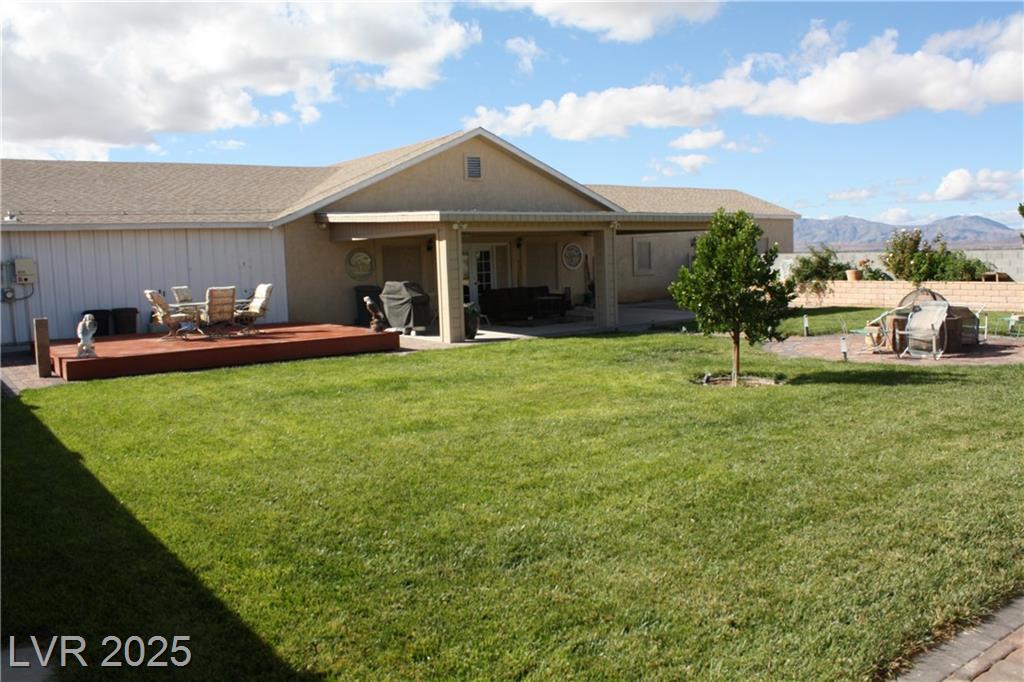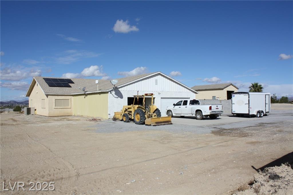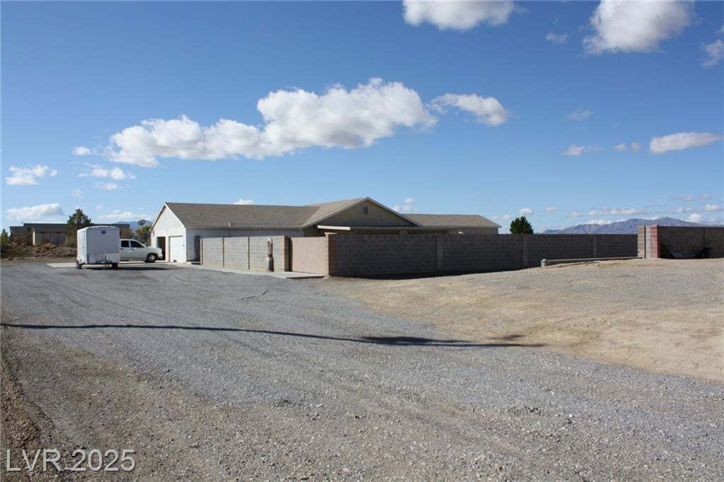 3 Bedroom home on approx. 8.71 acres in North end of Pahrump. Incredible 360-degree views of Pahrump Valley, Mount Charleston and other areas as well. Approx. 2540sf, single story, 3 full baths, 38x31 approx. garage! no HOA! Private well with no fees. Separate RV garage (24X42) approx. with upper storage level built in. Also, a separate 2 car garage where well equipment resides. High ceilings, ceiling fans, solar panels, covered patio (as-is) with ceiling fans. Fully landscaped rear yard with grass and auto sprinklers, Trees growing, newer paver fire pit, pavers galore! There is a 150-foot (approx. length) garden with roses, vegetables, bubbler system all on auto timers, paver pathway lights, approx. 16x20 raised deck for backyard viewing stars at night! Front courtyard started for you to finish your way! Block walls around backyard, and some perimeter walls already up. Fruit trees, completely new roof in 2020, $20K extra Blocks & Boulders are available in right deal! Don't miss this!