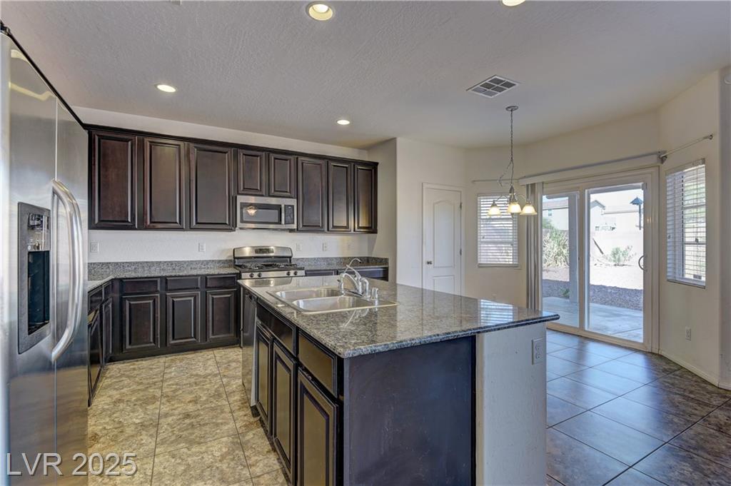 Welcome to this beautifully upgraded and generously sized home located in a desirable North Las Vegas neighborhood. This property offers the perfect blend of comfort, style, and functionality—ideal for entertaining or relaxing in your own private oasis. Step through the fully enclosed, beautifully designed front door entry and into a bright, open layout with modern touches throughout. The gourmet kitchen is a chef’s dream, featuring granite countertops, sleek stainless steel appliances, and upgraded maple cabinetry that provides ample storage and timeless elegance. Enjoy indoor comfort year-round with ceiling fans throughout and a washer and dryer conveniently included. Step outside to a large, covered patio—perfect for entertaining, the expansive poolside lot, offering plenty of room to lounge, or create your outdoor retreat. Don’t miss this opportunity to own a home that truly has it all—space, style, and a prime North Las Vegas location!