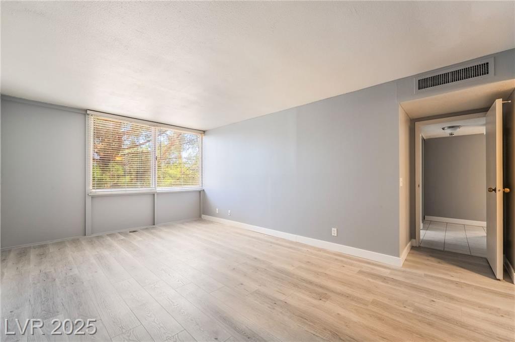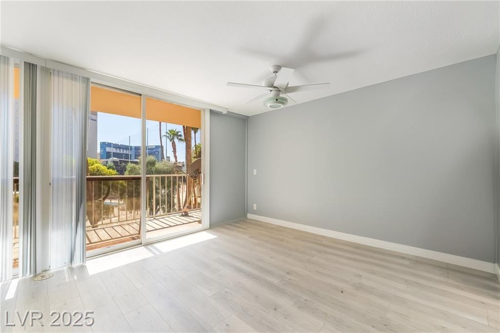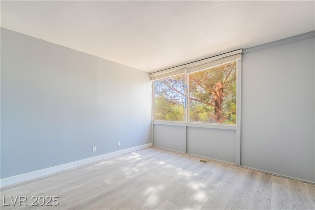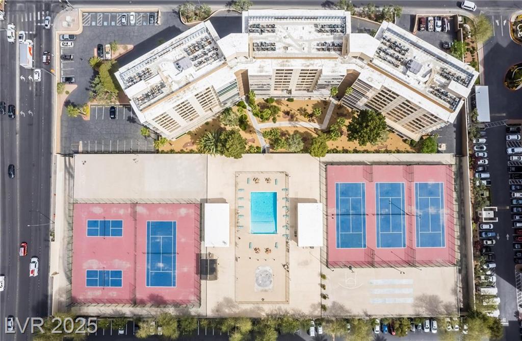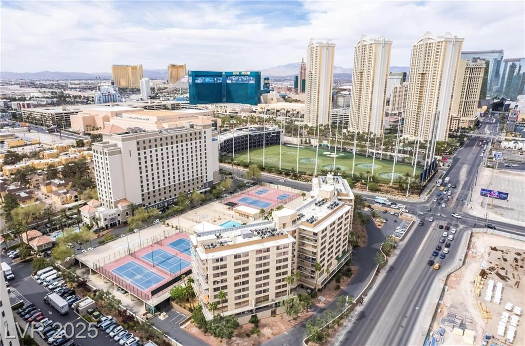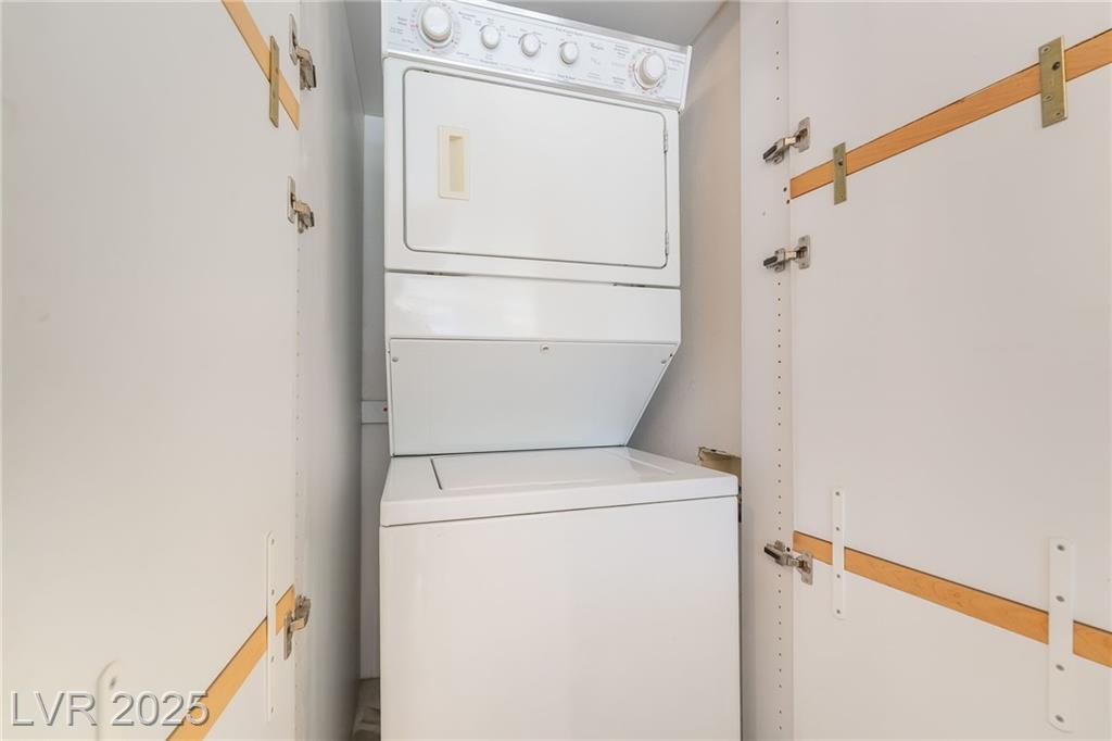 Location, location, location! Just a few steps from F1 Racing & 1 1/2 blocks from the Las Vegas strip, this prime location gives perfect access to your favorite strip casinos, shows, TopGolf, restaurants, catch a game or concert at the new Raiders Stadium and TMobile Arena - this is the ideal location for everything the Las Vegas Strip has to offer. Views of MGM from balcony and located across from Formula 1 Paddock! After a day and night enjoying the strip, walk home to this 1296 sq ft spacious condo featuring 2 oversized bedrooms 2 full baths and oversized balcony. New laminate flooring, new paint, and new a/c unit! All appliances stay including washer/dryer, in addition to the community laundry room on the same floor. Amenities include community pool, pickleball, basketball and tennis courts, bbq area, fitness center, 2 assigned parking spaces alongside each other in underground secured garage, 24/7 security and assigned storage unit on same floor!