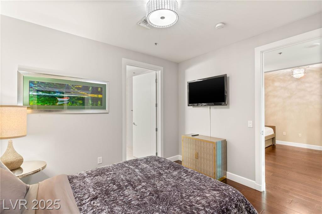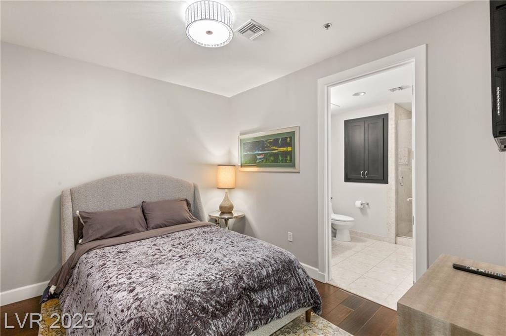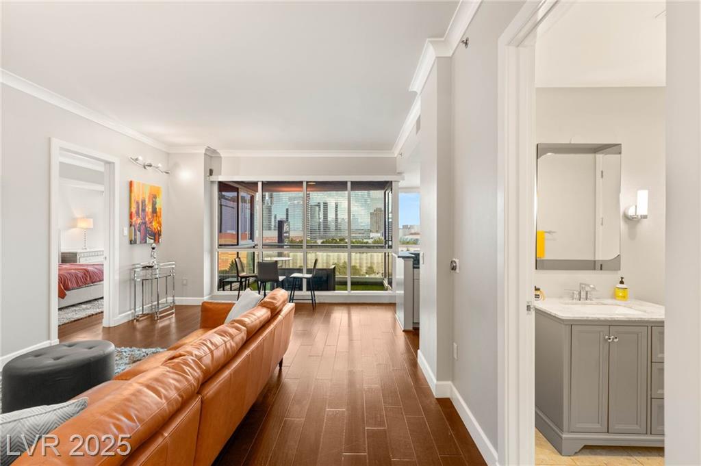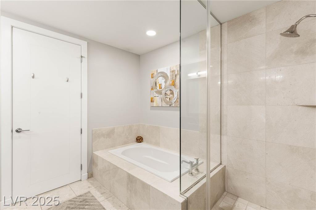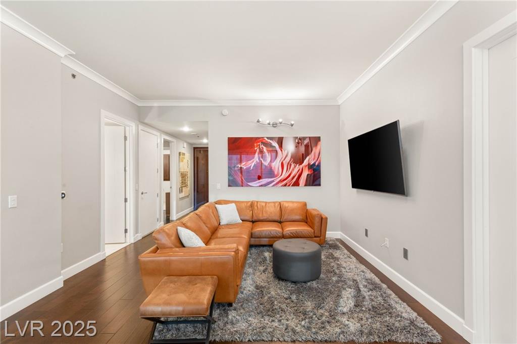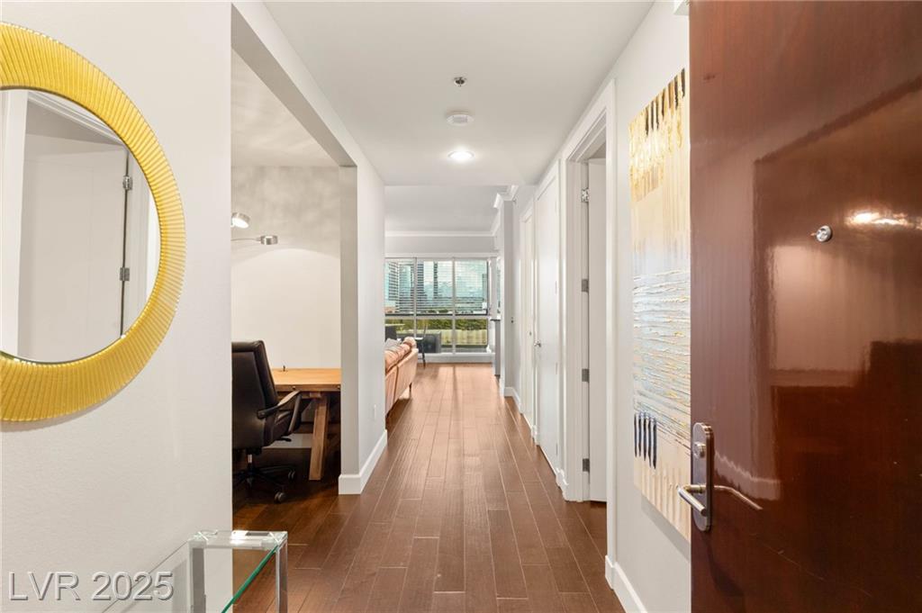 Experience luxury living in this stunning condo at Panorama Towers, offering breathtaking Strip views from your private terrace. This elegant residence features high-end finishes throughout, including plank tile flooring, crown molding, motorized shades, and a NEST thermostat. The island kitchen showcases custom cabinetry, a striking backsplash, and premium stainless steel appliances. Both bathrooms are beautifully appointed with marble finishes, ebony cabinetry, and spa-like details that exude sophistication. Panorama Towers provides resort-style amenities including 24-hour guard-gated security, a state-of-theart fitness center, pool, spa, and BBQ area. Ideally located just minutes from Allegiant Stadium,CityCenter, and the best dining and entertainment Las Vegas has to offer — this is urban luxury at its finest. Don’t miss your chance to live in one of the city’s most desirable high-rise communities!