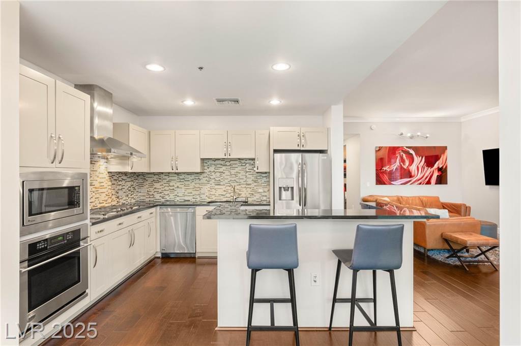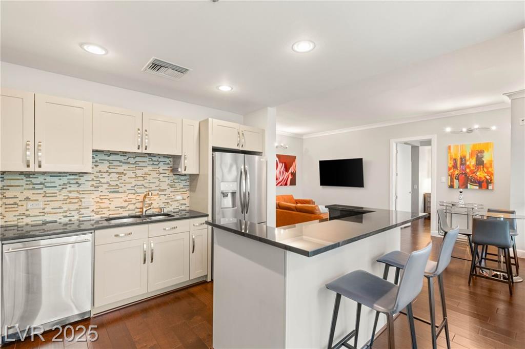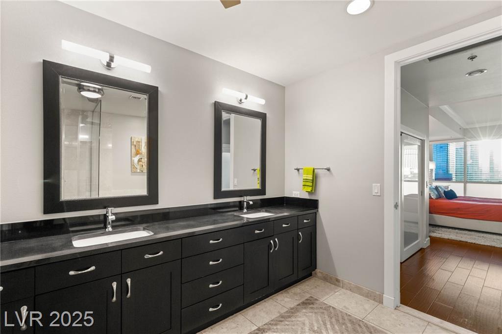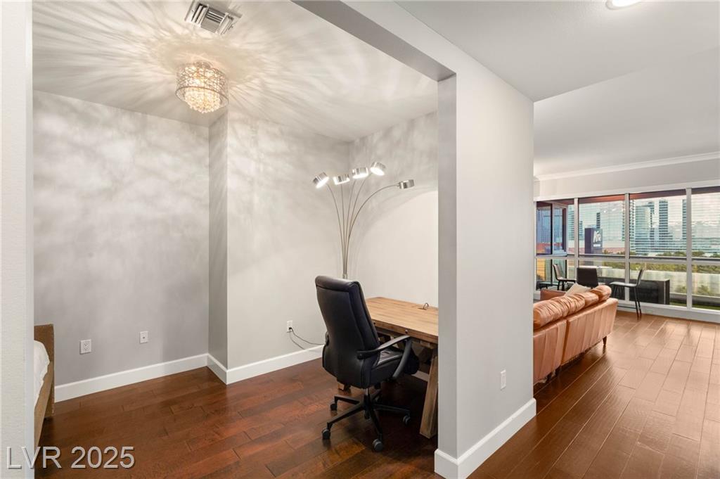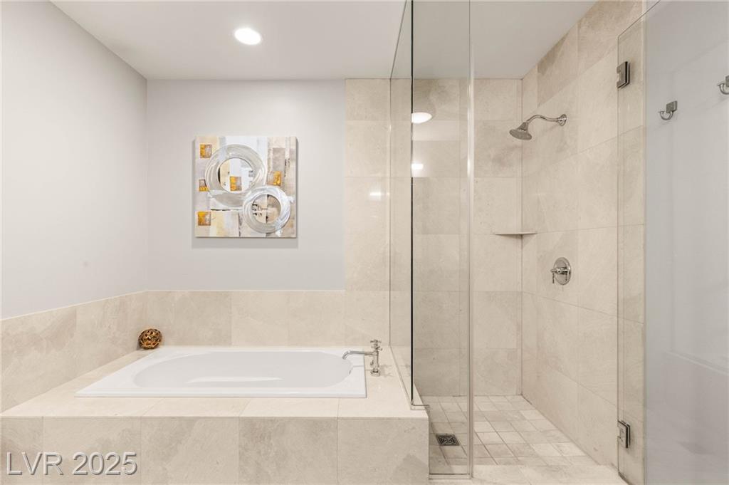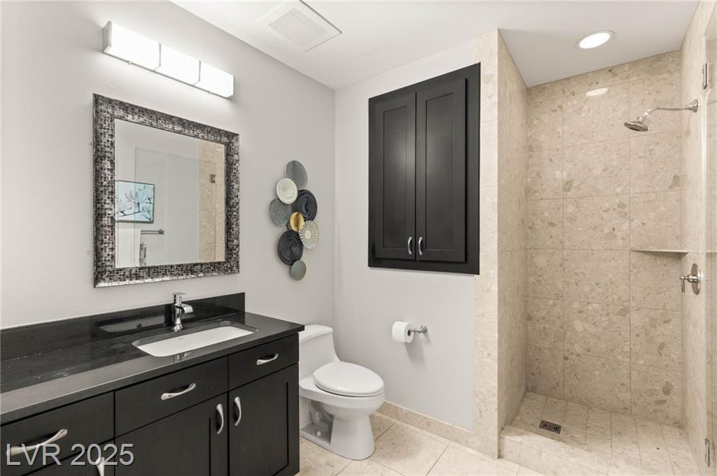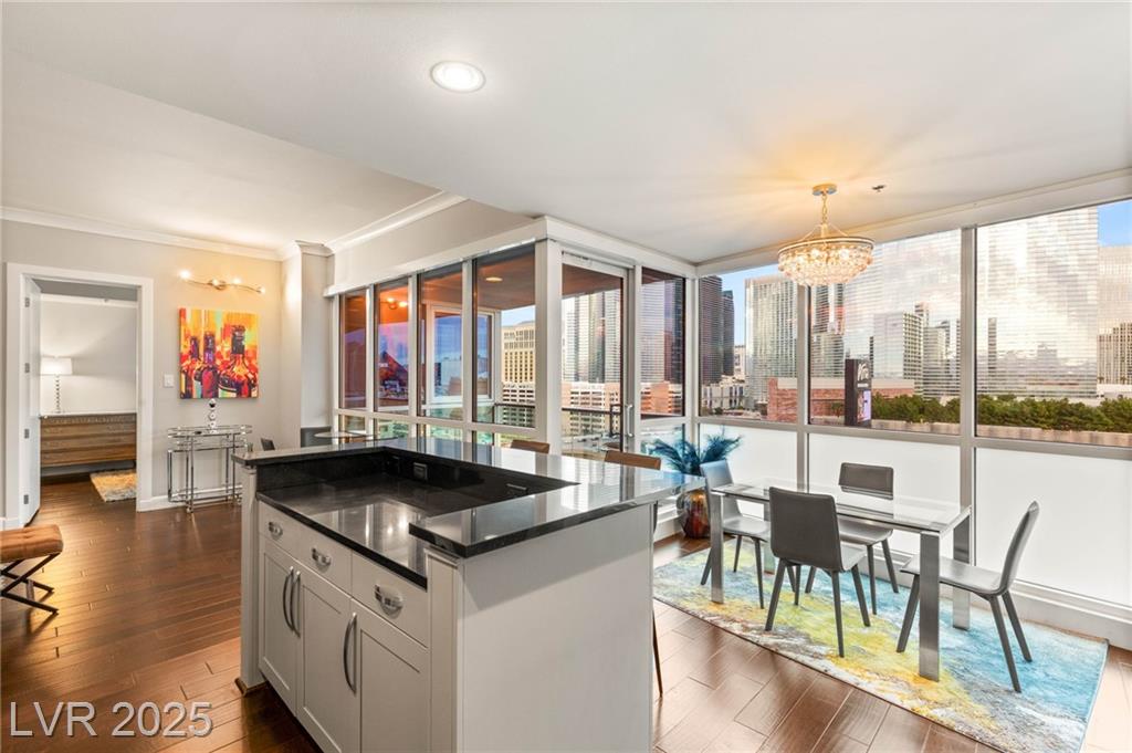 Experience luxury living in this stunning condo at Panorama Towers, offering breathtaking Strip views from your private terrace. This elegant residence features high-end finishes throughout, including plank tile flooring, crown molding, motorized shades, and a NEST thermostat. The island kitchen showcases custom cabinetry, a striking backsplash, and premium stainless steel appliances. Both bathrooms are beautifully appointed with marble finishes, ebony cabinetry, and spa-like details that exude sophistication. Panorama Towers provides resort-style amenities including 24-hour guard-gated security, a state-of-theart fitness center, pool, spa, and BBQ area. Ideally located just minutes from Allegiant Stadium,CityCenter, and the best dining and entertainment Las Vegas has to offer — this is urban luxury at its finest. Don’t miss your chance to live in one of the city’s most desirable high-rise communities!