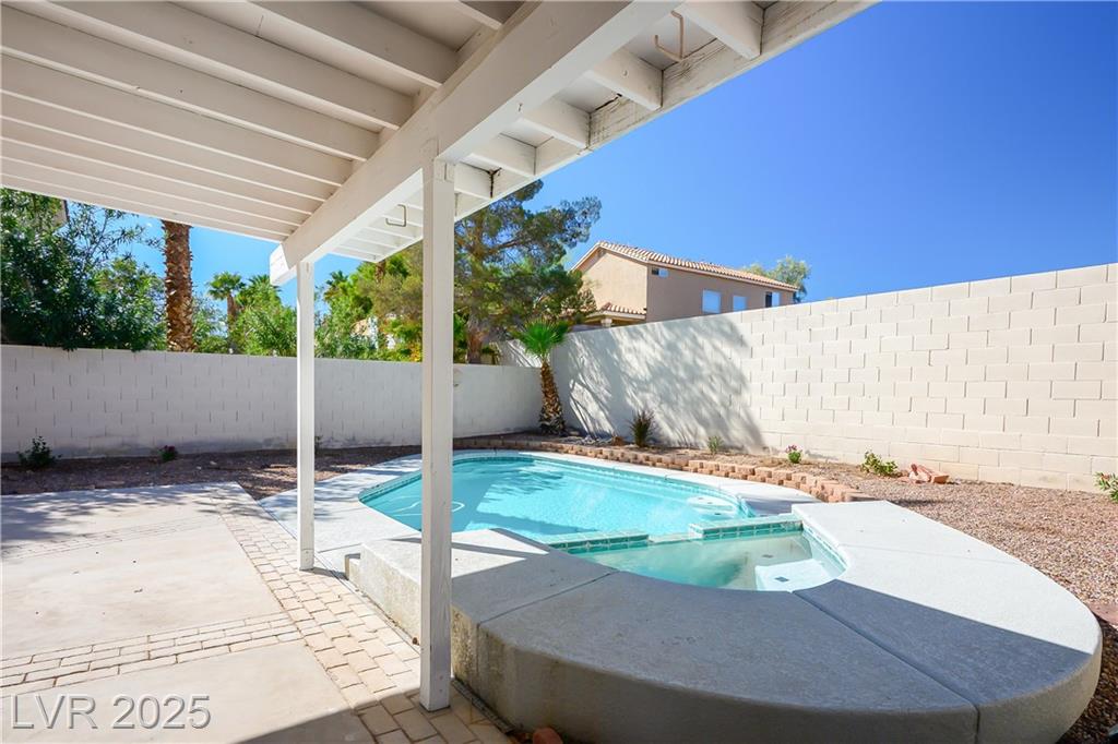 Fall in love with this inviting 2-story retreat offering 3 bedrooms, 2.5 baths, and nearly 2,000 sq ft of comfortable living. The bright dining area with vaulted ceilings sets the tone for gatherings, while the convenient downstairs laundry adds everyday ease. Step outside to your private backyard oasis with a sparkling pool and no rear neighbors—perfect for weekend relaxation or entertaining under the Vegas sun. Upstairs, the primary suite captures tranquil views of the park and surrounding mountains, creating a true escape at the end of the day. With no HOA and a prime location close to shopping, dining, and parks, this home blends comfort, privacy, and convenience beautifully. See it today before it’s gone!