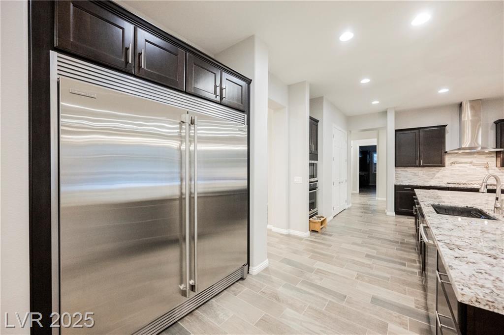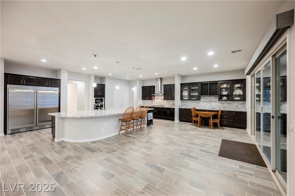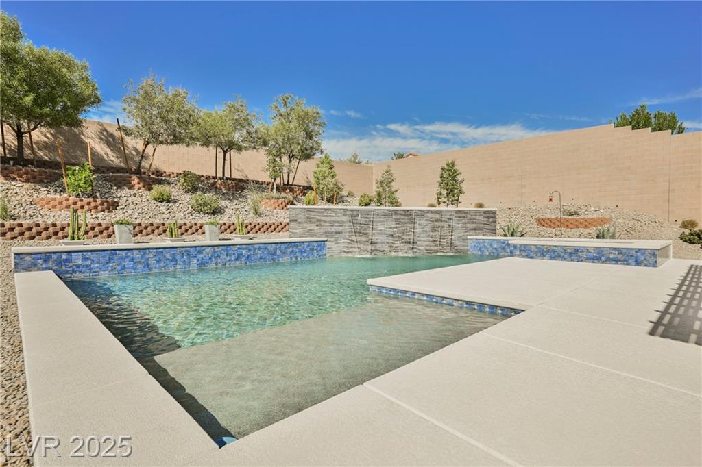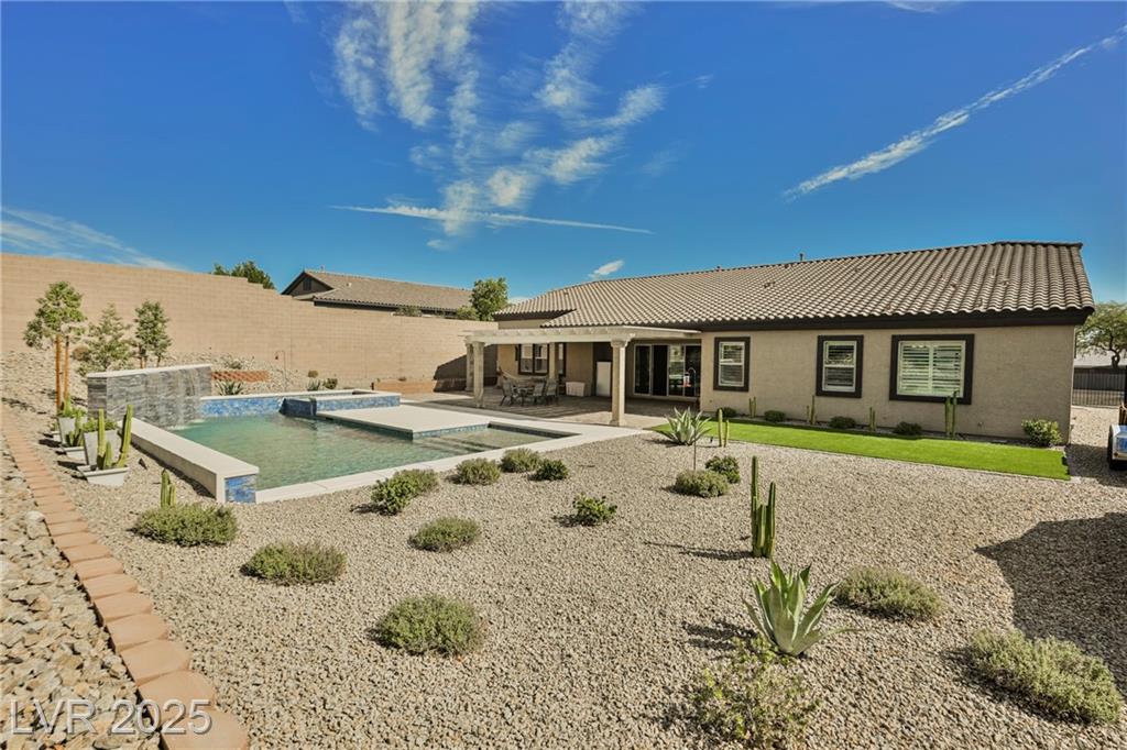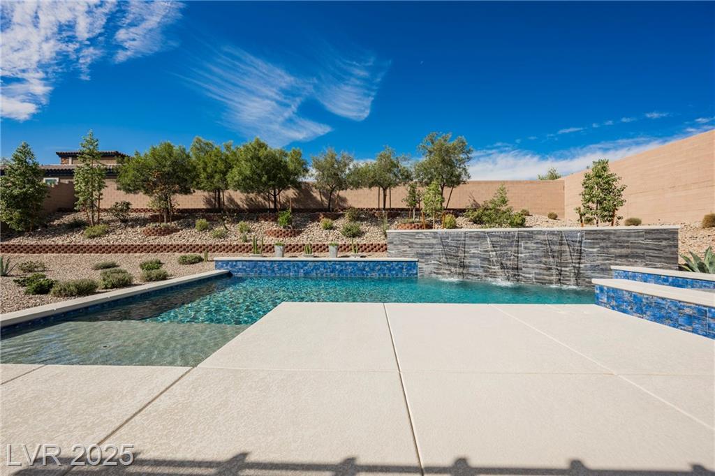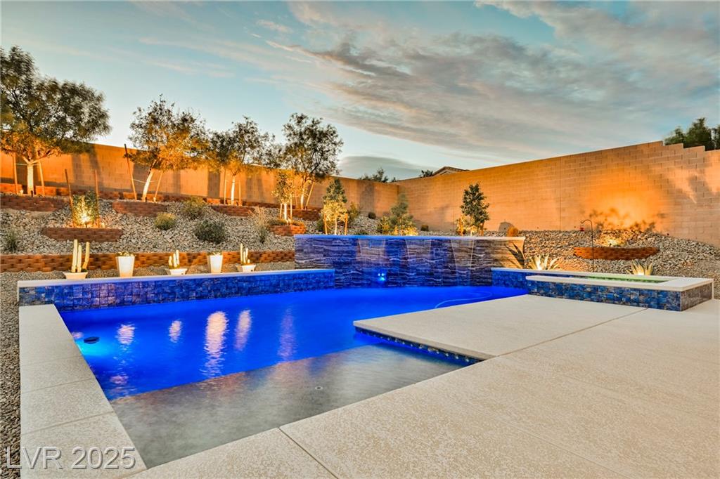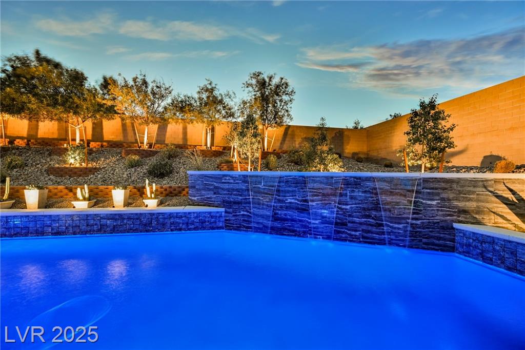 Luxurious single-story home on nearly ½ acre with no HOA, RV parking, and ultimate privacy! This 4-bed, 4-bath beauty offers refined living with crystal chandeliers, wood shutters, recessed lighting, soft-close cabinetry, and elegant granite and tile flooring throughout. The chef’s kitchen is a true centerpiece, showcasing a grand 16x6 island, premium stainless steel appliances, a 64” built-in fridge/freezer, and abundant storage. All bedrooms feature walk-in closets and luxurious bathrooms with glass-enclosed showers. The expansive primary suite offers direct access to a covered patio—perfect for relaxing mornings or peaceful evenings. Recent upgrades include a new water softener, reverse osmosis system, front security screen door, and sliding screen doors on all patio doors. Huge backyard is a private oasis with artificial turf, professionally designed desert landscaping, waist-high brick decorative wall, and a resort-style pool with 3 waterfalls, spa & a tall block wall for privacy.