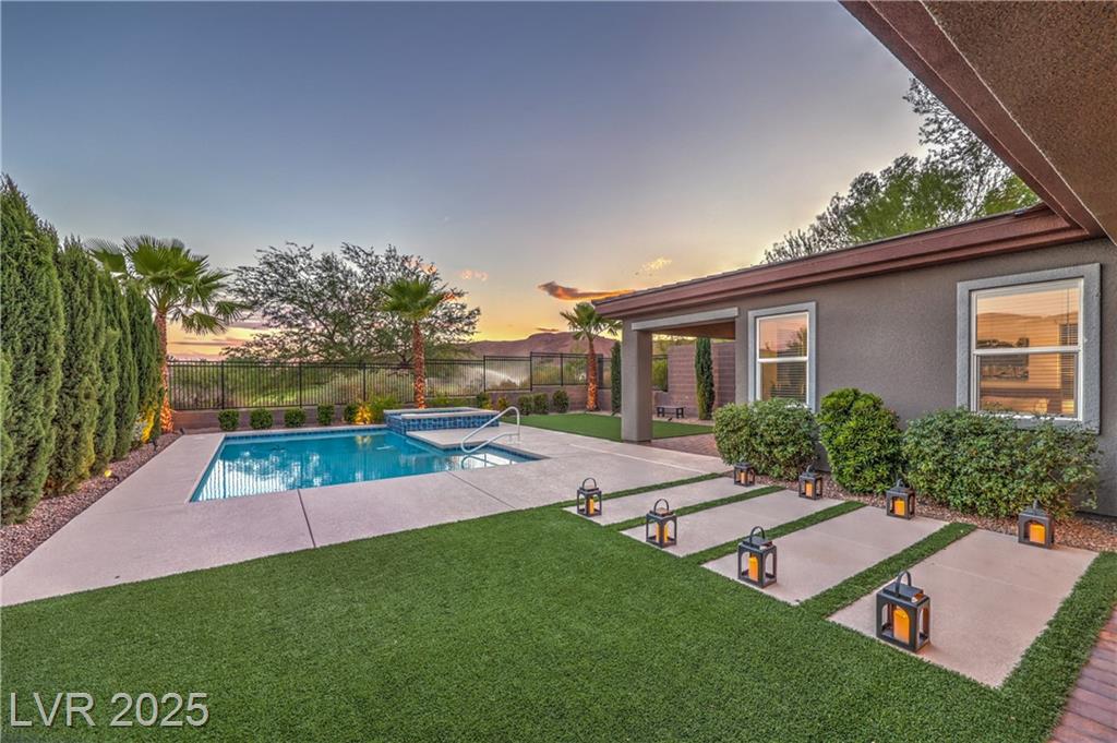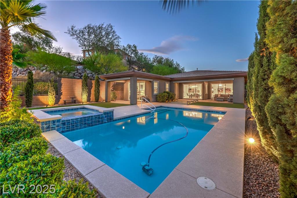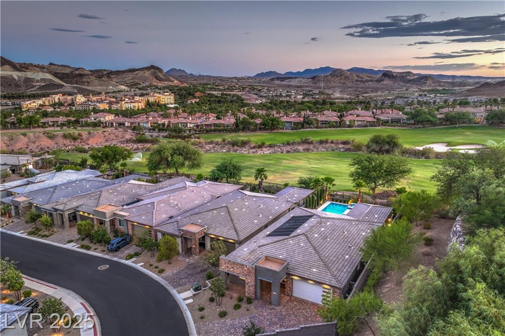 Experience refined resort-style living in this elegant single-level retreat nestled in Lake Las Vegas' prestigious North Shore community. Built in 2020, this immaculate 3-bedroom, 2-bathroom residence sits on a generous end lot on the exclusive Reflection Bay Golf Course enclave. Overlooking 2 greenways, lush vegetation and gorgeous mountaints, the views will sell themselves. Modern, light interior and a well placed kitchen mix both comfort and entertainment with an ease of life concept. Enjoy the perfect blend of luxury and leisure with a refreshing pool, attached 2-car garage, and sophisticated living spaces designed for both everyday comfort and stylish entertaining. The home's exceptional location offers easy access to championship golf, lakeside recreation, and upscale dining. Don't miss this rare opportunity to own in one of Lake Las Vegas' most coveted communities where resort amenities meet everyday living.