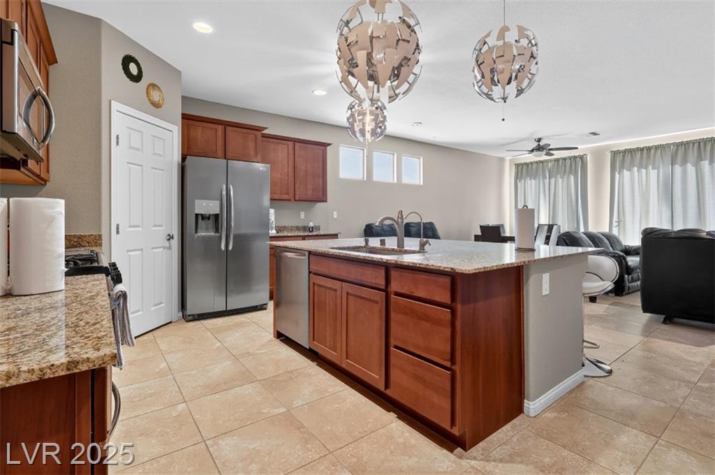 4 BED | 3 BATH | RV PARKING | HUGE YARD | SINGLE STORY! Located in The Falls, Laughlin’s only master-planned community, this 4 bed, 3 full bath home sits on a spacious lot with RV parking and a massive backyard. This popular single-story floor plan offers over 2,000 sqft with a split layout that lives like a dual master ideal for guests or multigenerational living. Features include two walk in showers, an oversized great room, 18” tile, stainless appliances, Brazilian granite on a massive island, and soft-close hickory cabinets. Positioned on one of the highest lots in Laughlin, enjoy stunning mountain views all year long. Only minutes from the Colorado River, casinos, and concerts this is Laughlin living at its best.