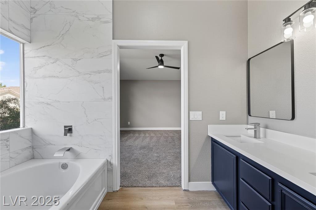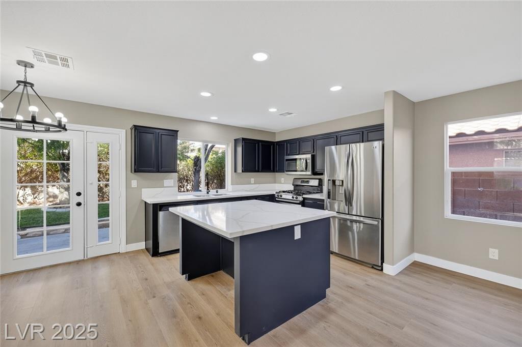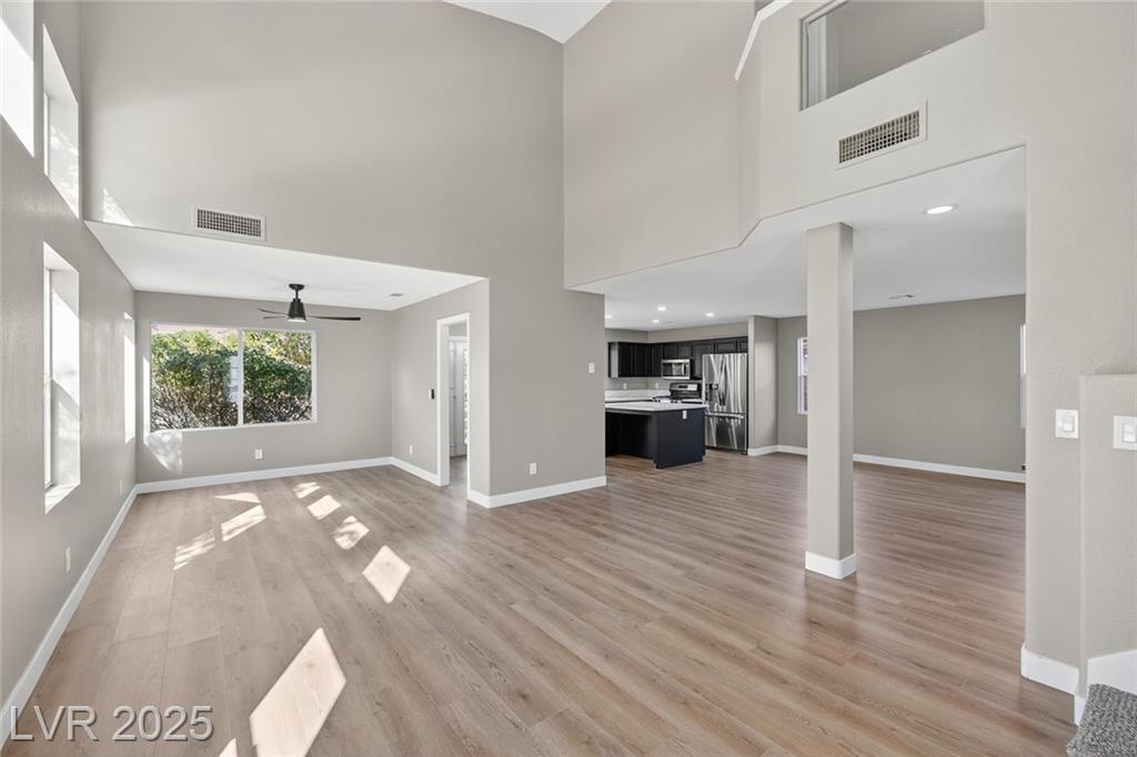 Located in the Summerlin area, this 2 story, 4 bedroom, 2,147 sqft home sits on a corner lot with NO HOA. Soaring ceiling in the living room, tons of windows for plenty of natural light. Huge Quartz island and stainless appliances in the kitchen. Double sinks in both primary and secondary bath. Ensuite has bath and gorgeous shower with glass doors. Primary bedroom comes with a large retreat for Office/Den or add a wall for a 5th bedroom. Peaceful park-like yard with luscious landscaping and real grass. Very spacious with half bath and separate laundry room downstairs. Variety of shopping and restaurants close by. Schedule a showing today!