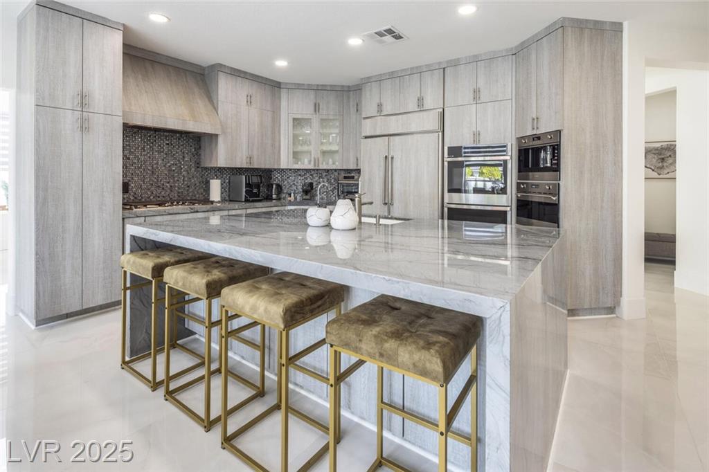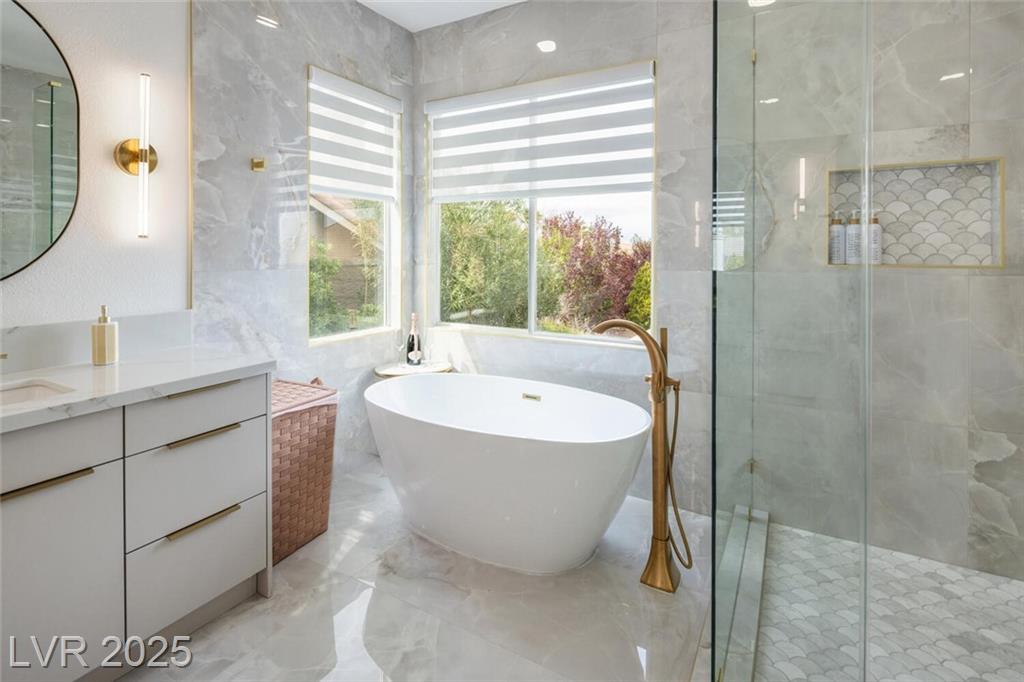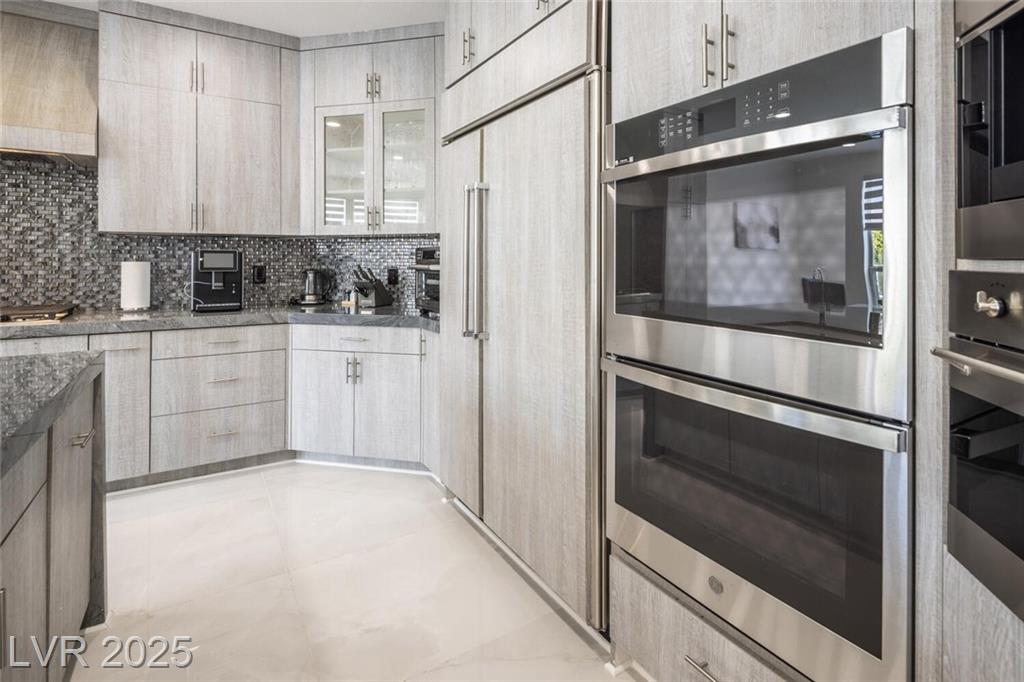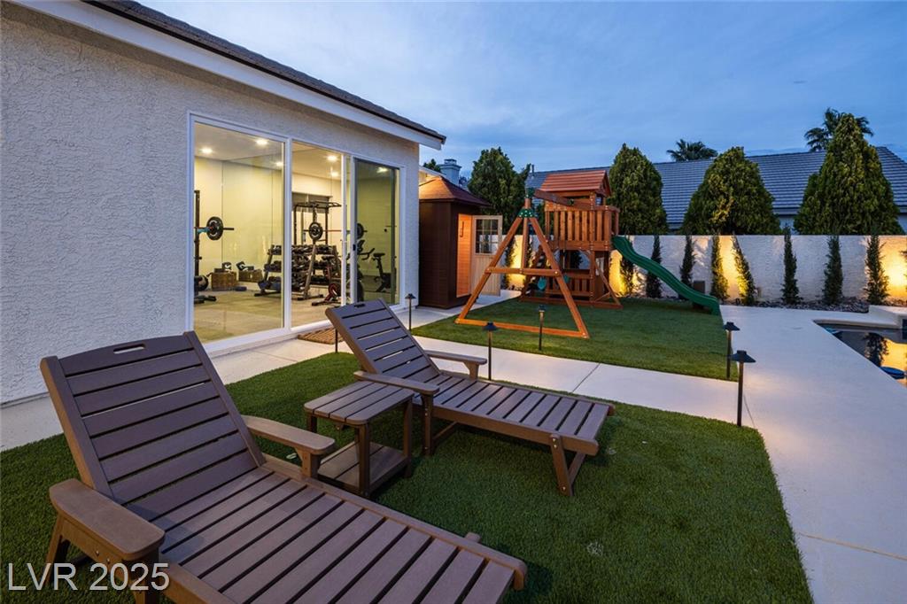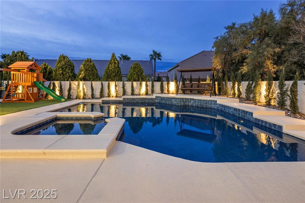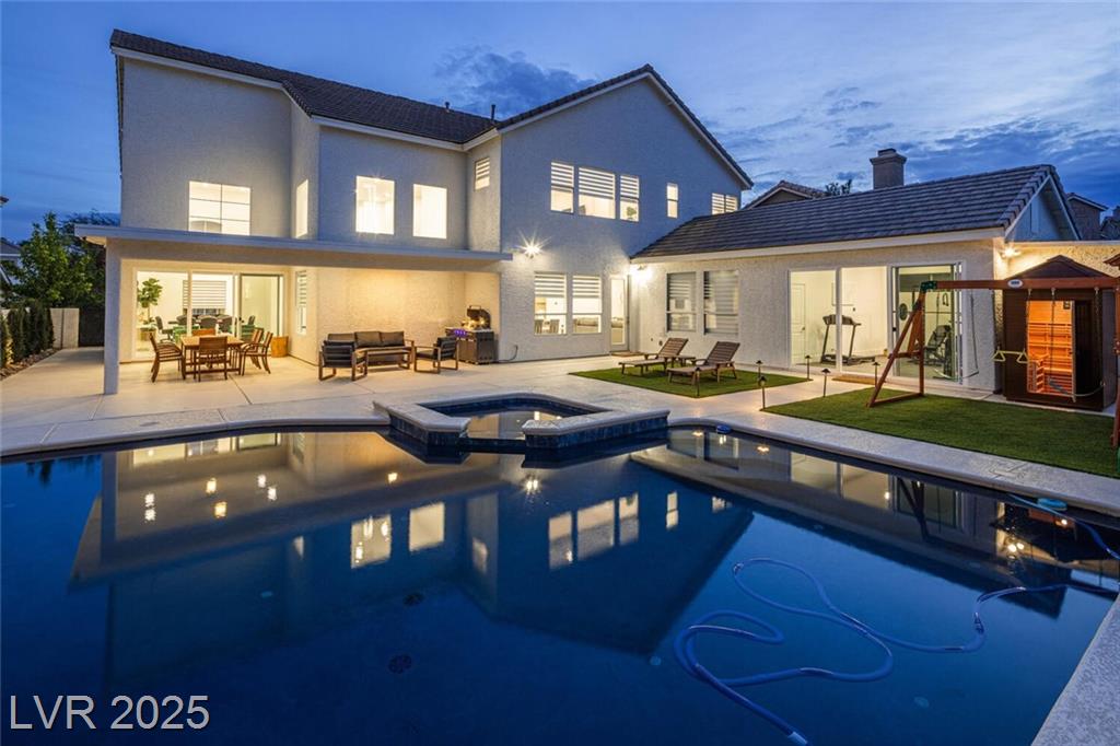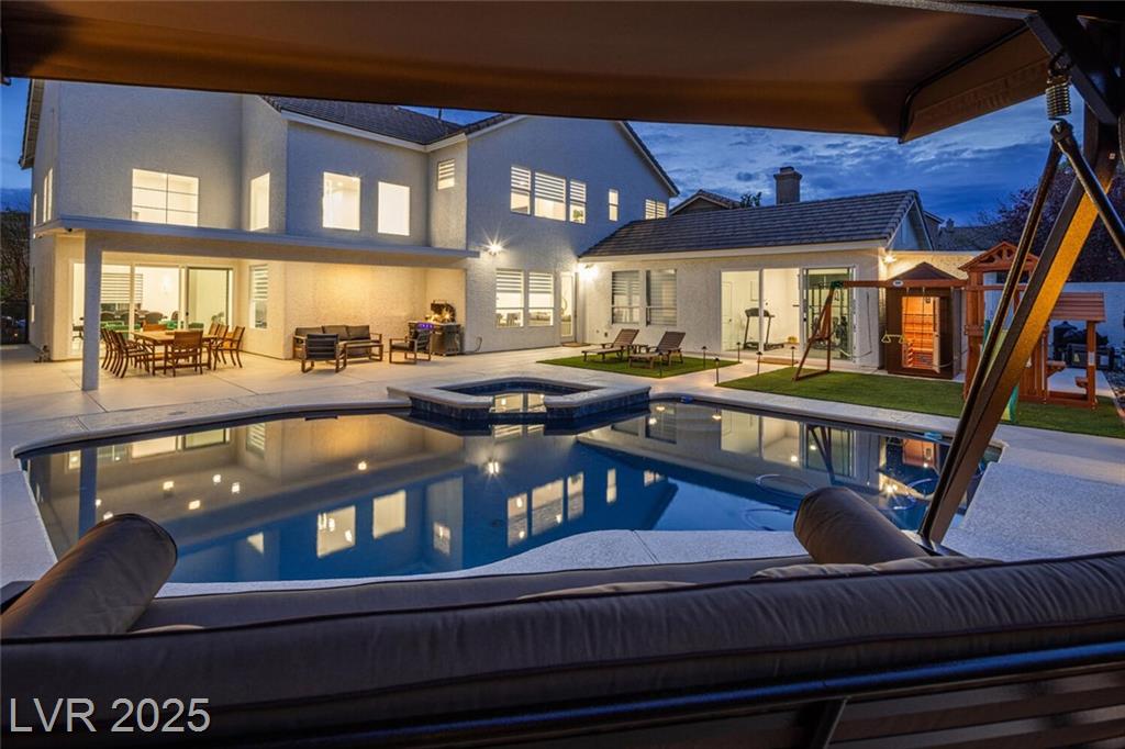 Castle Gate, where luxury & comfort converge. This fully remodeled estate features over $400K in upgrades, blending modern elegance with timeless charm.The grand entry 26-foot ceilings, glass railings, & an open layout designed for entertaining & everyday living. A game lounge with pool & poker table creating the perfect space for gatherings. Downstairs includes a private home theater, gym, brand-new dry sauna, & 2expansive slider doors that open to a beautifully landscaped backyard oasis, ideal for entertaining or relaxing. Upstairs offers renovated bedrooms & spa-inspired bathrooms custom showers, modern flooring, fresh paint, & stylish lighting. upgrades include new garage doors, landscaping, an upstairs AC unit, & brand-new exterior security cameras. Ideally located minutes from Downtown Summerlin, Red Rock Hotel, Boca Park, shopping, dining, parks, & trails, this home offers unparalleled amenities. Furniture & gym equipment are negotiable, making this a move-in-ready opportunity.