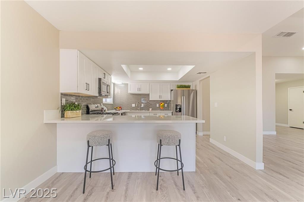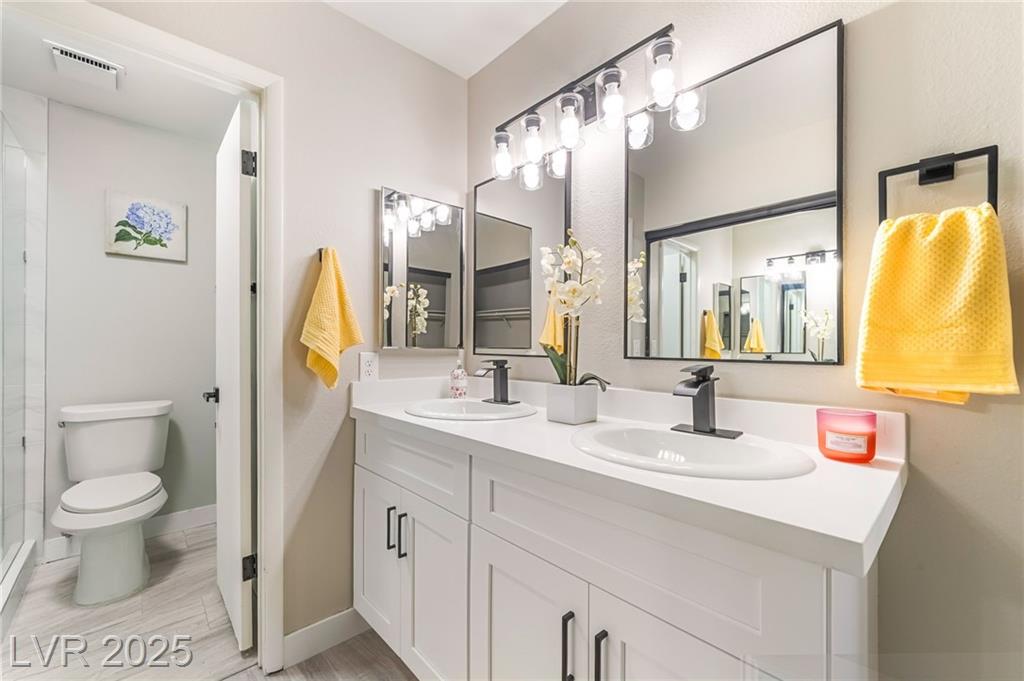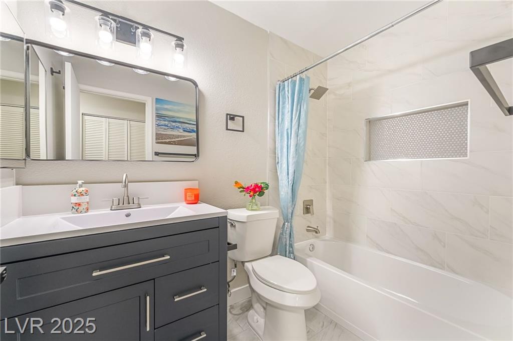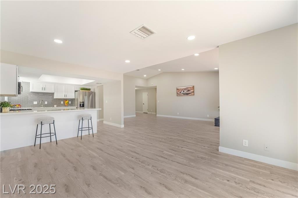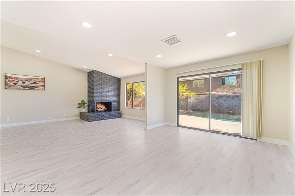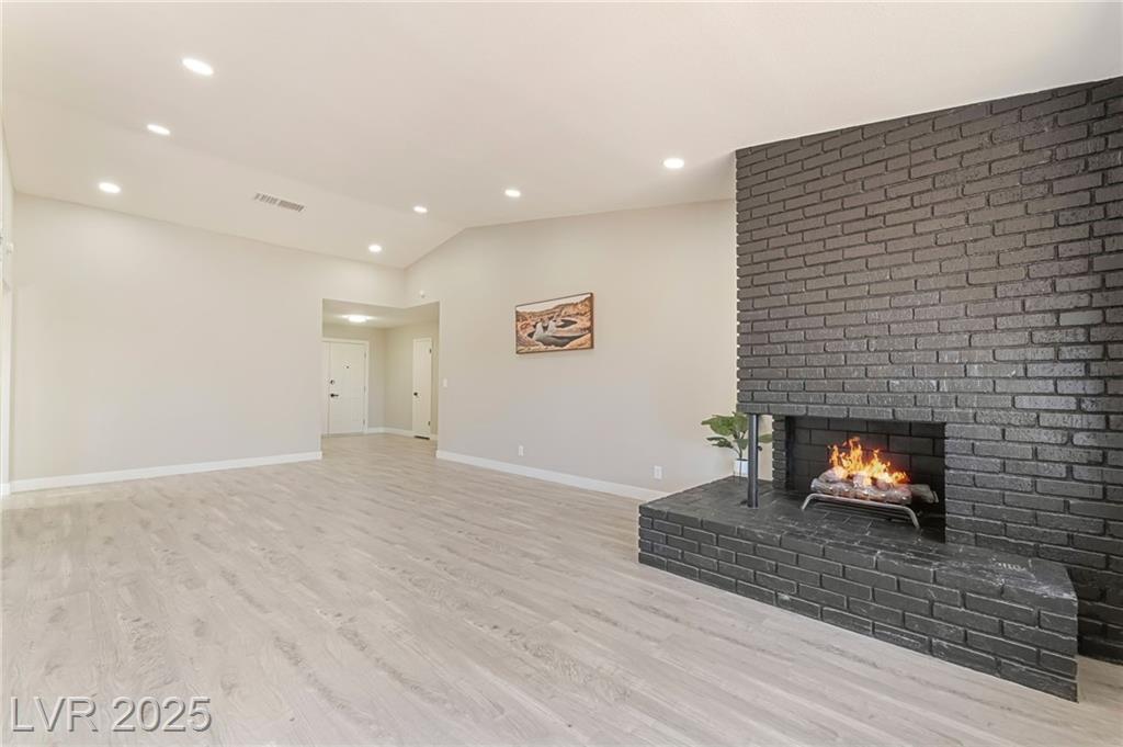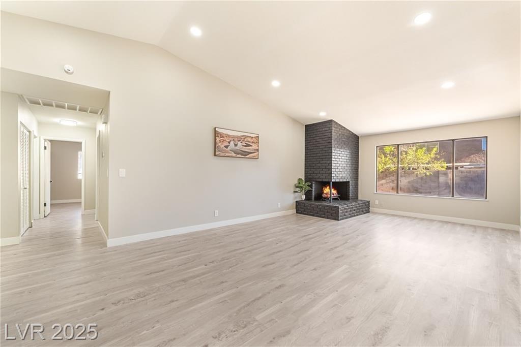 FHA & VA Approved! No HOA. Welcome to this single-story home located in the heart of Green Valley! Home features: 3 Bedrooms, 2 Bathrooms, 2 Car Garage. Brand new cement driveway and block divider wall. Family room features: Spacious open concept, with original brick gas fireplace centerpiece. Kitchen features: Quartz countertops with brand new kitchen cabinets. All stainless steel appliances included. Lvp wood flooring throughout home. Primary bedroom features: Spacious room with multiple closets, door entry into on-suite bathroom with large standing tile shower enclosure, separate dual sink vanity. Secondary Bedroom separate from primary bedroom with spacious large room. Hall Bathroom features shower-tub combo with brand new vanity. Backyard features: Cement patio adjacent to the large spacious yard with desert landscaping. Located near shopping, freeway, & schools. This home is a must see located in Henderson! Zoned for Green Valley High School.