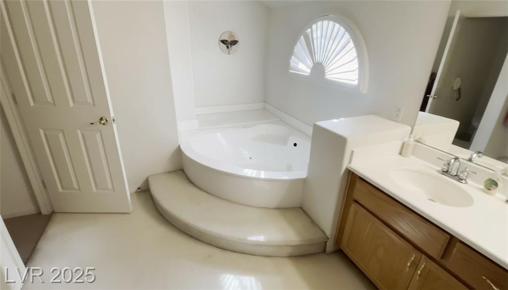 Welcome to an elegant two-story residence in the desirable Silverado Ranch community. As you enter this well situated home on a spacious corner lot, you are greeted by classic sophistication & modern functionality. The foyer welcomes you with high ceilings, tile flooring, & a striking half-spiral staircase. The formal living & dining space is the perfect setting for traditional entertainment. The open flow kitchen has the perfect connection to the family room, & the dual sliding doors allows for a seamless indoor/outdoor vibe. Your work from home space is taken care of with the gracious downstairs office. The backyard is a gardeners & grill masters dream! Upstairs you have a great flex space that was once a reading room. The primary suite, separate from the other rooms, boasts a large jetted tub & separate shower, generous bedroom size, private balcony & large closet. A three car garage, rv space in the driveway, & updated major household appliances cap off this property. Welcome Home!