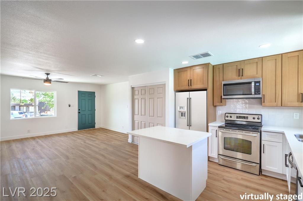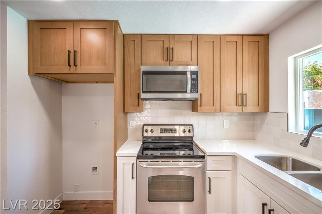 Treat yourself to this fully modernized pool home in the heart of Downtown Las Vegas. Awaiting inside you’ll find premium plank flooring accentuated by a neutral paint palette, updated millwork, and plush carpet. Enjoy an on-trend kitchen featuring two tone soft close cabinets, quartz countertops, beautiful tile backsplash, and a stainless-steel appliance package. Retreat to a primary suite offering a spa like ensuite line with bespoke floor to ceiling shower tile. Entertain in style with an in-ground swimming pool and artificial turf. With easy access to all of the wonderful down amenities ranging from fine dining, entertainment and shopping, this home is sure to move fast. New windows, RV access, and fully fenced! Schedule your one on one tour today!