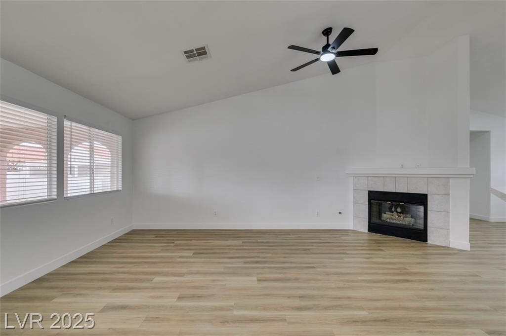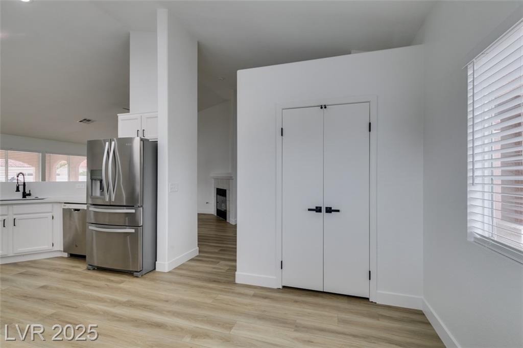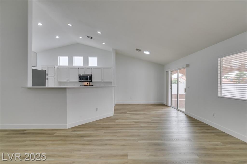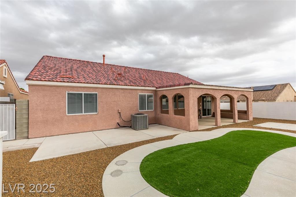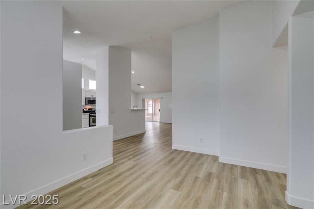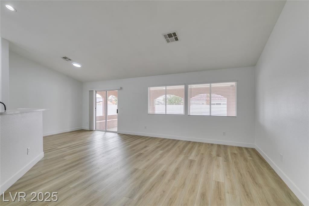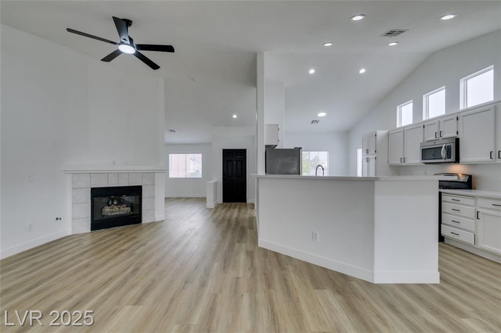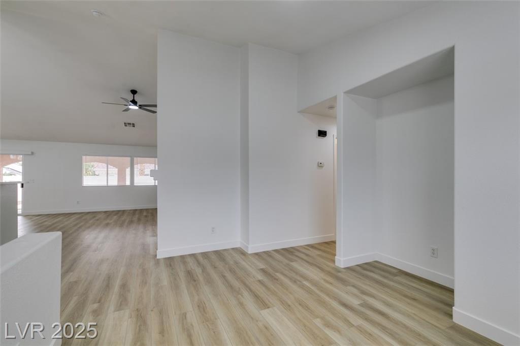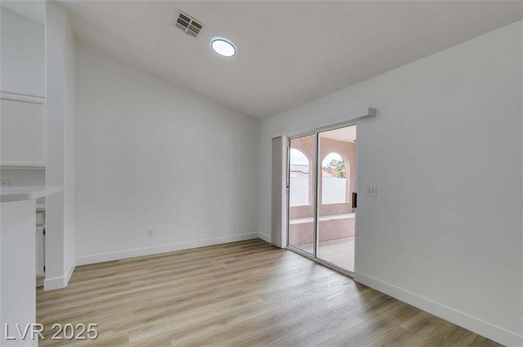 Beautifully updated three-bedroom single-story home near Aliante! This move-in-ready property features fresh paint, luxury vinyl plank flooring throughout, quartz countertops, upgraded cabinets, and stainless steel appliances. Enjoy the cozy fireplace off the family room, ceiling fans in every bedroom, and 2.5” white blinds throughout. The washer and dryer are included, and the low-maintenance desert landscaping with a covered patio makes outdoor living effortless. Conveniently located near shopping, dining, and parks — this home is ready for immediate occupancy!