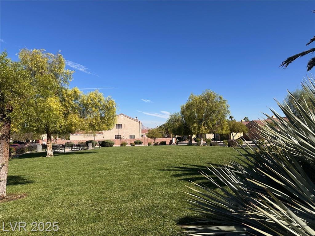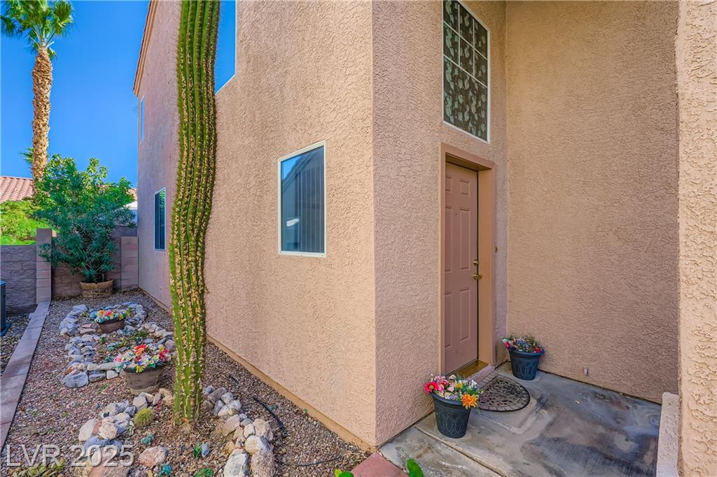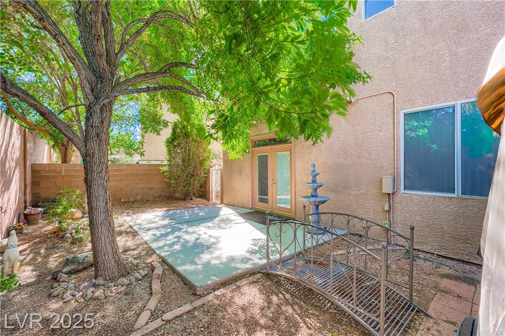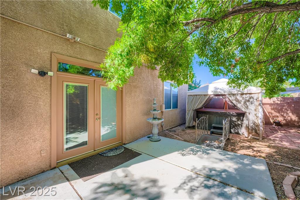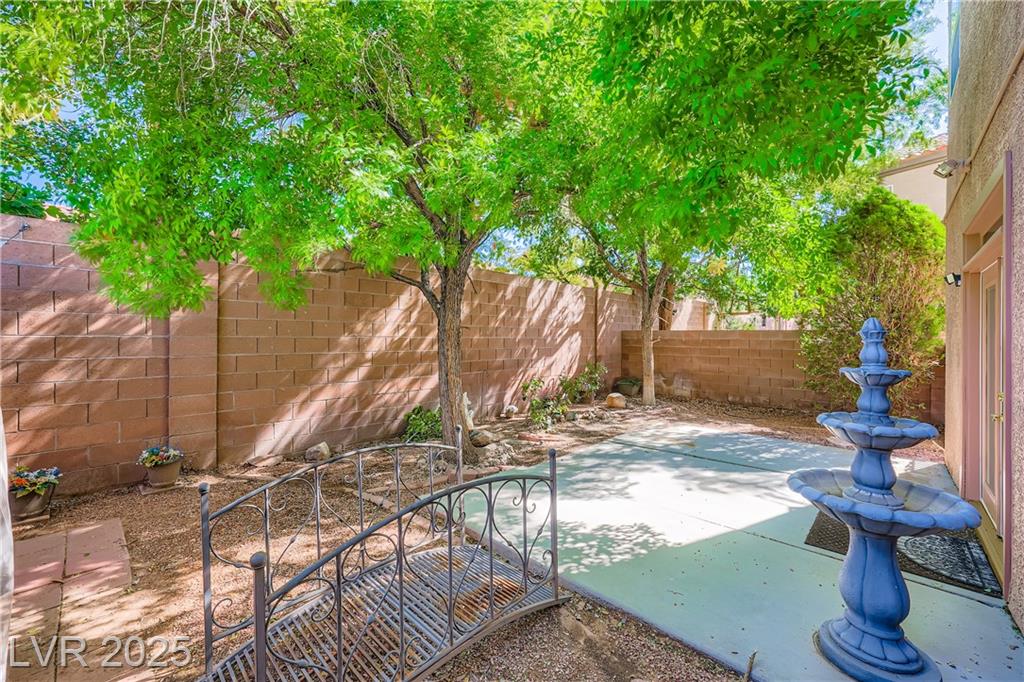 Welcome to this Gated Henderson community with a park and picnic area, minutes to The District at Green Valley Ranch, and easy access to the airport and Lake Mead Recreation Area. This inviting two-story home offers 3 oversized bedrooms, 2.5 baths, and a 3-car garage with extra storage. The kitchen features granite counters, stainless steel appliances, and generous cabinet space with an added breakfast bar. A gas fireplace anchors the main living area, complete with surround sound and French doors with transom blinds that lead out to a private backyard with a shaded patio, a hot tub, and a gazebo, offering a relaxing outdoor retreat. Back inside, the vaulted ceilings and large windows bring in lots af natural light. Upstairs, the primary suite also has vaulted ceilings. Recent updates include a high-efficiency HVAC system (2024). Conveniently located near shopping, dining, and outdoor recreation, this home combines comfort and location in a desirable gated setting.