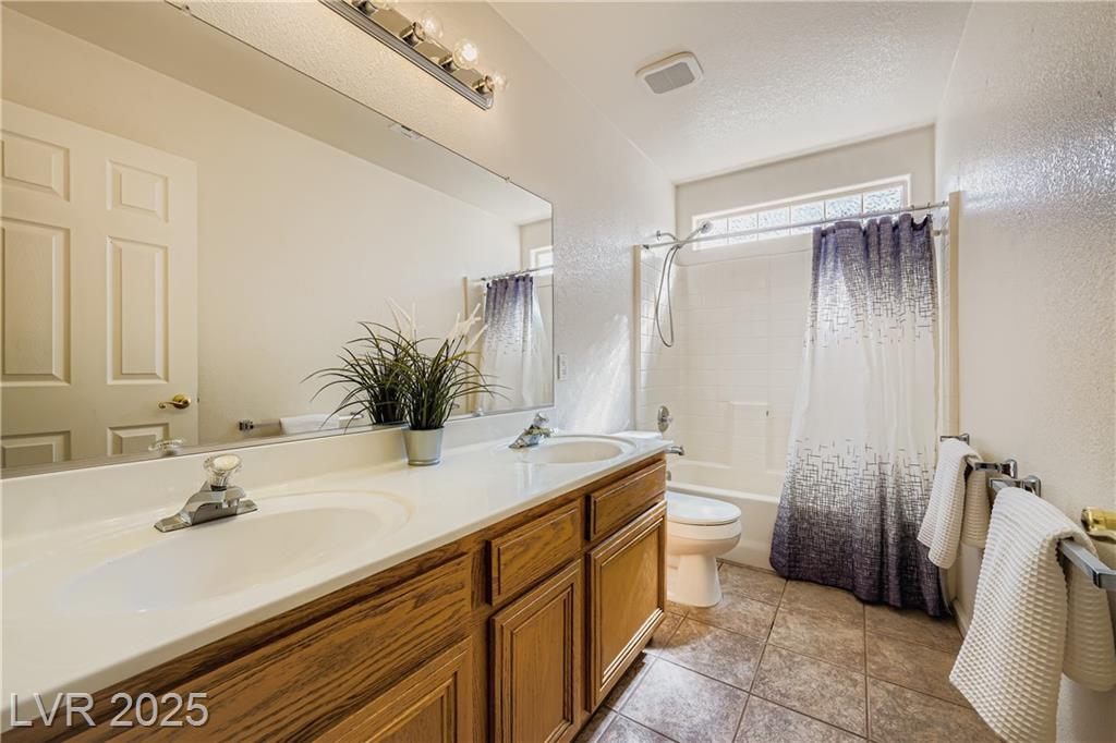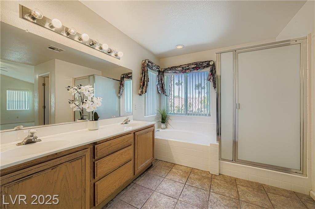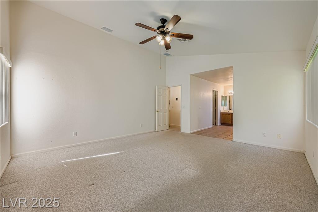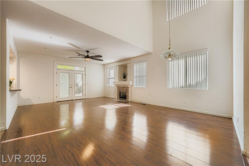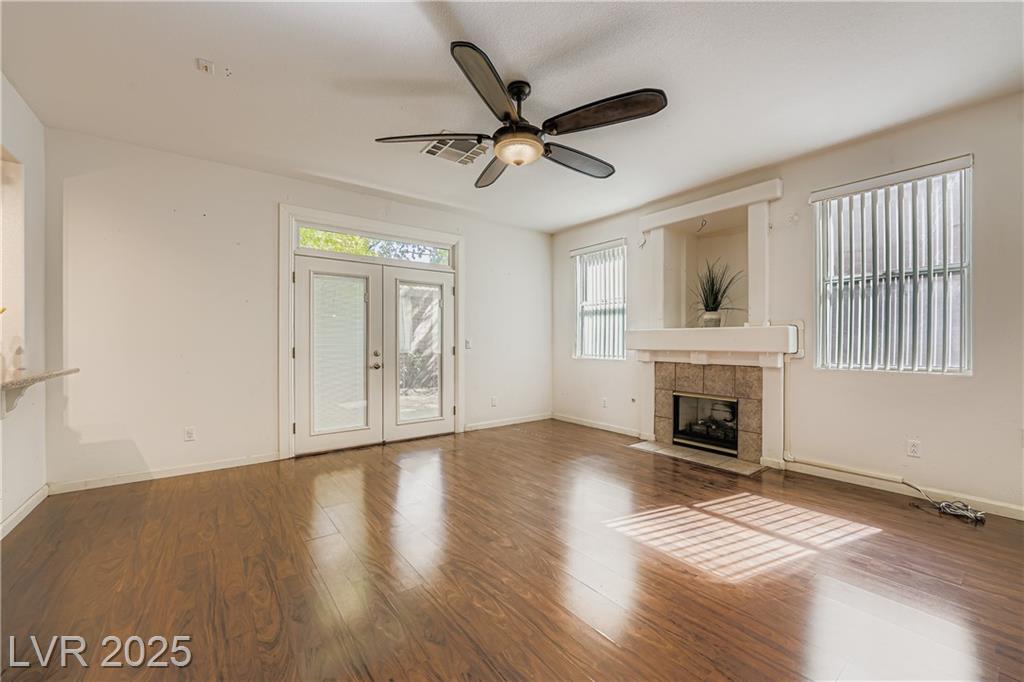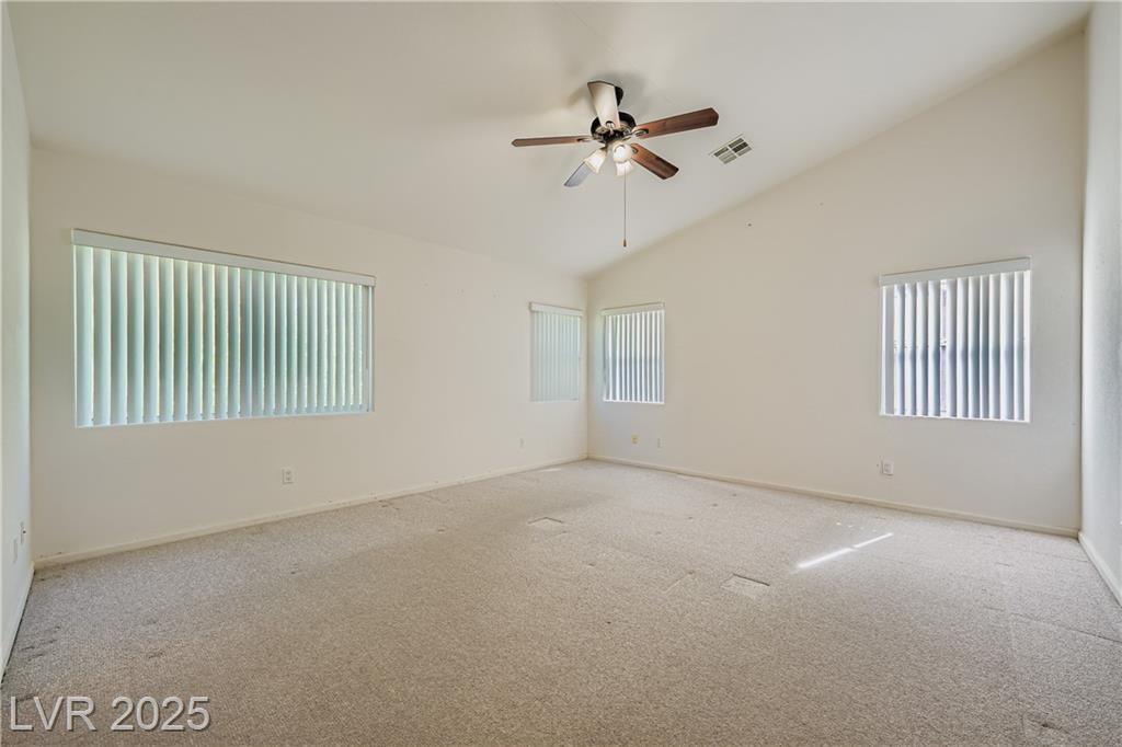 Welcome to this Gated Henderson community with a park and picnic area, minutes to The District at Green Valley Ranch, and easy access to the airport and Lake Mead Recreation Area. This inviting two-story home offers 3 oversized bedrooms, 2.5 baths, and a 3-car garage with extra storage. The kitchen features granite counters, stainless steel appliances, and generous cabinet space with an added breakfast bar. A gas fireplace anchors the main living area, complete with surround sound and French doors with transom blinds that lead out to a private backyard with a shaded patio, a hot tub, and a gazebo, offering a relaxing outdoor retreat. Back inside, the vaulted ceilings and large windows bring in lots af natural light. Upstairs, the primary suite also has vaulted ceilings. Recent updates include a high-efficiency HVAC system (2024). Conveniently located near shopping, dining, and outdoor recreation, this home combines comfort and location in a desirable gated setting.