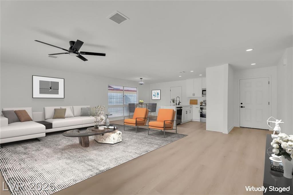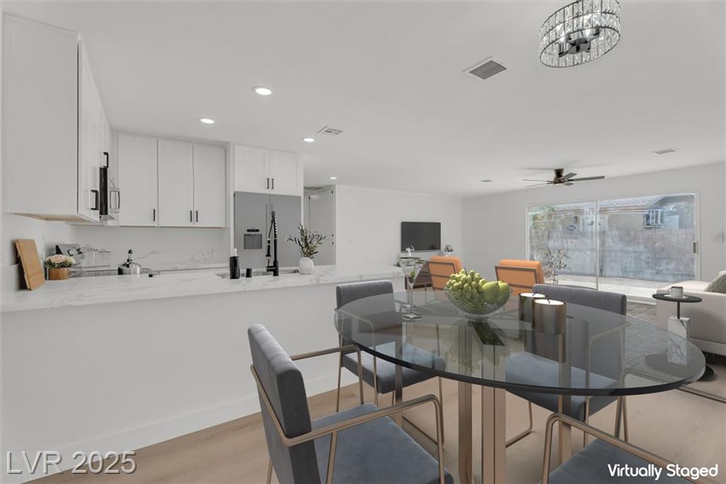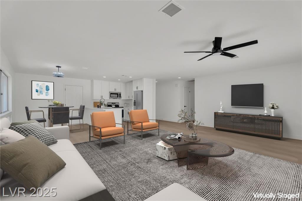 Beautiful, renovated home featuring 4 bedrooms and 2 bathrooms in a CORNER LOT and NO HOA! This home is move-in ready and has an open floor plan, fresh neutral tones, and tons of natural light. The kitchen shines with stainless steel appliances, quartz counters, white shaker cabinets, and matte black finishes. Enjoy spacious bedrooms, a large great room, and a private backyard with patio. Modern upgrades, updated flooring, designer lighting, and unbeatable convenience. This home has it all! Tour today!
