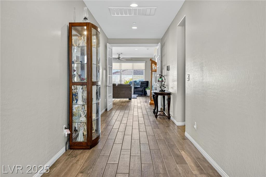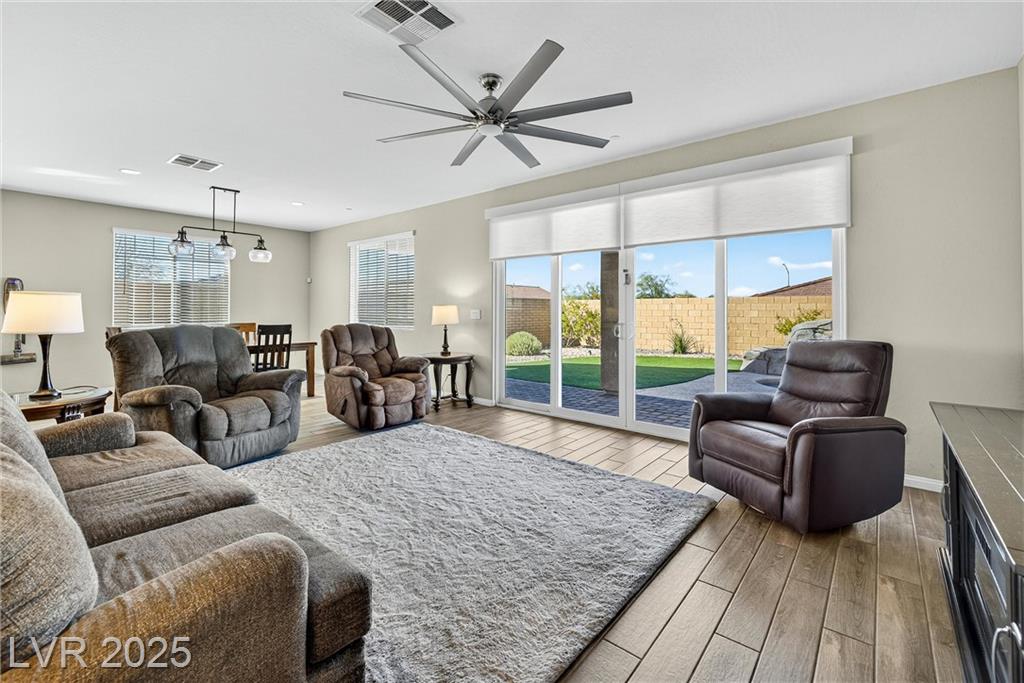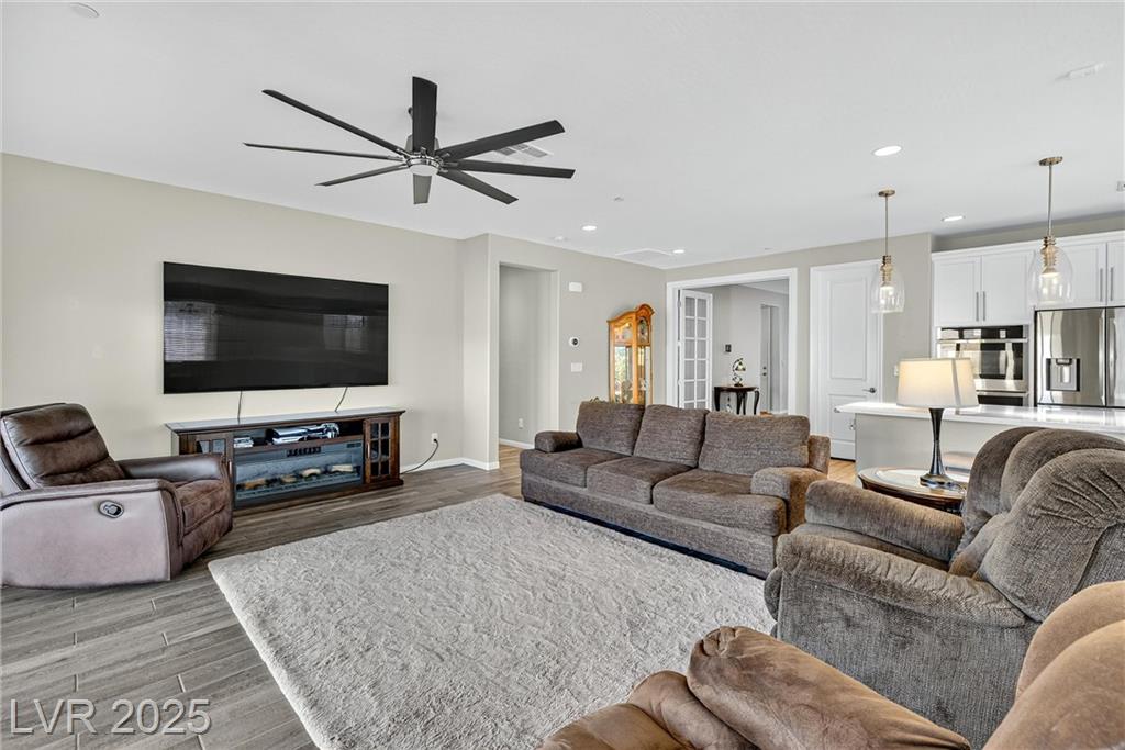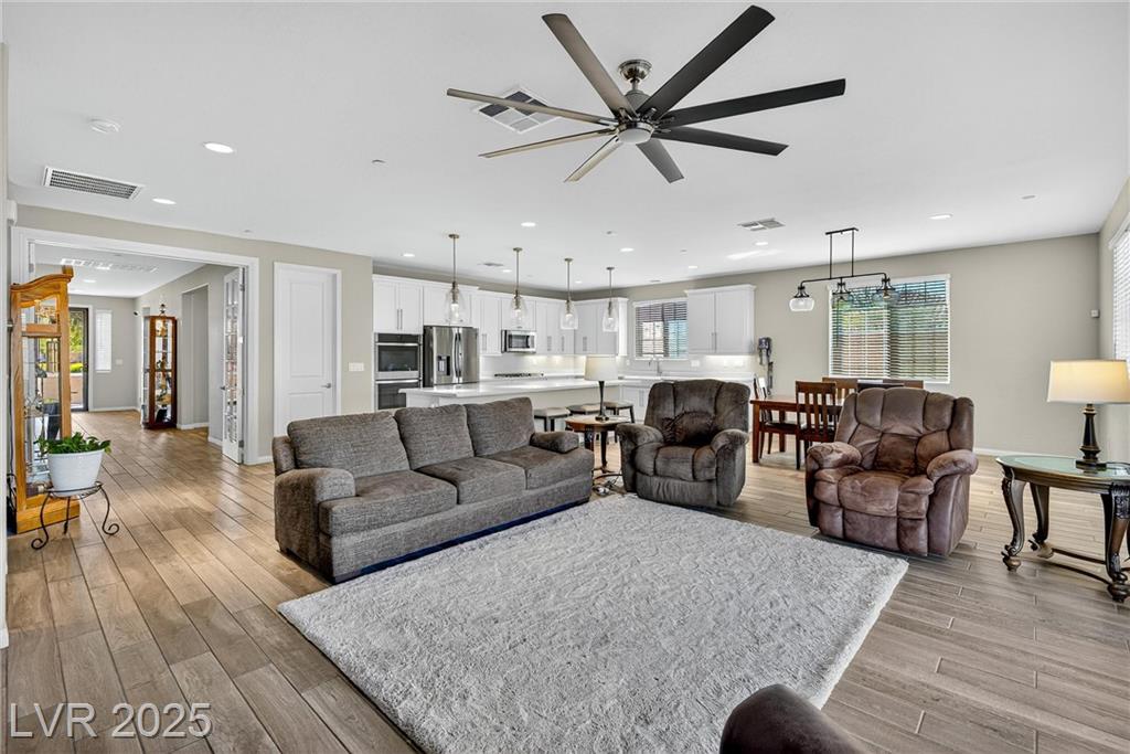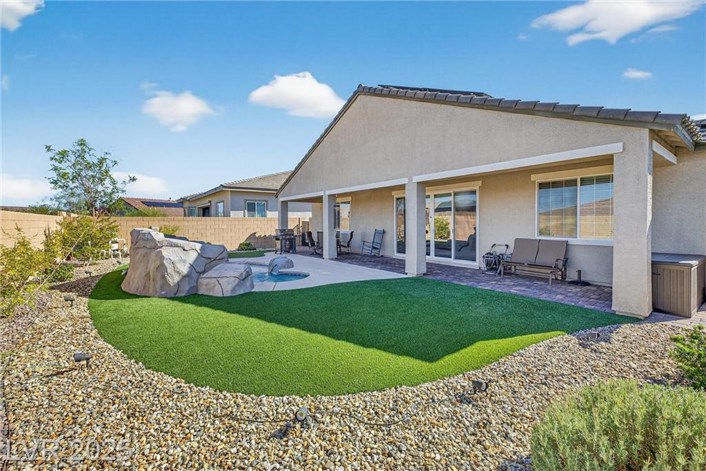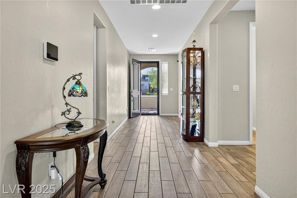 Welcome to this stunning home in the highly sought-after Cadence master-planned community of Henderson. Proudly owned by the original owners, this residence showcases premium builder upgrades and high ceilings throughout. Enjoy a gourmet kitchen with quartz countertops, stainless steel appliances, and abundant cabinetry, plus an extended primary bath, 8” doors, custom closets, and LED lighting. The versatile den offers space for an office or 4th bedroom, and the fully insulated garage adds comfort year-round. Step outside to your private backyard oasis with a pool and waterfall, covered patio, and gas line ready for outdoor grilling—perfect for entertaining. Live the resort lifestyle with access to Cadence’s 50-acre Central Park, community pool, pickleball courts, splash pads, and scenic trails—all minutes from Lake Mead and the Las Vegas Strip. A true pride of ownership makes this home a must-see!