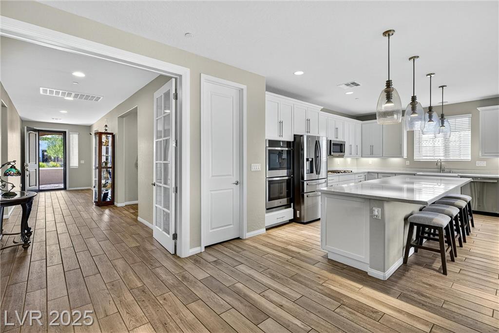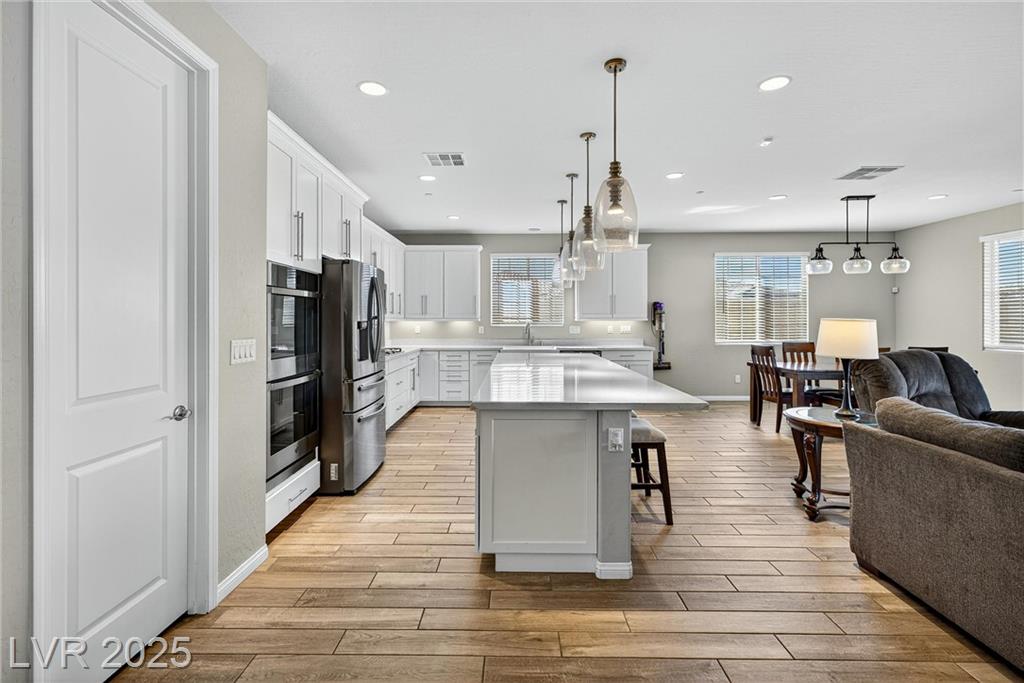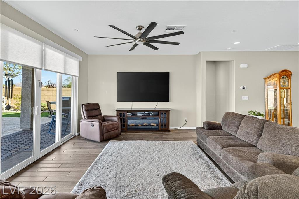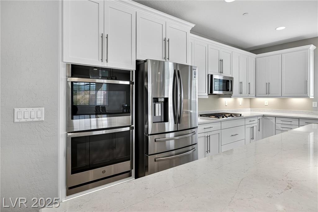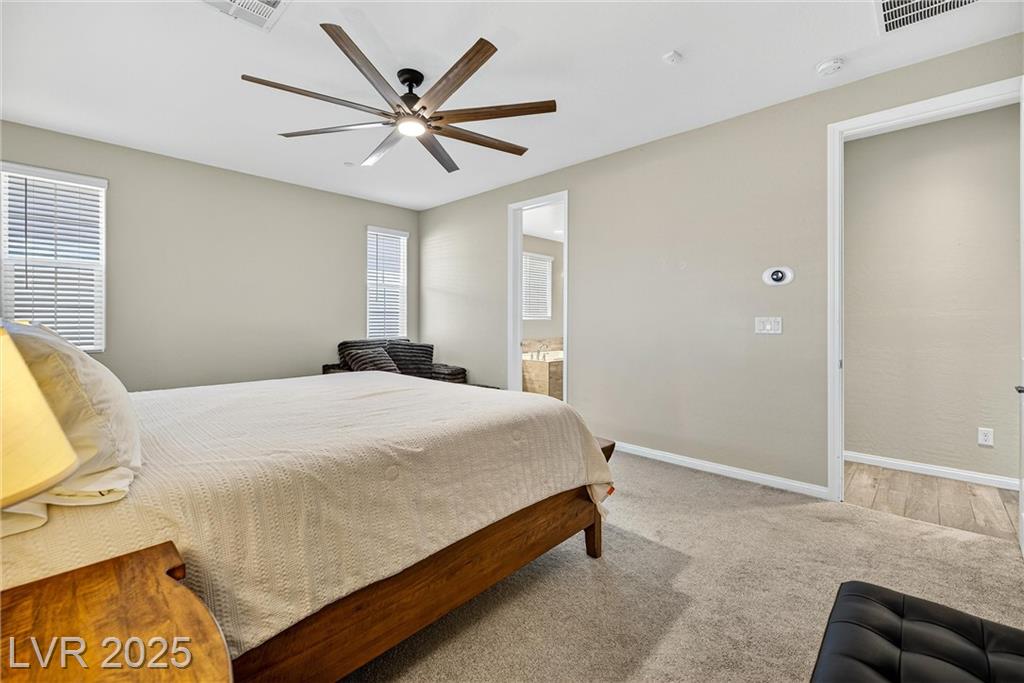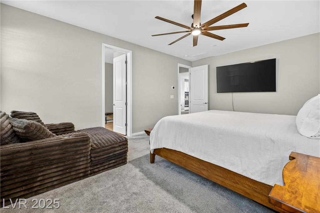 Welcome to this stunning home in the highly sought-after Cadence master-planned community of Henderson. Proudly owned by the original owners, this residence showcases premium builder upgrades and high ceilings throughout. Enjoy a gourmet kitchen with quartz countertops, stainless steel appliances, and abundant cabinetry, plus an extended primary bath, 8” doors, custom closets, and LED lighting. The versatile den offers space for an office or 4th bedroom, and the fully insulated garage adds comfort year-round. Step outside to your private backyard oasis with a pool and waterfall, covered patio, and gas line ready for outdoor grilling—perfect for entertaining. Live the resort lifestyle with access to Cadence’s 50-acre Central Park, community pool, pickleball courts, splash pads, and scenic trails—all minutes from Lake Mead and the Las Vegas Strip. A true pride of ownership makes this home a must-see!
