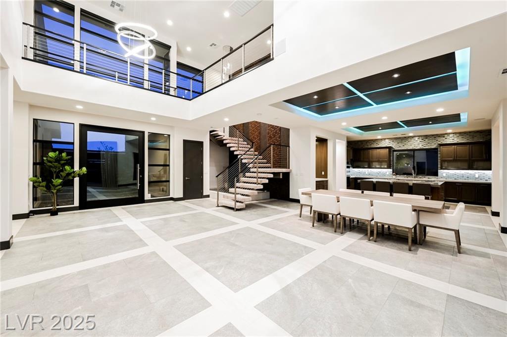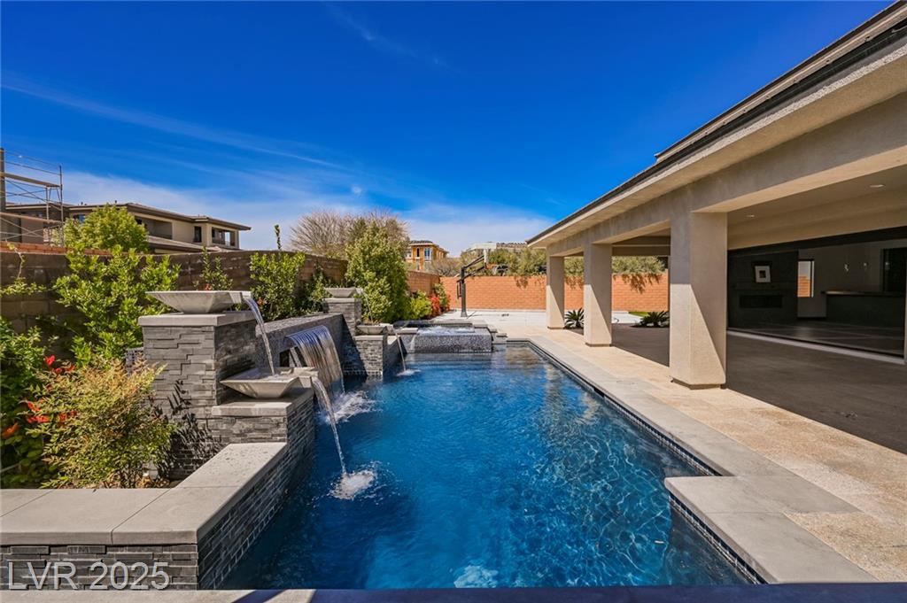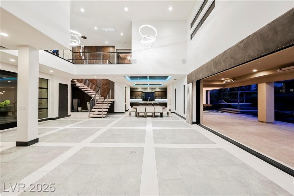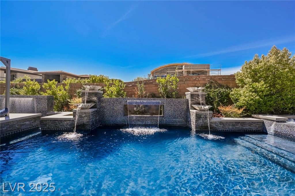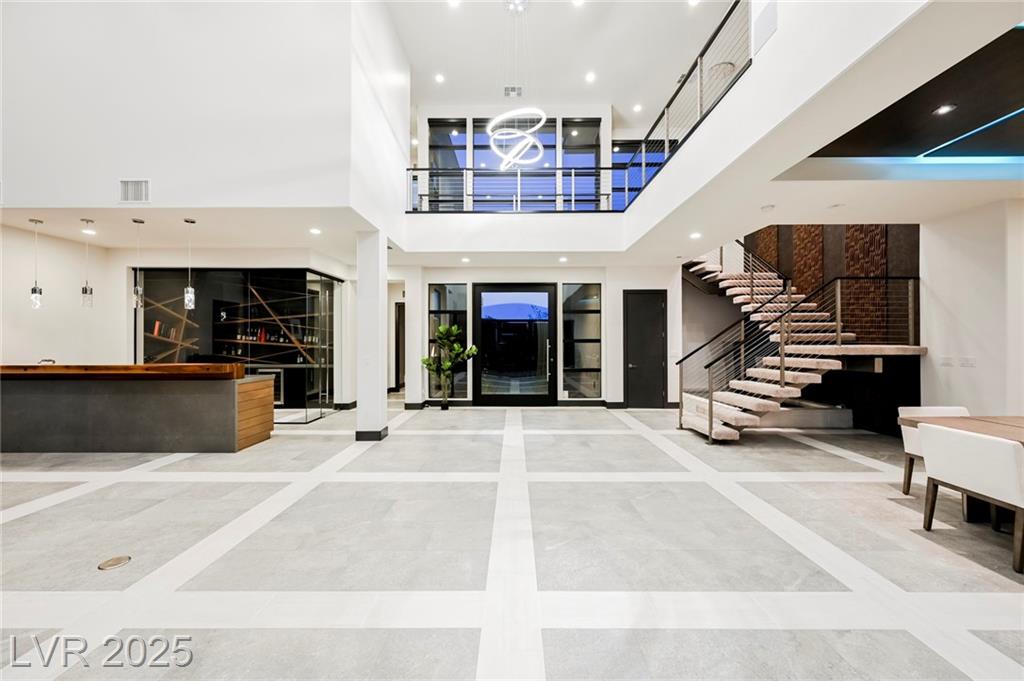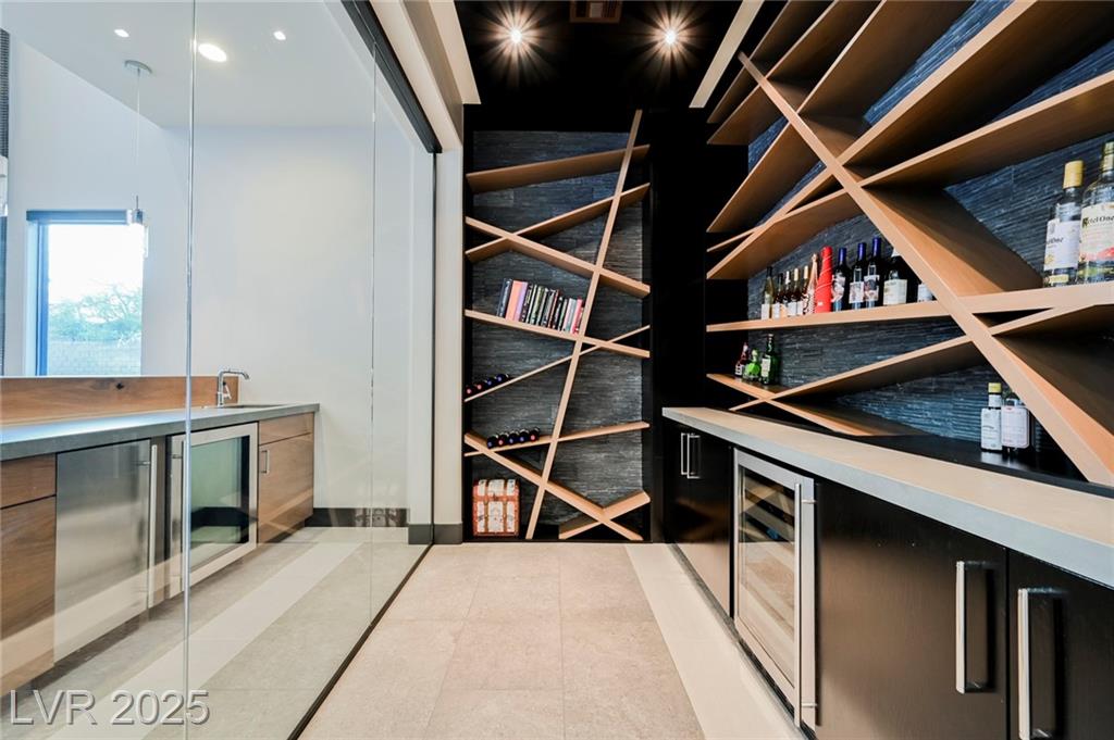 The crown jewel of Sterling Ridge in The Ridges, this architectural masterpiece spares no expense, showcasing impeccable designer finishes at every turn. The gourmet kitchen is a showstopper, featuring a statement center island, top-tier Sub-Zero & Wolf appliances, solid stone countertops, center Island, and sleek European cabinetry. A bright, open great room with soaring double-height ceilings and pocketing glass walls creates the ultimate indoor/outdoor lifestyle. Entertain in style with a full wet bar with seating five, a climate-controlled wine cellar, and a striking floating staircase framed by tranquil fountains. The primary suite is complete with a spacious retreat, lavish bath, dual closets, and a private balcony. The oversized yard boasts a resort-style pool, spa, summer kitchen, covered patios, sports court, and extended driveway for extra parking. This is the rare blend of elegance, comfort, and showpiece design in one of Las Vegas’ most prestigious guard-gated communities.