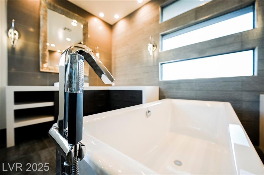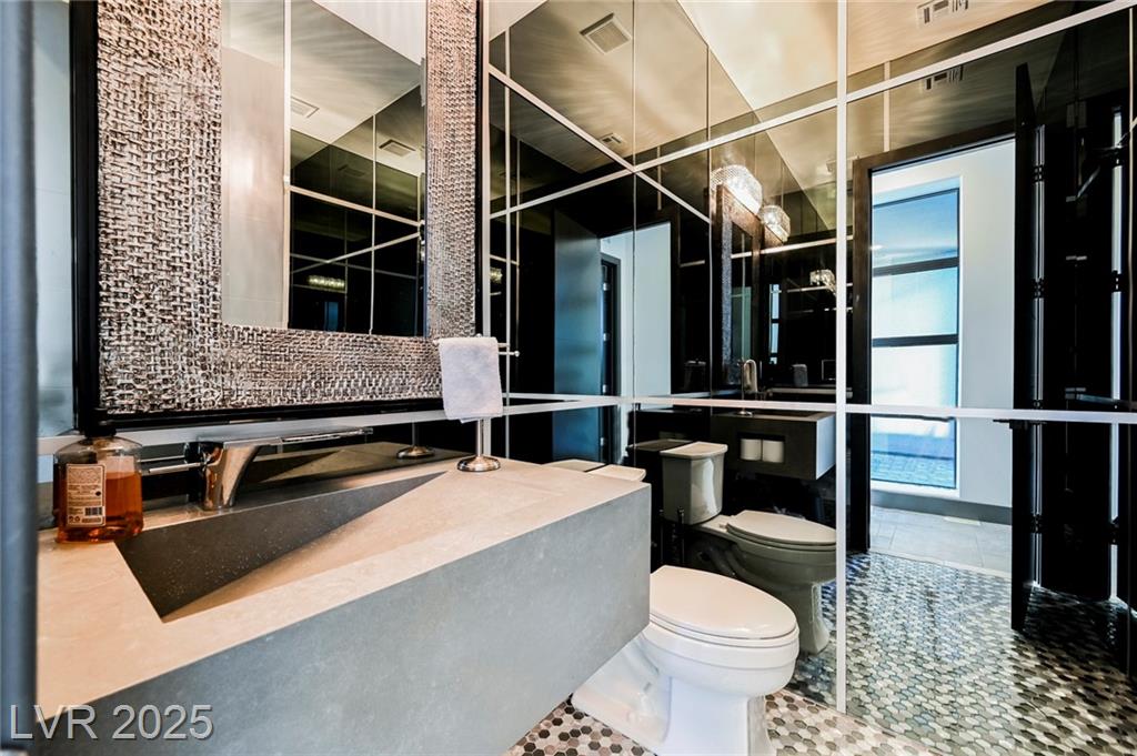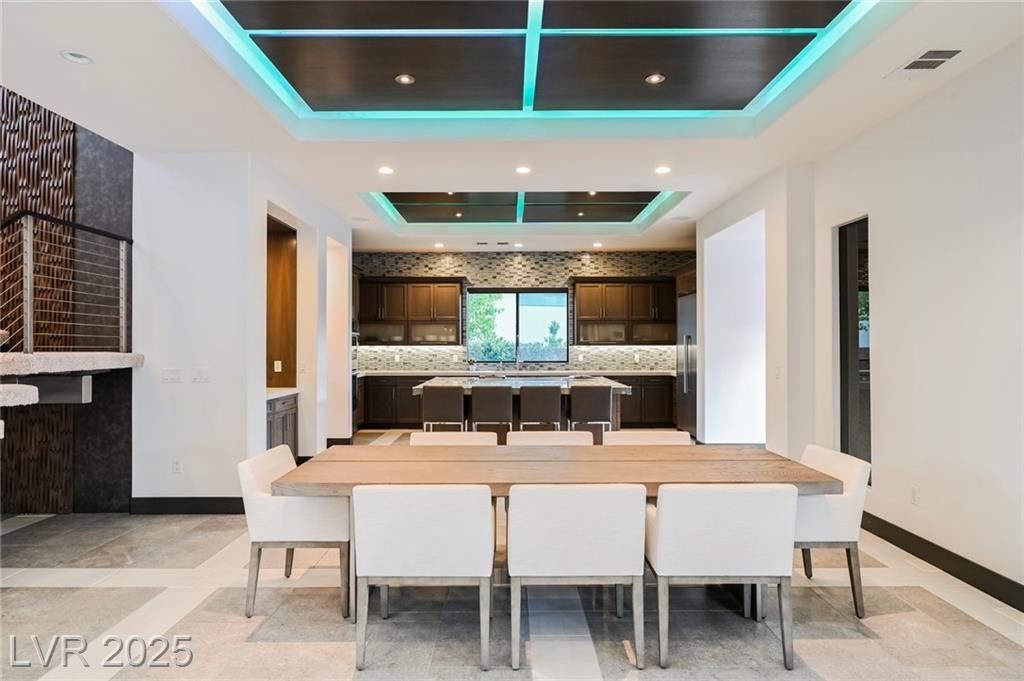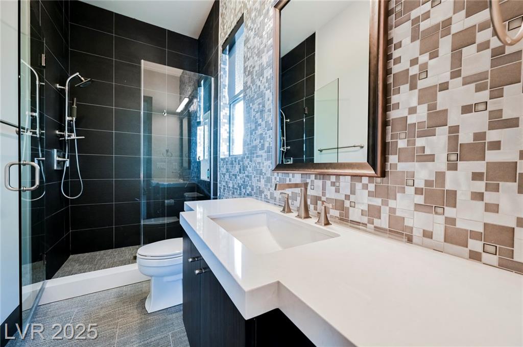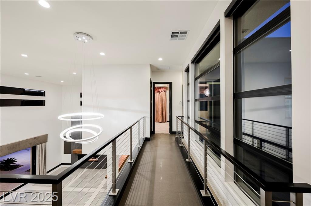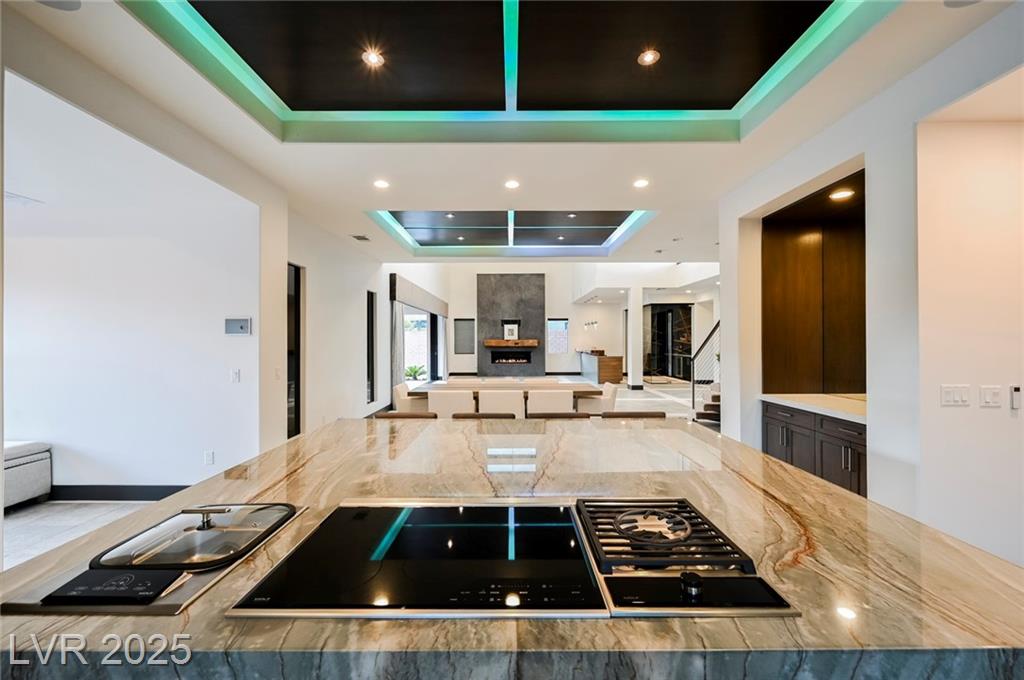 The crown jewel of Sterling Ridge in The Ridges, this architectural masterpiece spares no expense, showcasing impeccable designer finishes at every turn. The gourmet kitchen is a showstopper, featuring a statement center island, top-tier Sub-Zero & Wolf appliances, solid stone countertops, center Island, and sleek European cabinetry. A bright, open great room with soaring double-height ceilings and pocketing glass walls creates the ultimate indoor/outdoor lifestyle. Entertain in style with a full wet bar with seating five, a climate-controlled wine cellar, and a striking floating staircase framed by tranquil fountains. The primary suite is complete with a spacious retreat, lavish bath, dual closets, and a private balcony. The oversized yard boasts a resort-style pool, spa, summer kitchen, covered patios, sports court, and extended driveway for extra parking. This is the rare blend of elegance, comfort, and showpiece design in one of Las Vegas’ most prestigious guard-gated communities.
