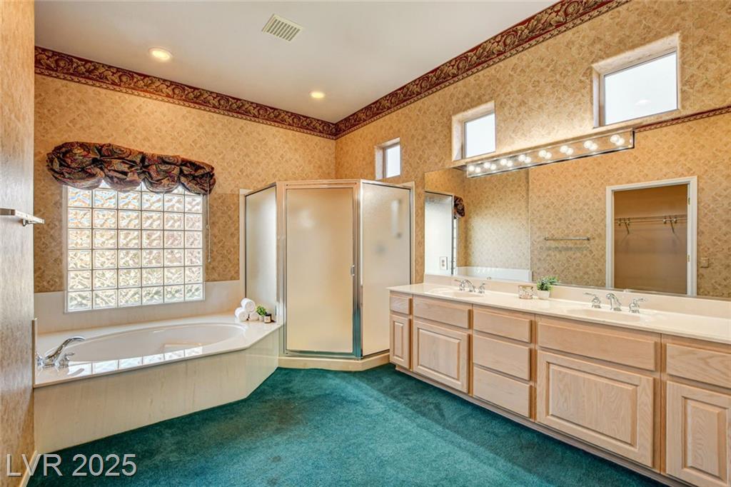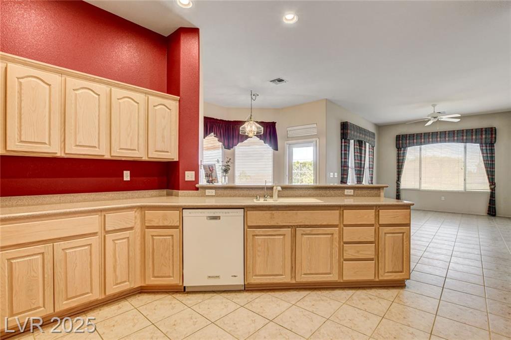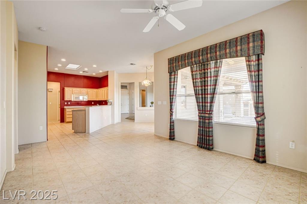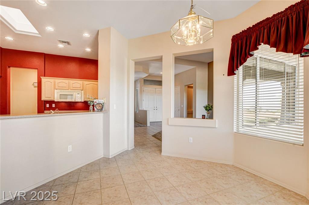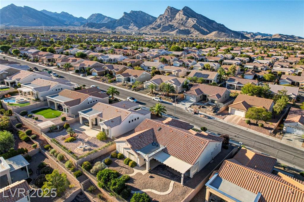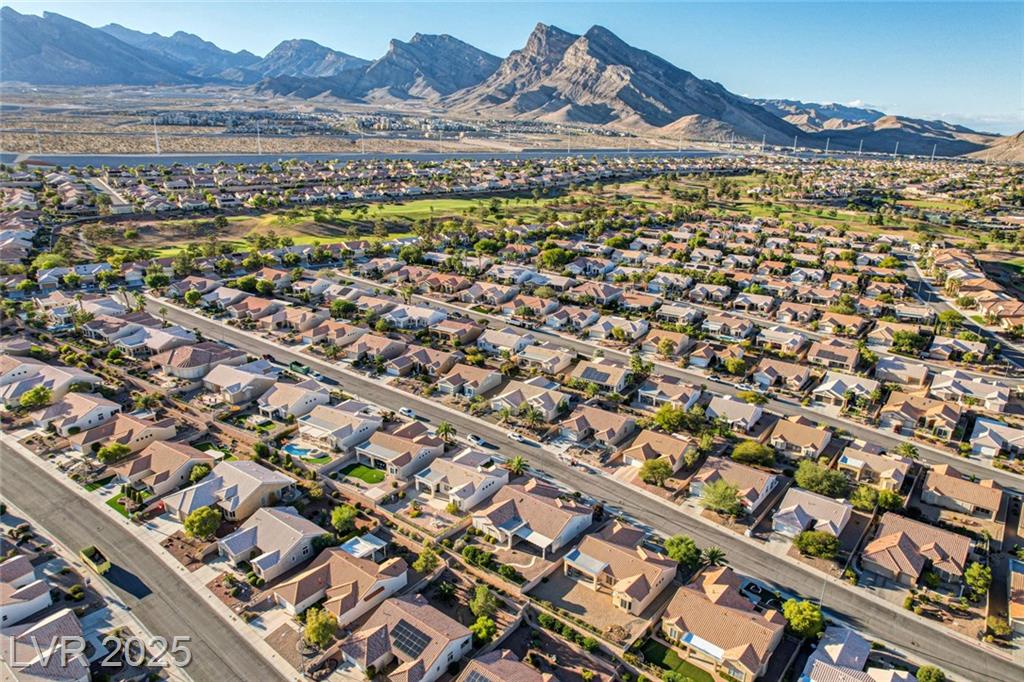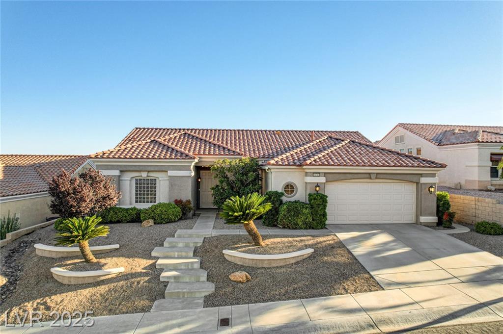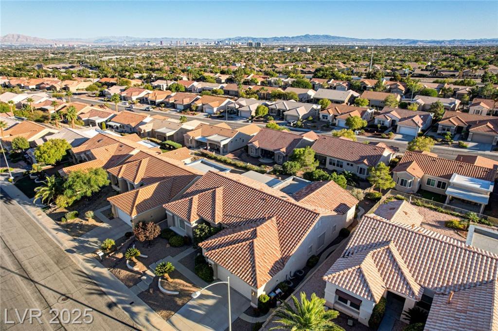 Located High in the Summerlin Hills discover this highly Desired single story home in the highly sought after Sun City Summerlin community! This 3 bedroom, 2 bathroom gem features a 2 car OVERSIZED garage with golf cart parking and built-in cabinets. Enjoy a bright kitchen with granite countertops, breakfast bar, and all included appliances, plus a formal dining room and spacious living room with high ceilings. A separate family room offers extra space to relax. Upgrades include high efficiency furnaces, 2016 HVAC units, and a water conditioner. The covered patio showcases gorgeous Strip and City views—experience breathtaking sunsets every evening! The primary suite boasts a large walk-in closet, separate tub and shower. Blinds and ceiling fans throughout. Enjoy resort style living with 4 fitness centers, 3 golf courses, pickleball, tennis, bocce, theatre, indoor and outdoor pools, spas, restaurants, endless social clubs and much more! Must see today!