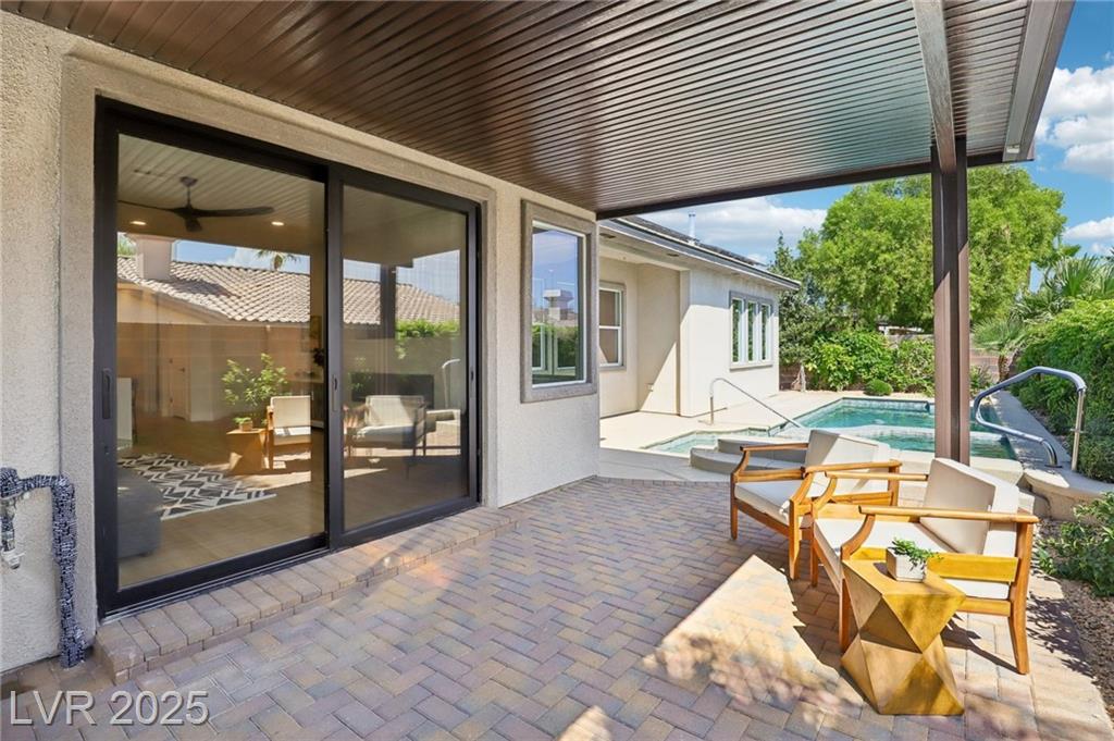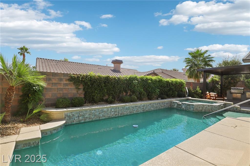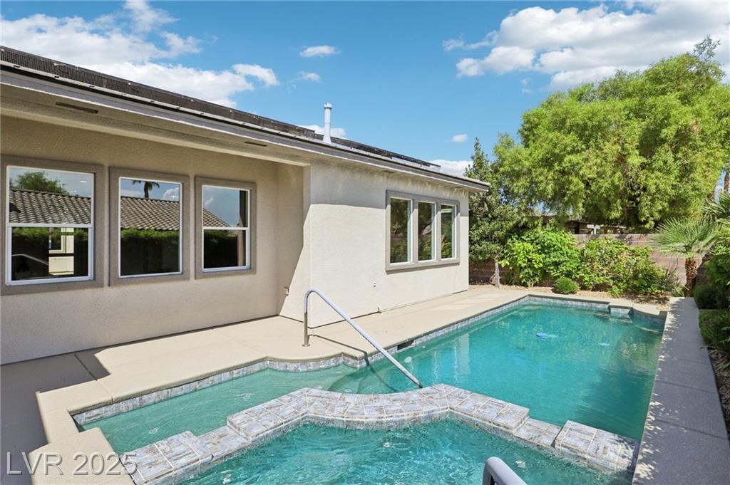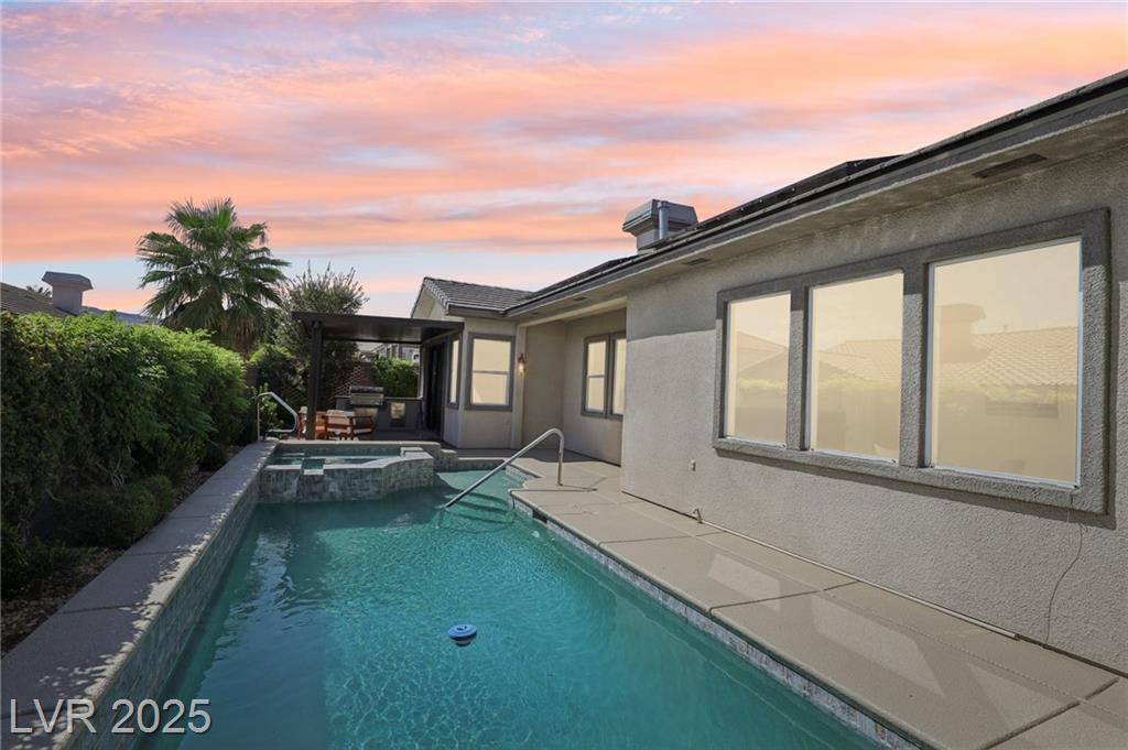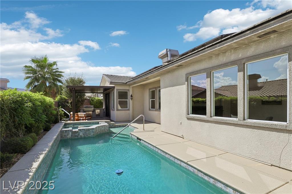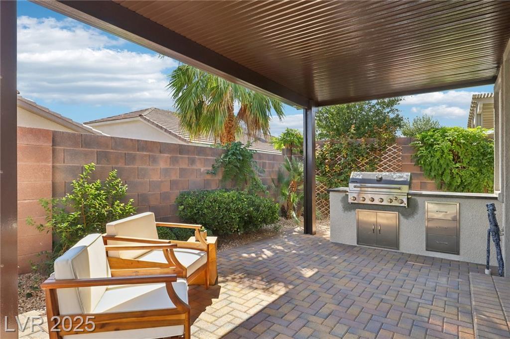 NESTLED IN THE SECLUDED ALL SINGLE STORY GATED COMMUNITY IN THE HEART OF SUMMERLIN SOUTH, YOU WILL FIND THIS FULLY REMODELED 4 BEDROOM HOME W/ CASITA, 3 CAR GARAGE, WHOLE HOME SOLAR AND SO MUCH MORE. THE OWNER TRULY SPARED NO EXPENSES IN THIS RENOVATION! UPGRADED W/ TOP QUALITY MATERIALS & FIXTURES INCLUDING BUT NOT LIMITED TO: BRAND NEW LUXURY VINYL PLANK FLOORS THROUGHOUT, FRESH INTERIOR PAINT, TWO-TONE CABINETRY W/ HIGH END DESIGNER HARDWARE, CUSTOM FABRICATED TAJ MAHAL QUARTZITE COUNTERTOPS W/ OVERSIZED WATERFALL ISLAND, BRAND NEW UPGRADED APPLIANCE PACKAGE IN THE KITCHEN, 3 CUSTOM BUILT FIREPLACE WALLS, HAND PICKED DESIGNER FIXTURES/FAUCETS/LIGHTING THROUGHOUT, A SPA STYLE PRIMARY BATH WITH HIS & HER VANITIES, OVERSIZED MIRRORS & A CUSTOM TILED SHOWER W/ FREESTANDING TUB! FULL LANDSCAPE OVER-HALL FRONT AND REAR W/ NEW IRRIGATION AND LIGHTING! ENJOY OVERSIZED POOL/SPA AND BRAND NEW BUILT IN BBQ AND COVERED PATIO. THIS HOME IS TURN KEY AND READY TO MOVE IN!