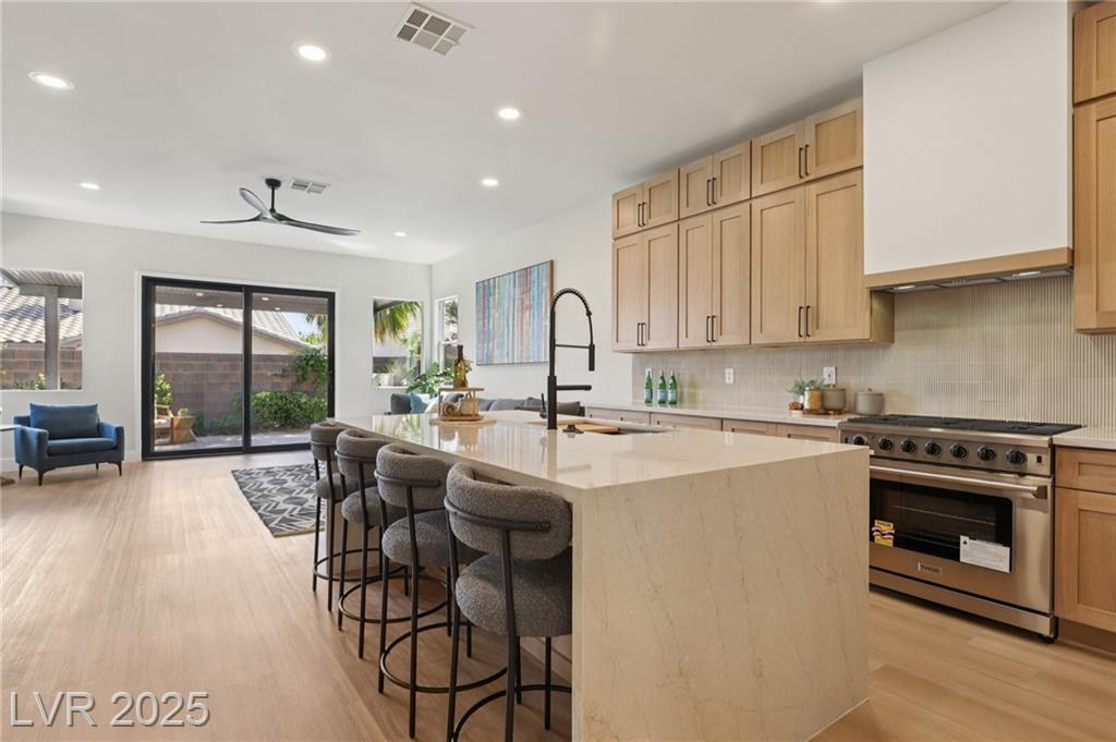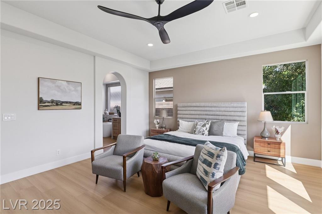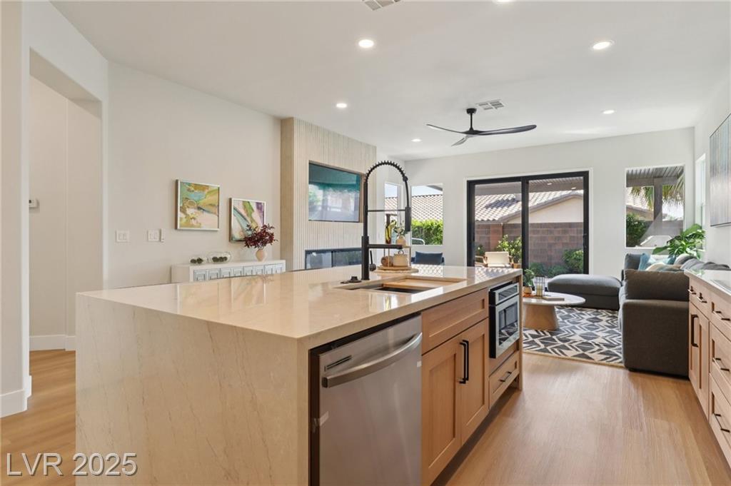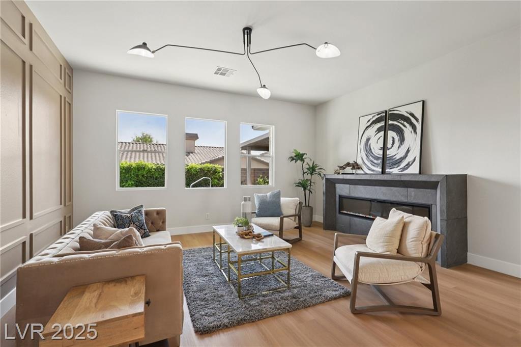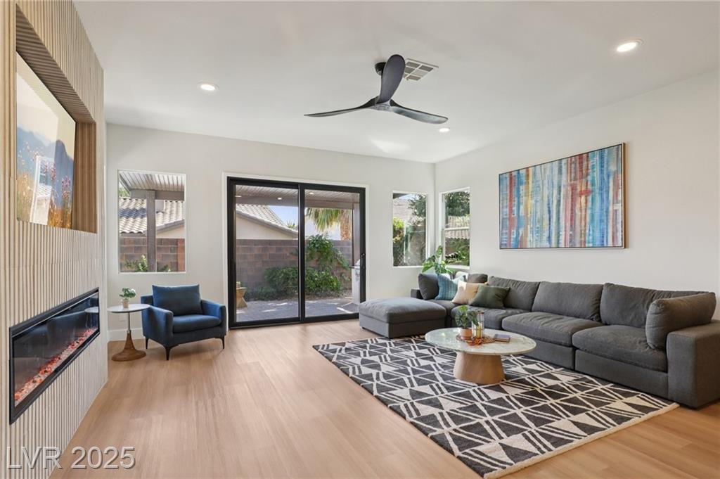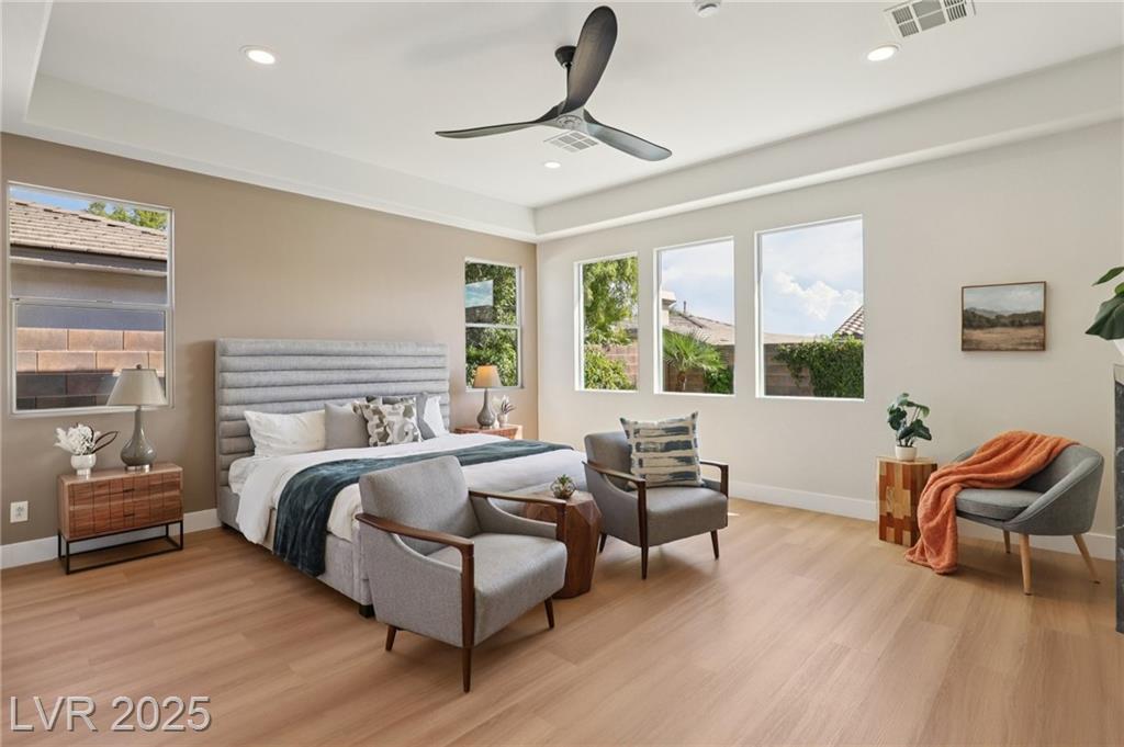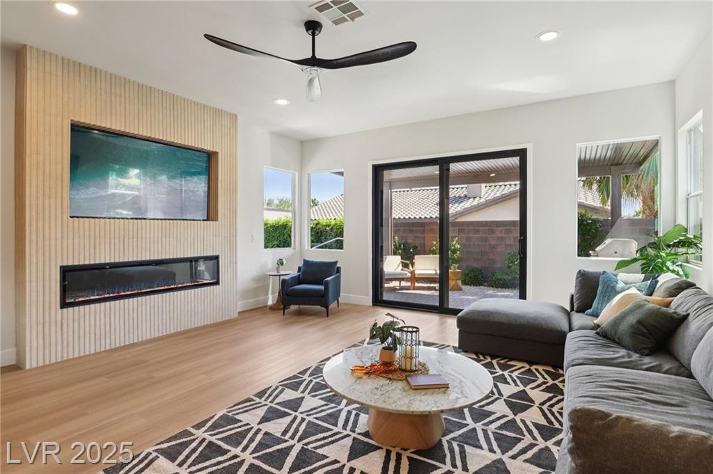 NESTLED IN THE SECLUDED ALL SINGLE STORY GATED COMMUNITY IN THE HEART OF SUMMERLIN SOUTH, YOU WILL FIND THIS FULLY REMODELED 4 BEDROOM HOME W/ CASITA, 3 CAR GARAGE, WHOLE HOME SOLAR AND SO MUCH MORE. THE OWNER TRULY SPARED NO EXPENSES IN THIS RENOVATION! UPGRADED W/ TOP QUALITY MATERIALS & FIXTURES INCLUDING BUT NOT LIMITED TO: BRAND NEW LUXURY VINYL PLANK FLOORS THROUGHOUT, FRESH INTERIOR PAINT, TWO-TONE CABINETRY W/ HIGH END DESIGNER HARDWARE, CUSTOM FABRICATED TAJ MAHAL QUARTZITE COUNTERTOPS W/ OVERSIZED WATERFALL ISLAND, BRAND NEW UPGRADED APPLIANCE PACKAGE IN THE KITCHEN, 3 CUSTOM BUILT FIREPLACE WALLS, HAND PICKED DESIGNER FIXTURES/FAUCETS/LIGHTING THROUGHOUT, A SPA STYLE PRIMARY BATH WITH HIS & HER VANITIES, OVERSIZED MIRRORS & A CUSTOM TILED SHOWER W/ FREESTANDING TUB! FULL LANDSCAPE OVER-HALL FRONT AND REAR W/ NEW IRRIGATION AND LIGHTING! ENJOY OVERSIZED POOL/SPA AND BRAND NEW BUILT IN BBQ AND COVERED PATIO. THIS HOME IS TURN KEY AND READY TO MOVE IN!