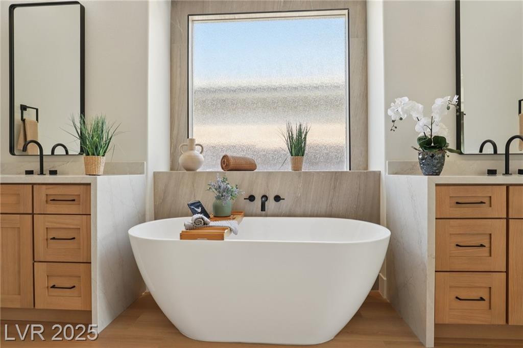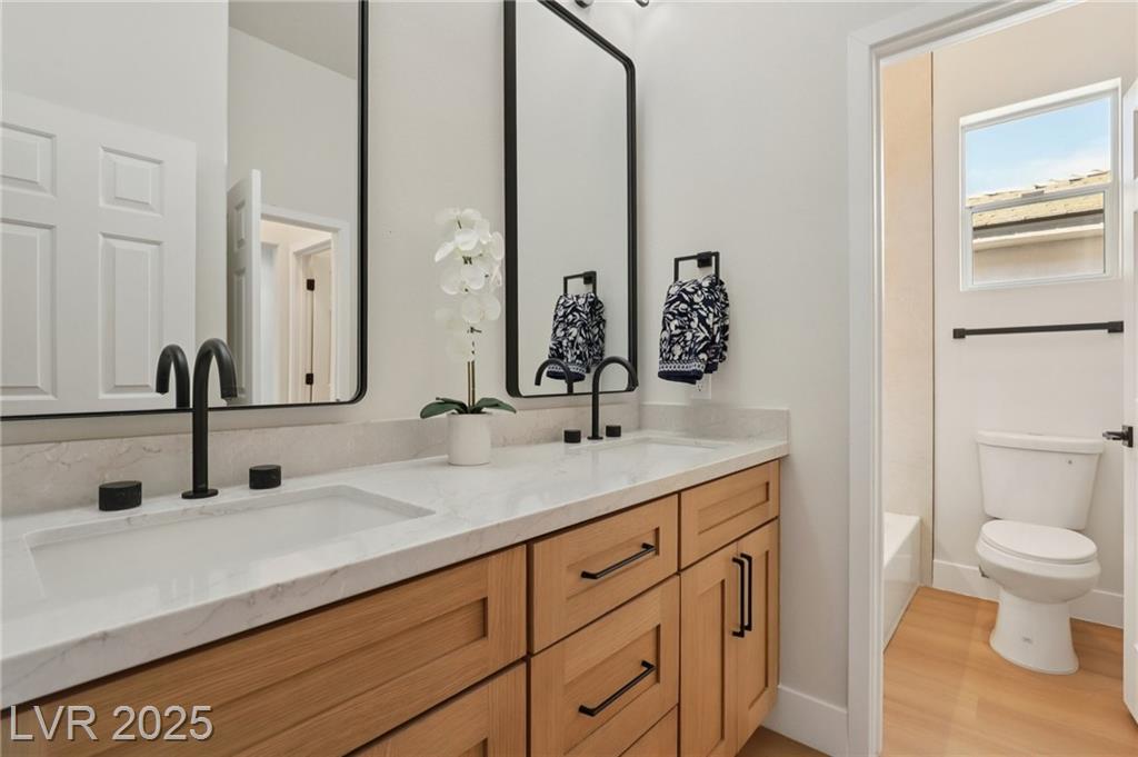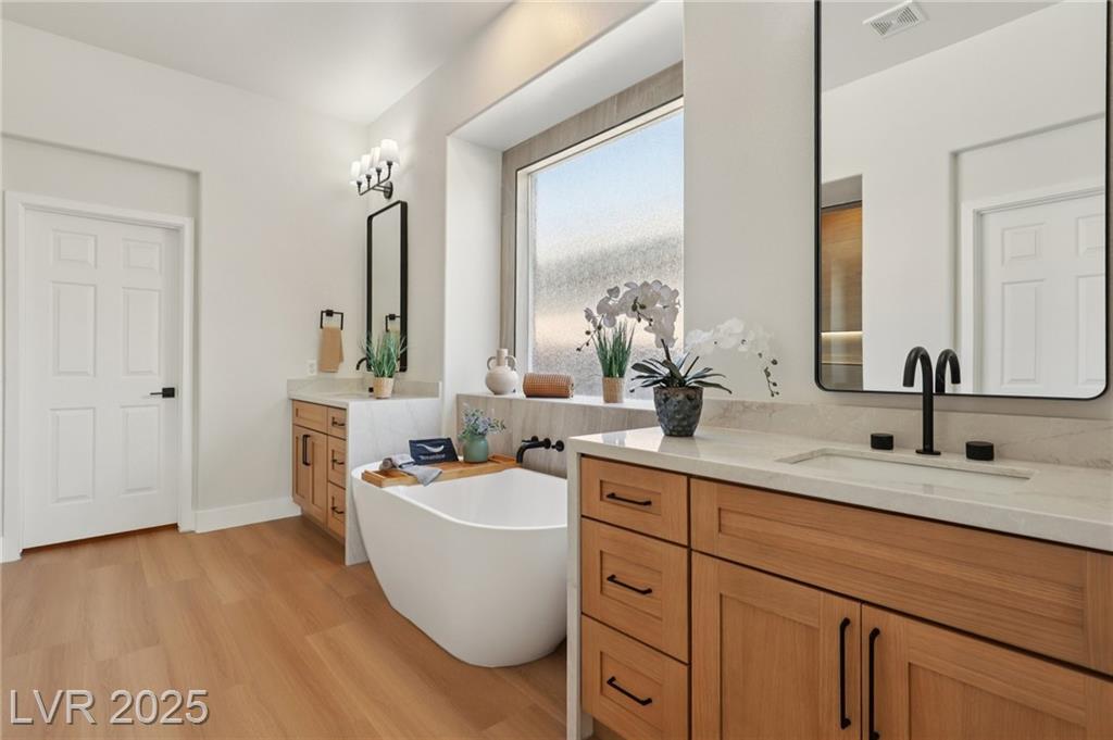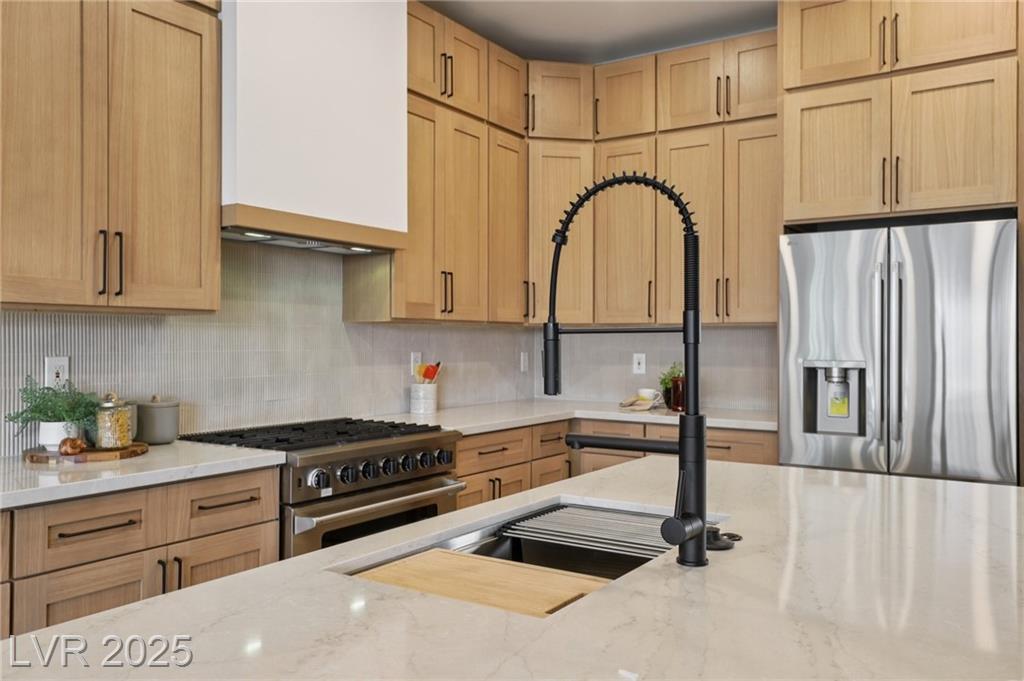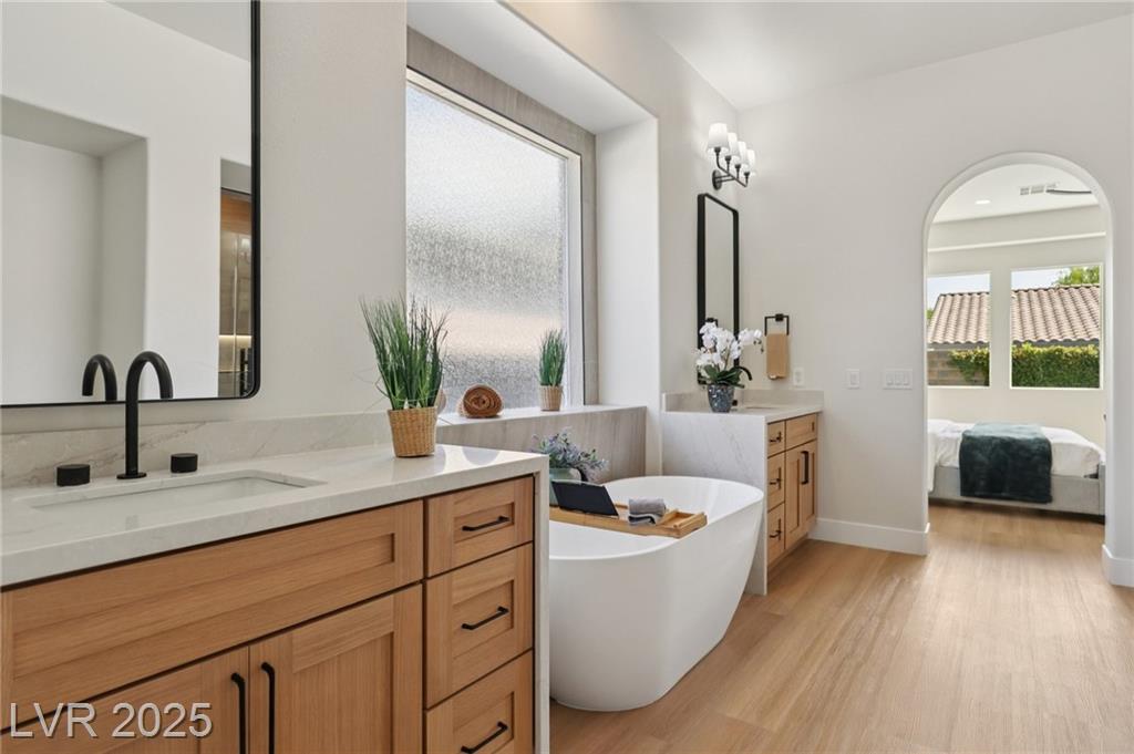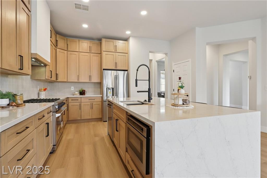 NESTLED IN THE SECLUDED ALL SINGLE STORY GATED COMMUNITY IN THE HEART OF SUMMERLIN SOUTH, YOU WILL FIND THIS FULLY REMODELED 4 BEDROOM HOME W/ CASITA, 3 CAR GARAGE, WHOLE HOME SOLAR AND SO MUCH MORE. THE OWNER TRULY SPARED NO EXPENSES IN THIS RENOVATION! UPGRADED W/ TOP QUALITY MATERIALS & FIXTURES INCLUDING BUT NOT LIMITED TO: BRAND NEW LUXURY VINYL PLANK FLOORS THROUGHOUT, FRESH INTERIOR PAINT, TWO-TONE CABINETRY W/ HIGH END DESIGNER HARDWARE, CUSTOM FABRICATED TAJ MAHAL QUARTZITE COUNTERTOPS W/ OVERSIZED WATERFALL ISLAND, BRAND NEW UPGRADED APPLIANCE PACKAGE IN THE KITCHEN, 3 CUSTOM BUILT FIREPLACE WALLS, HAND PICKED DESIGNER FIXTURES/FAUCETS/LIGHTING THROUGHOUT, A SPA STYLE PRIMARY BATH WITH HIS & HER VANITIES, OVERSIZED MIRRORS & A CUSTOM TILED SHOWER W/ FREESTANDING TUB! FULL LANDSCAPE OVER-HALL FRONT AND REAR W/ NEW IRRIGATION AND LIGHTING! ENJOY OVERSIZED POOL/SPA AND BRAND NEW BUILT IN BBQ AND COVERED PATIO. THIS HOME IS TURN KEY AND READY TO MOVE IN!
