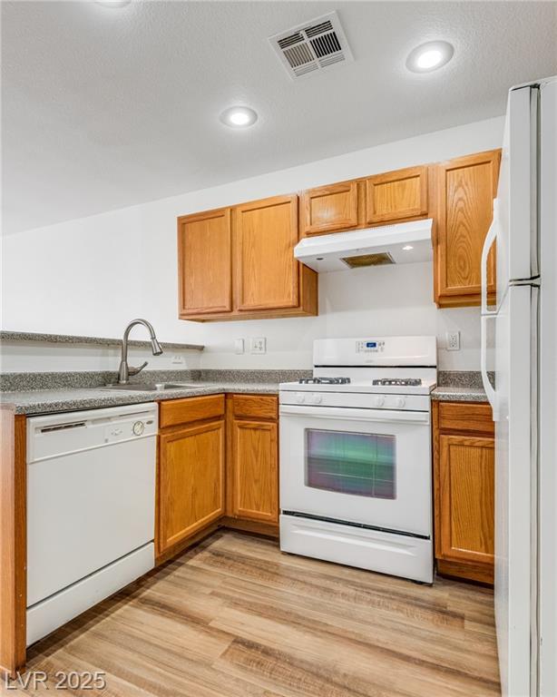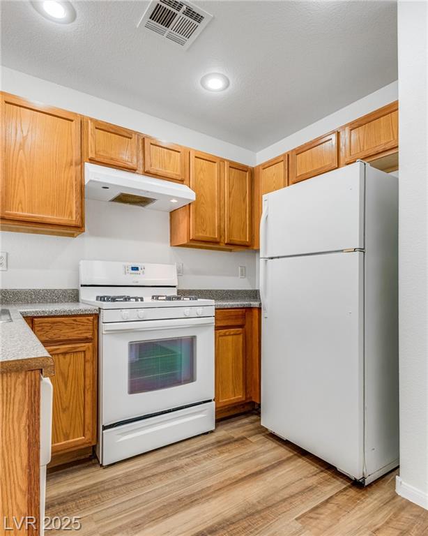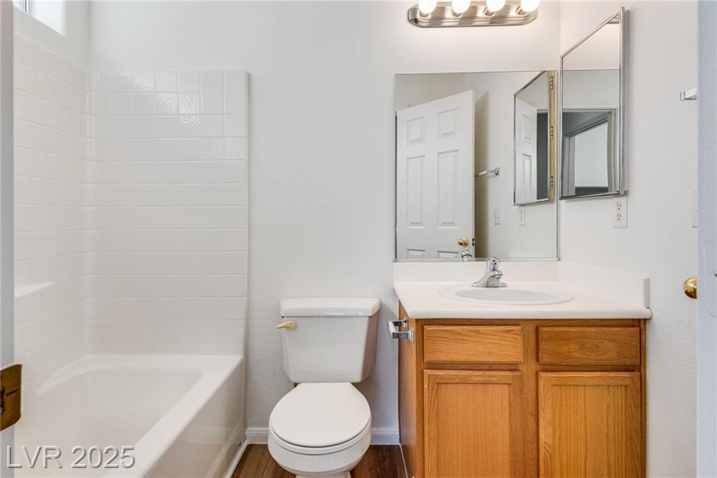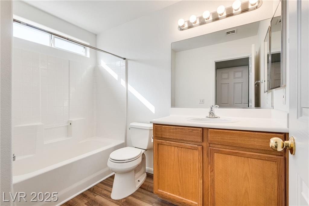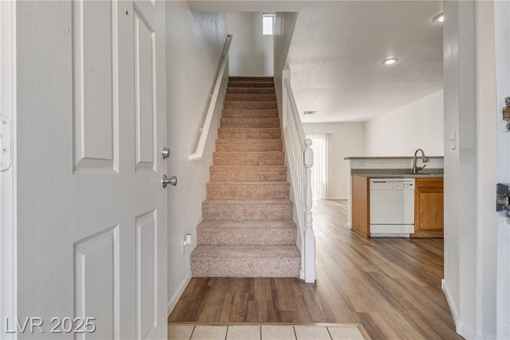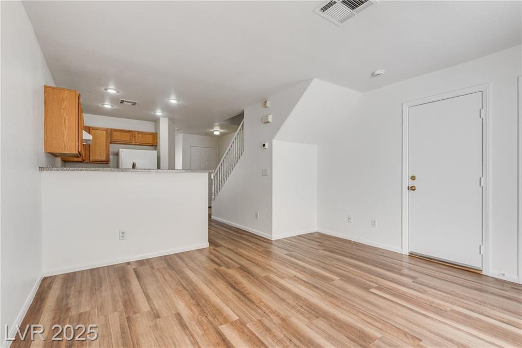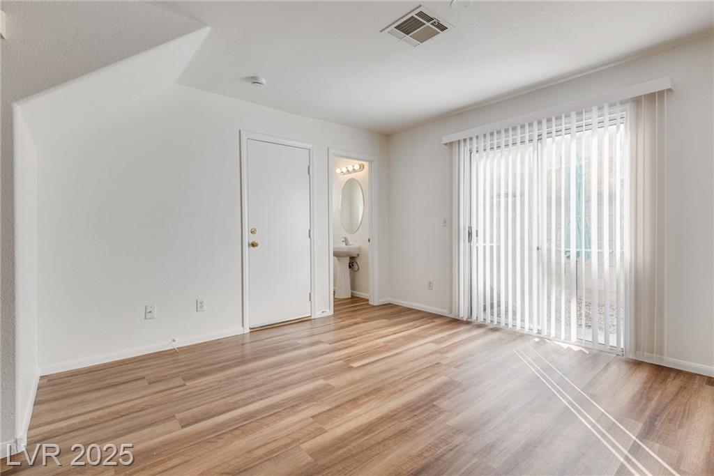 Beautifully updated and move-in ready, this charming 2-bedroom, 2.5-bath home is tucked inside a gated North Las Vegas community. The open-concept layout showcases fresh paint, stylish luxury plank flooring, and new carpet on the stairs. The bright kitchen features a breakfast bar and comes fully equipped with all appliances—including a full-size washer and dryer. Both bedrooms include their own private full bathrooms, while a convenient half-bath serves guests downstairs. The primary suite offers access to a private balcony, perfect for enjoying your morning coffee. Additional highlights include a freshly painted one-car garage with full driveway, a private fenced backyard, and a brand-new HVAC system installed in 2024. Now Available!
