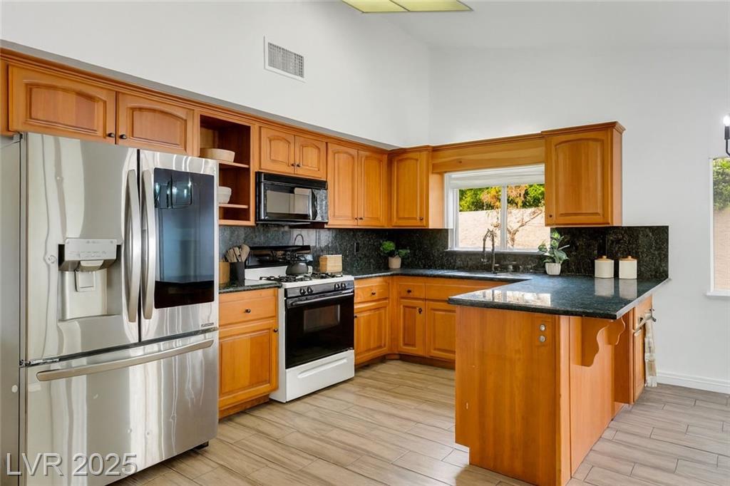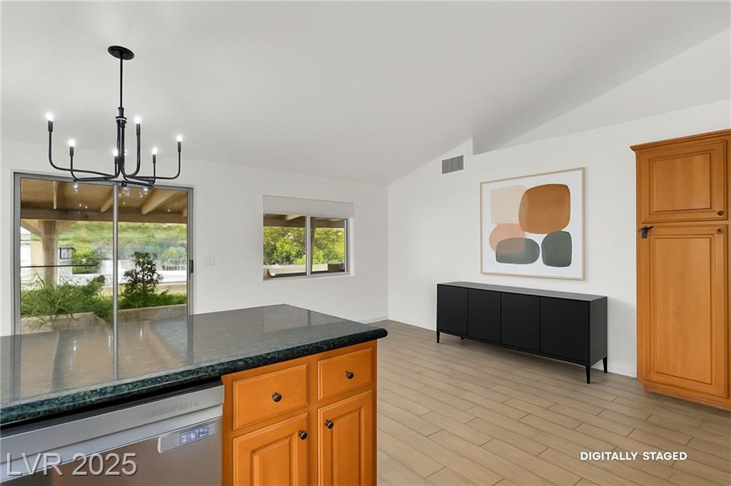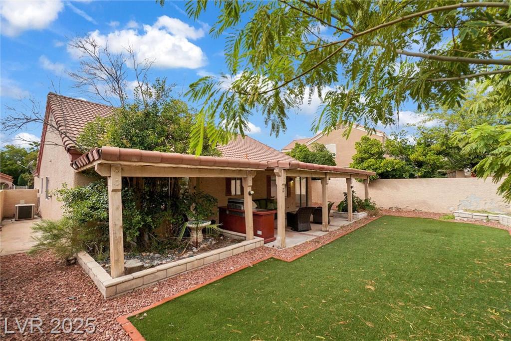 Welcome to this charming single-story home in the highly desirable community of The Lakes. Surrounded by mature trees, lush landscaping, and scenic walking paths, this neighborhood offers a true sense of community with parks, playgrounds, and nearby lakes. Inside, you’ll find an open living and dining area filled with natural light, a spacious kitchen with room for a breakfast table and cozy family space, and 3 comfortable bedrooms. The primary suite is generously sized with space for a sitting area beneath a large bay window. One of the bedrooms is staged as a home office for versatility. The backyard features a covered patio and vegetable garden — perfect for relaxing or entertaining. Ideally located near Downtown Summerlin, shopping, restaurants, and daily conveniences, this home combines comfort, charm, and convenience in one of Las Vegas’s most beloved neighborhoods.