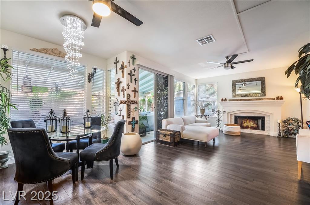 JUST LIKE NEW THOUSANDS IN RECENT UPGRADES JUST LIKE NEW AND ON HUGE LOT! Stunning 5-bed, 4-bath, 3-car home on a quiet cul-de-sac lot with dual master suites, one with dual walk-ins, and dual fireplaces. Gourmet kitchen with white quartz counters, black stainless Samsung appliances, and black slate floors & backsplash. Pergo engineered flooring and custom window coverings on all 37 windows. 2-story drapes in living/dining, imported travertine in 3 baths. Upgrades include AC ’21 & ’24, furnace ’24, water heater ’25, water softener ’21. 3-car garage with custom doors & belt-driven openers. Huge shed with electricity & panel. Furniture negotiable. Turnkey luxury living with style, space, and sophistication. A CALIFORNIA EXODUS FAVORITE BEST IN CLASS!!