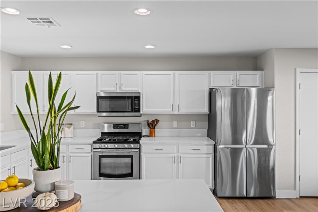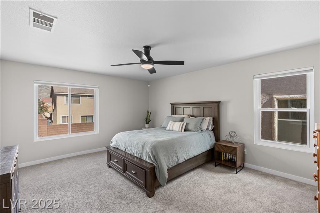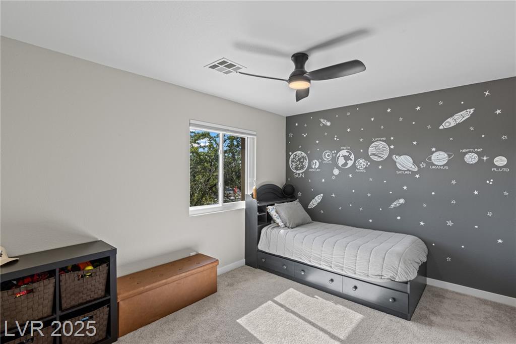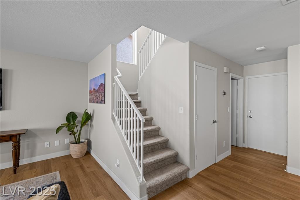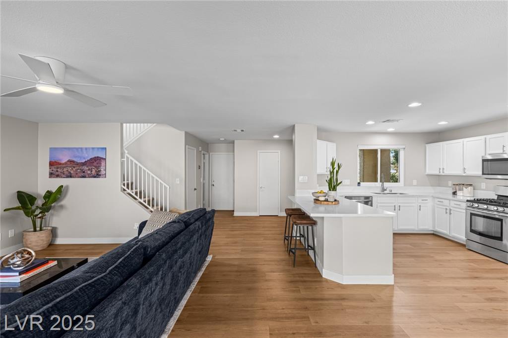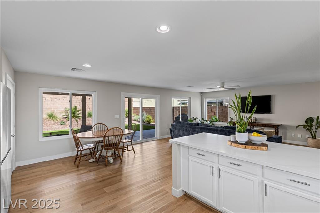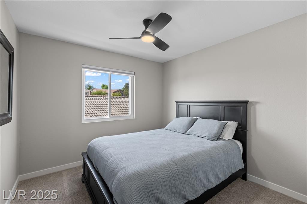This thoughtfully updated 2-story is located in Fallbrook, a friendly Summerlin community w/neighborhood park & picnic area—just a short walk from Staton Elementary School & less than 10 minutes from premier shopping & dining at Downtown Summerlin, Boca Park, & Tivoli Village. Blending comfort & convenience, the interior boasts new flooring & baseboards, Nest thermostats, & blackout shades in all the bedrooms. The open-concept main level is ideal for everyday living & entertaining. In the kitchen, Samsung appliances, marbled quartz countertops, & a peninsula w/seating make both cooking & conversation easy. Unwind in the family room, complete w/mounted TV & glass sliders that open to the patio for seamless indoor/outdoor living. In the backyard, enjoy a low-maintenance retreat w/new pet-treated turf, raised garden beds, & a large covered patio. A collection of fruit trees—apple, plum, lemon, mandarin orange, & fig—adds natural beauty throughout the property.
