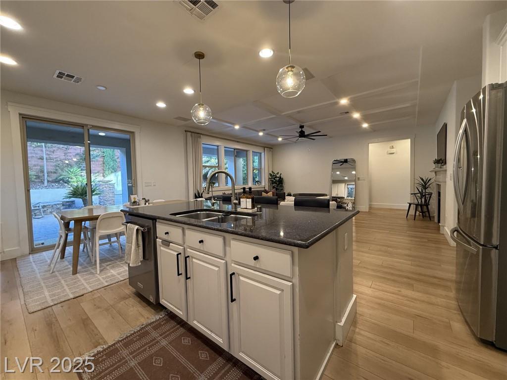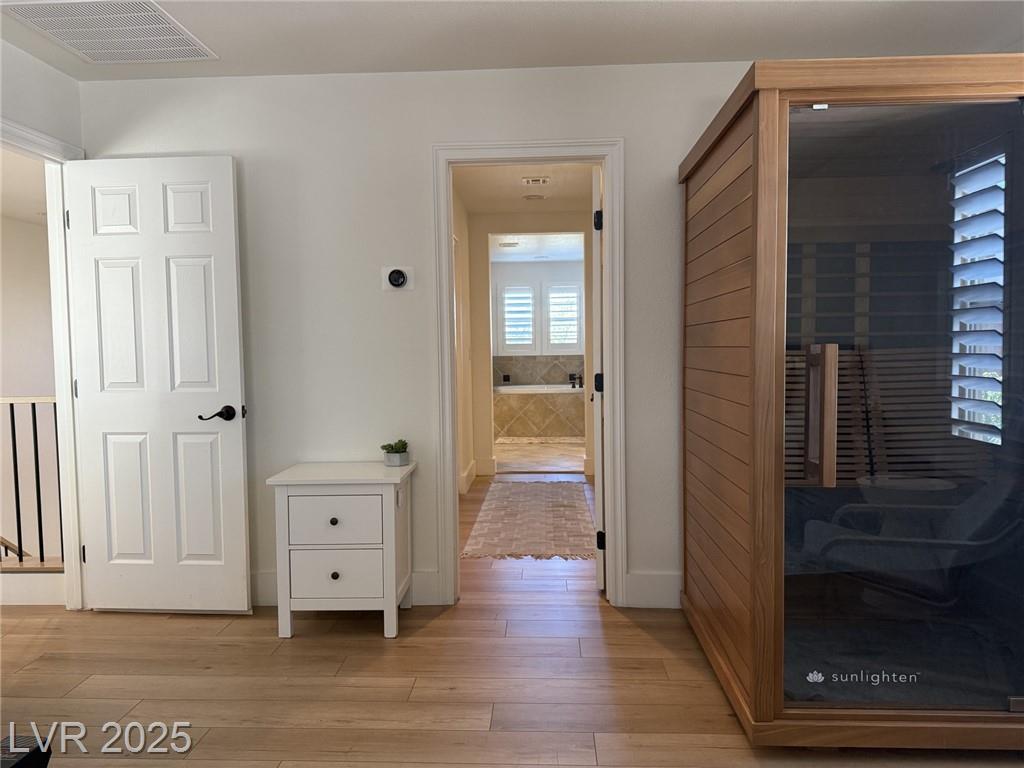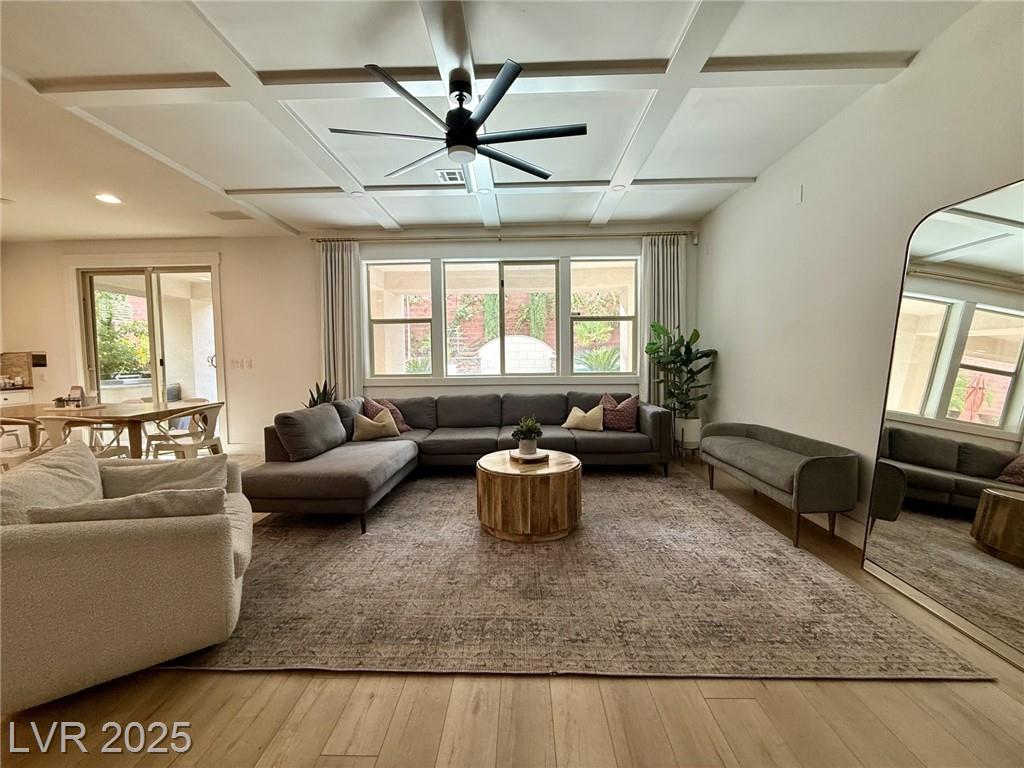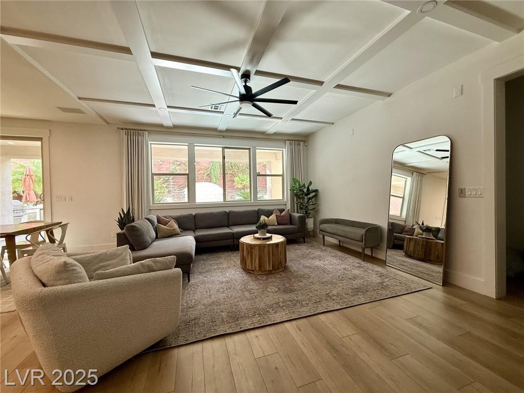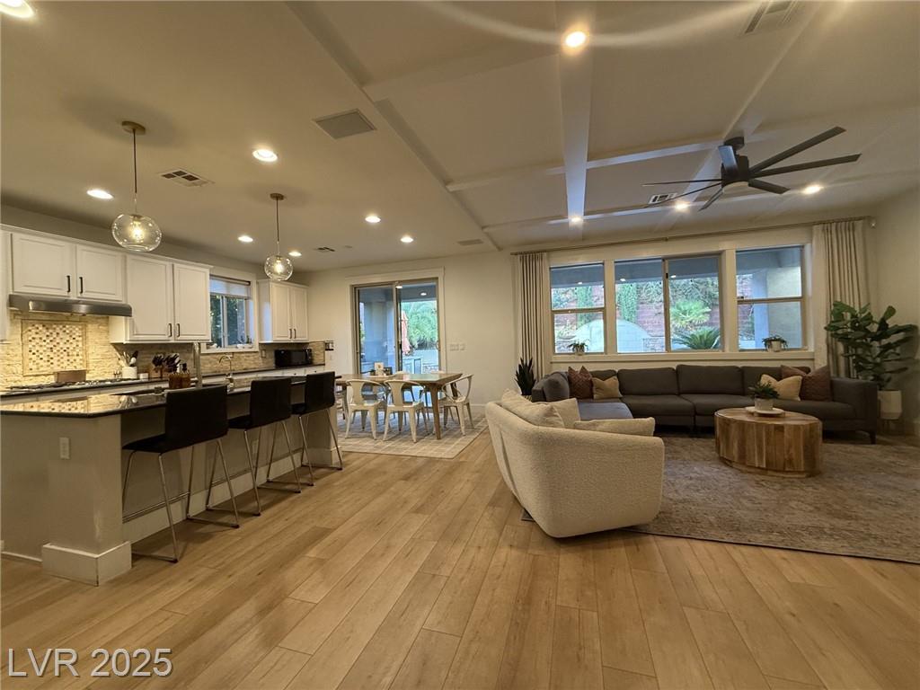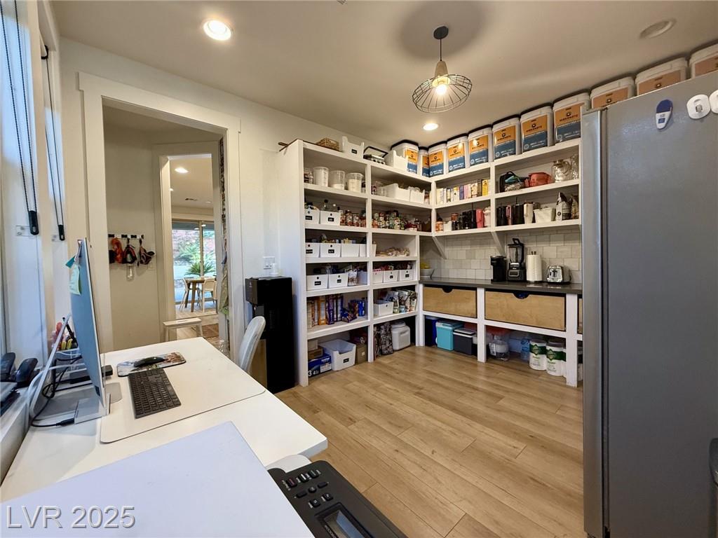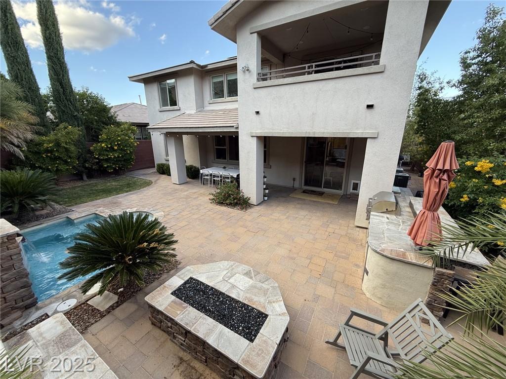 Discover this stunning 3,365 sq ft home in Summerlin South, nestled in the desirable 89135 zip code—a true masterpiece in craftsmanship with beautiful curb appeal. Elegant custom woodwork enhances doorways, walkways, and windows throughout, including a coffered ceiling downstairs and custom window coverings. The kitchen boasts a one-of-a-kind custom pantry, unmatched in the neighborhood for its innovative design and ample storage. Upstairs, unwind in the theater-style loft, perfect for movie nights or a cozy retreat. Relax by the fireplace indoors, or step outside to an exquisite backyard oasis with lush landscaping, a sparkling pool, and serene patio—your private paradise. Ideal for entertaining or relaxation, this gem offers luxury living at its finest!