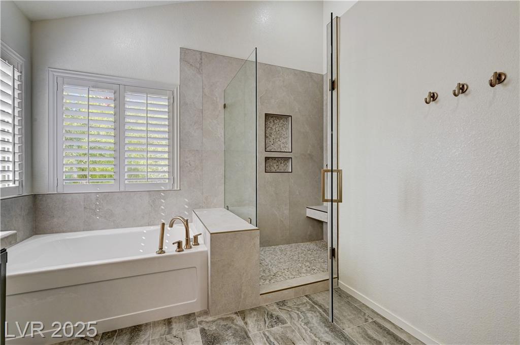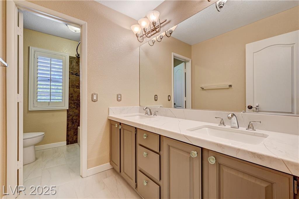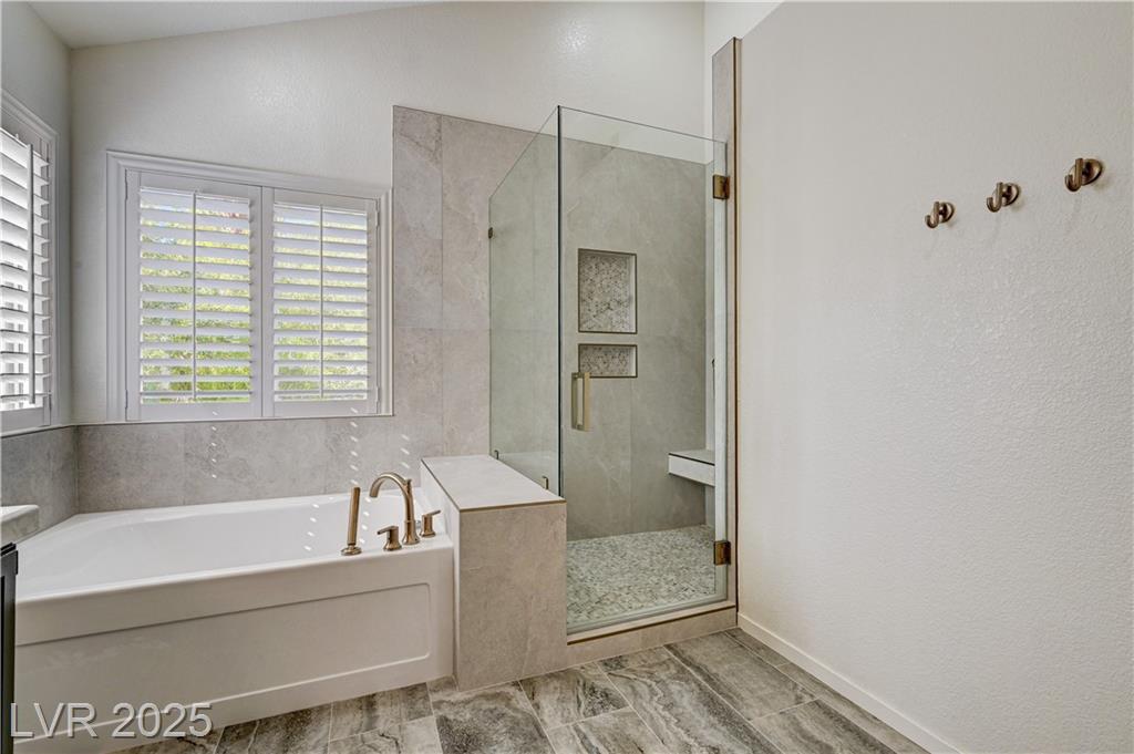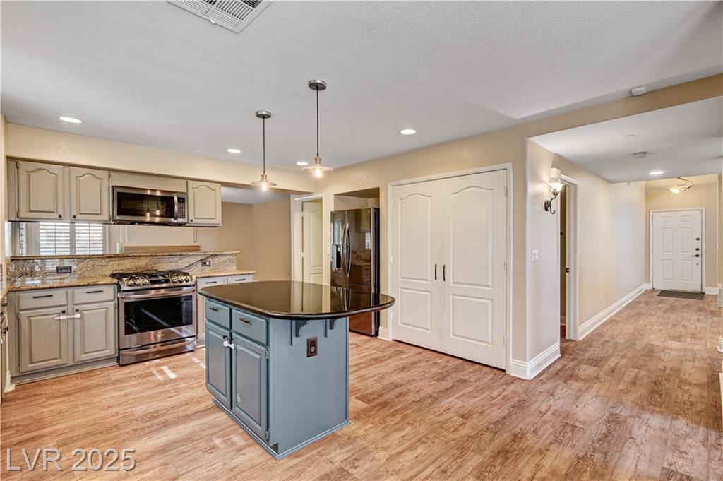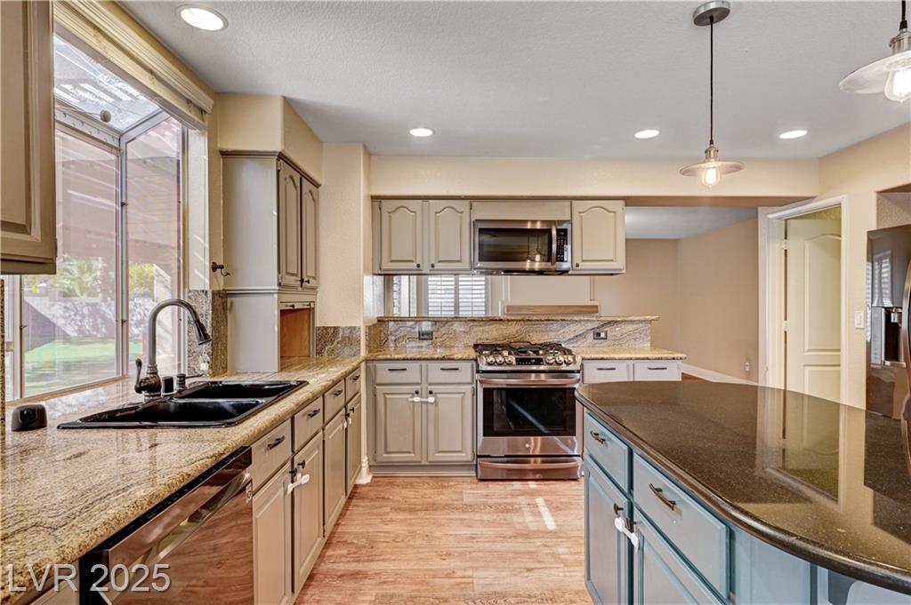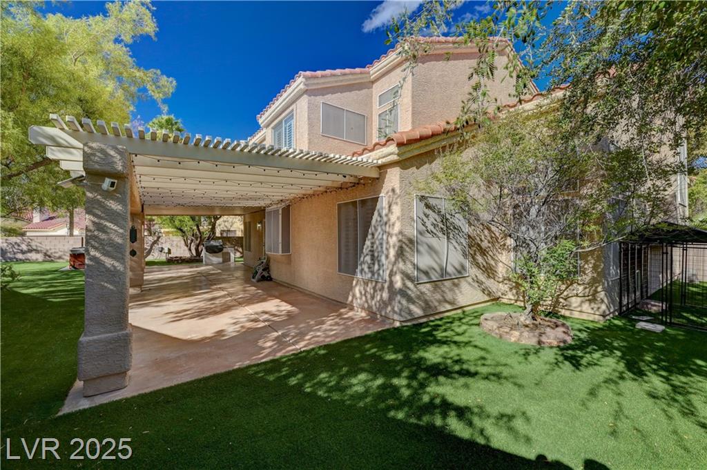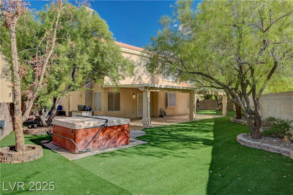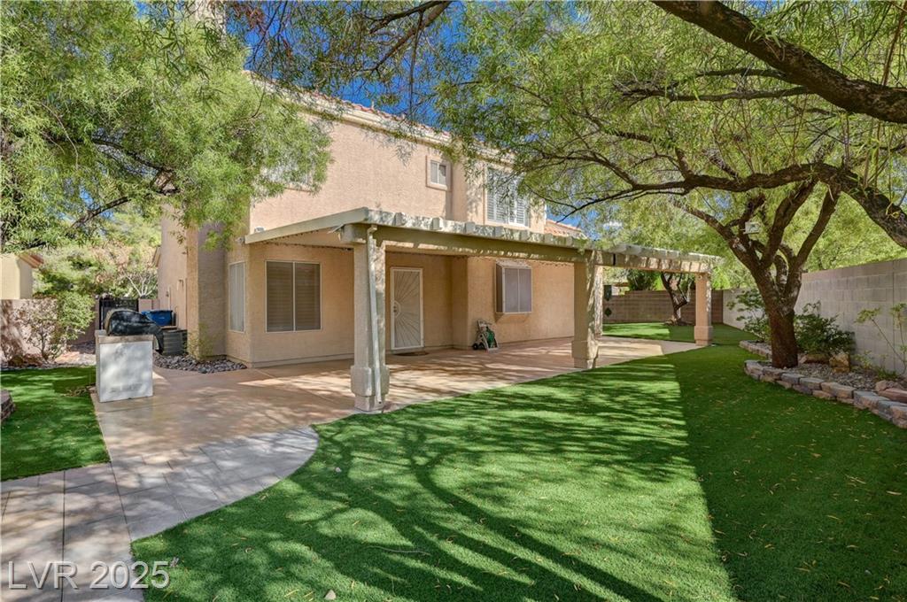 Welcome to this spacious 4-bedroom, 3-bath home with a 3-car garage, perfectly designed for comfort and convenience. Step inside and you’ll find an open-concept layout that seamlessly connects the kitchen, living, and dining areas—ideal for both everyday living and entertaining guests. All bedrooms are located upstairs, creating a private and peaceful retreat for the entire family! The oversized primary suite comes with an organized walk-in closet and a beautifully remodeled bathroom, offering a true spa-like experience. Outdoors, enjoy the hot tub surrounded by newer turf, fresh landscaping, built in BBQ and plenty of space to host gatherings or just unwind under the covered patio. A built-in dog door going to an enclosed area makes this home pet-friendly ready. Garage has plenty of storage space and epoxy floors. All appliances and water softener included. This home is truly move in ready in a quiet North Summerlin community. Contact us to schedule your private showing today!
