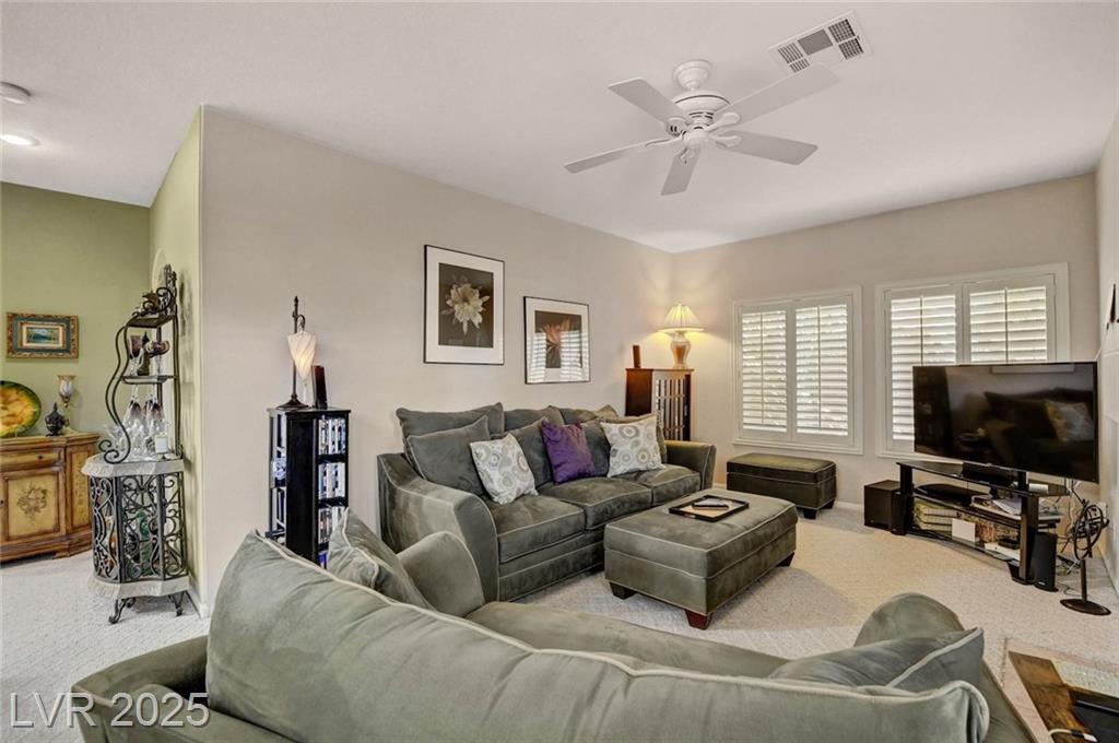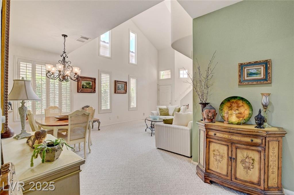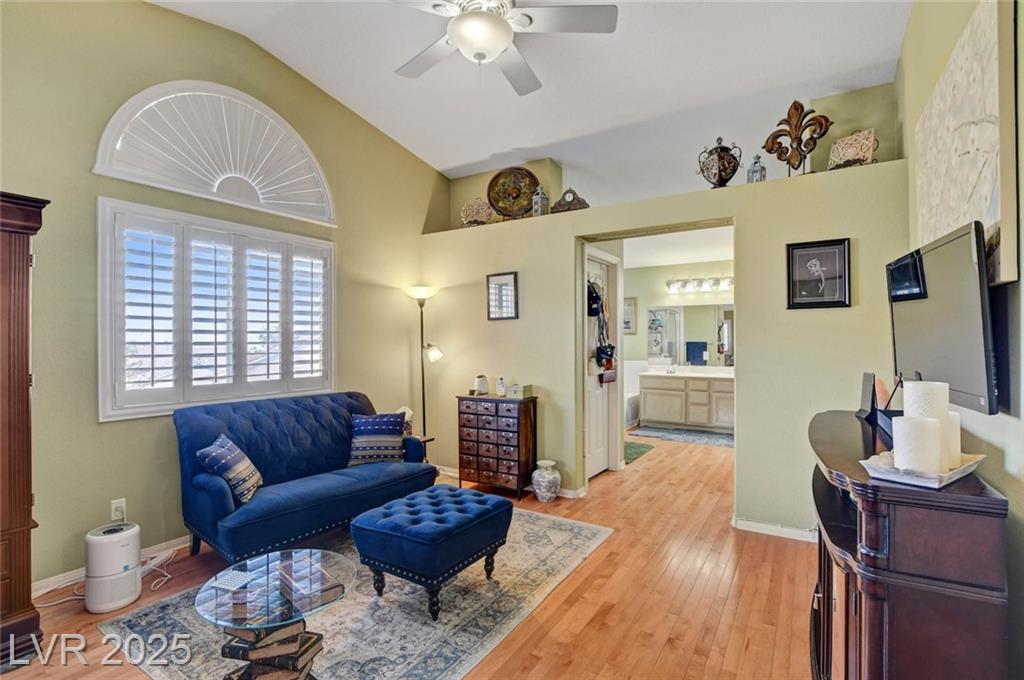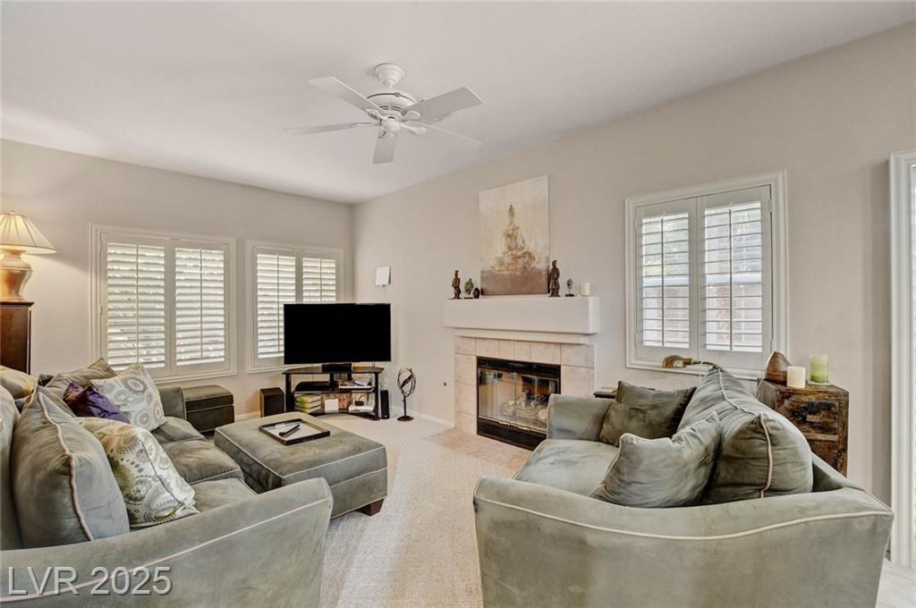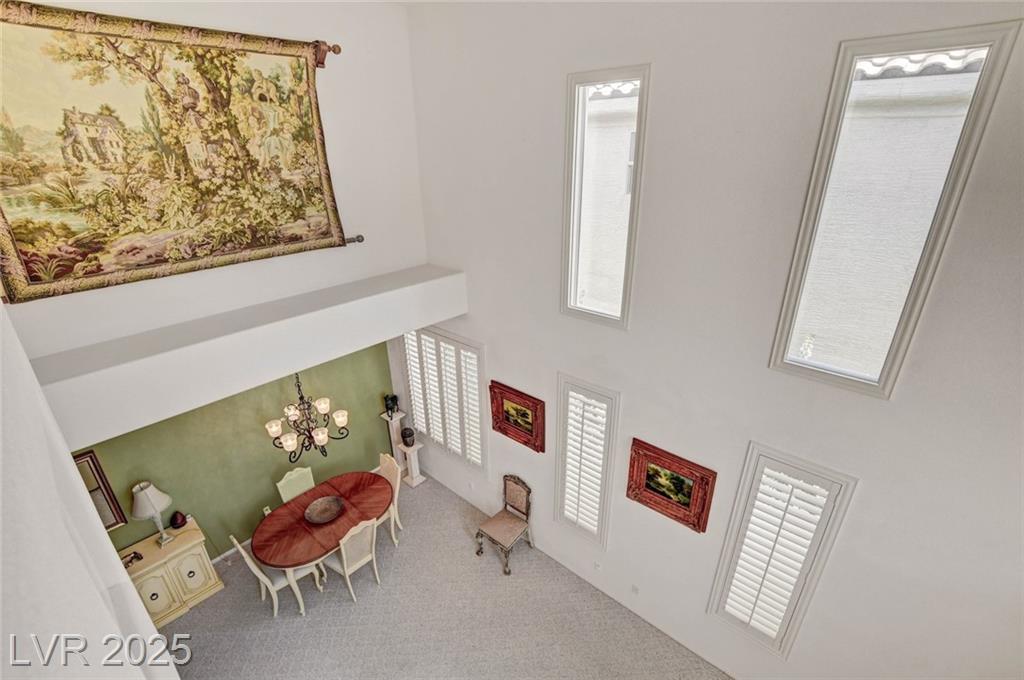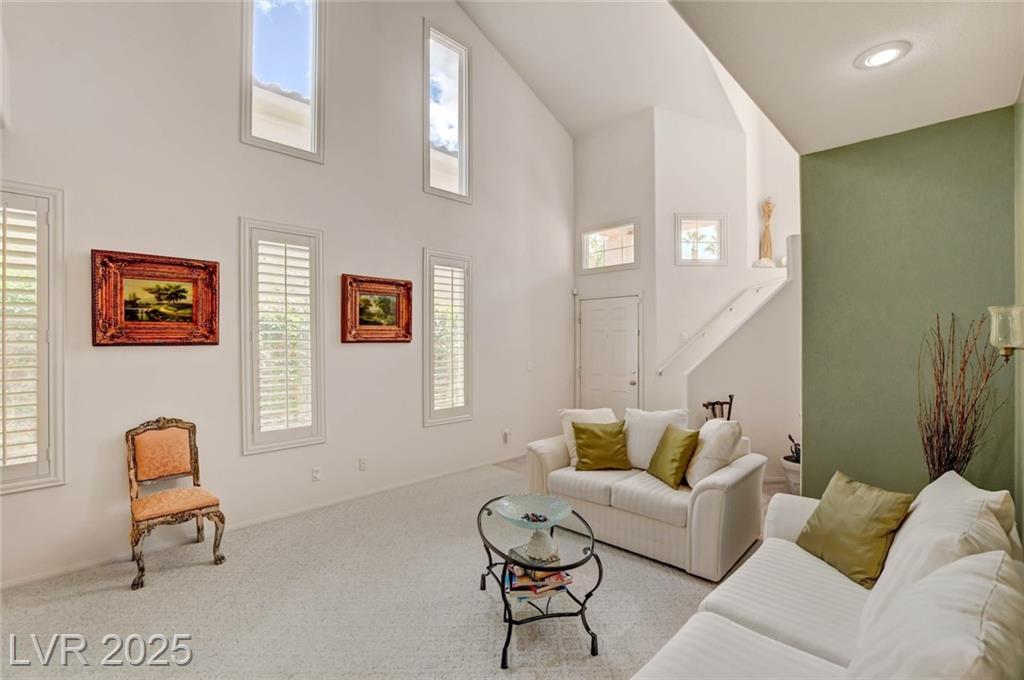 This 1992 sf, 2 level, 4 Bed, 3 bath home sits on a 5663 sf gated parcel located @ The Trails in Summerlin. Experience an airy, open feel as you enter into the flowing floorplan w soaring 25 ft high ceilings. A fine tuned, well lit spacious home providing abundant natural light & interior shutters on ALL windows. The stairs leads up new wood-like flooring stears you to the primary suite w retreat space. The primary bath featuring a large jetted soaking tub, H&H sinks, separate oversized shower w/i closet. This kitchen just got new stainless appliances, & it's positioned next to the backyard, great for entertaining friends & family. A formal dining room, 2 living / family rooms. The one w the fireplace is perfect for cozy nights w the family. The tranquil manicured backyard is great for morning coffee or relaxing evenings. Close to freeways, dining, shopping & entertainment, all in the heart of Summerlin. This floorplan is EXCELLENT...it's just waiting for your personal touches.