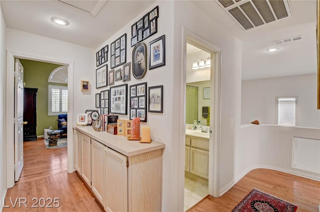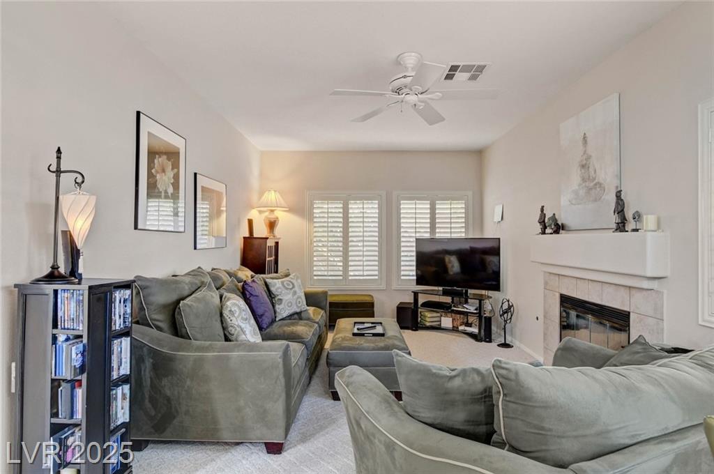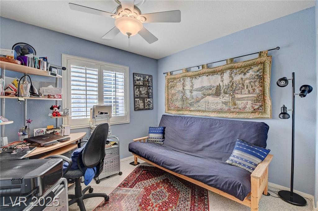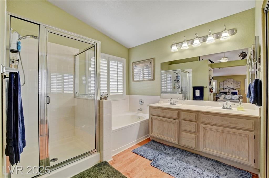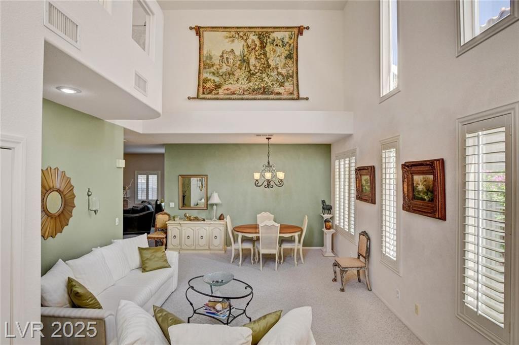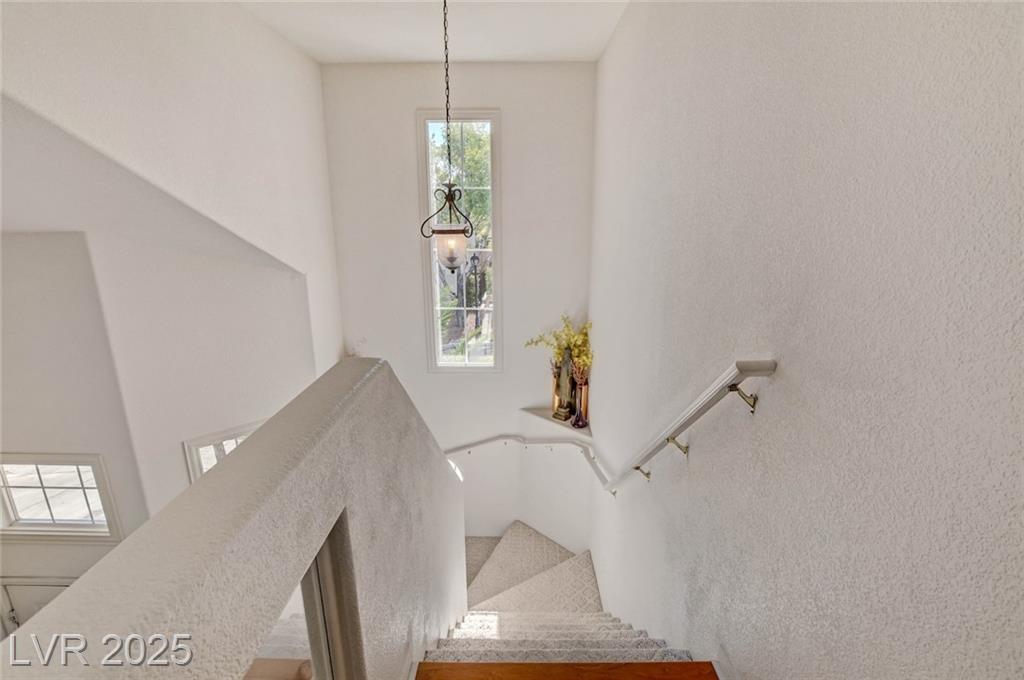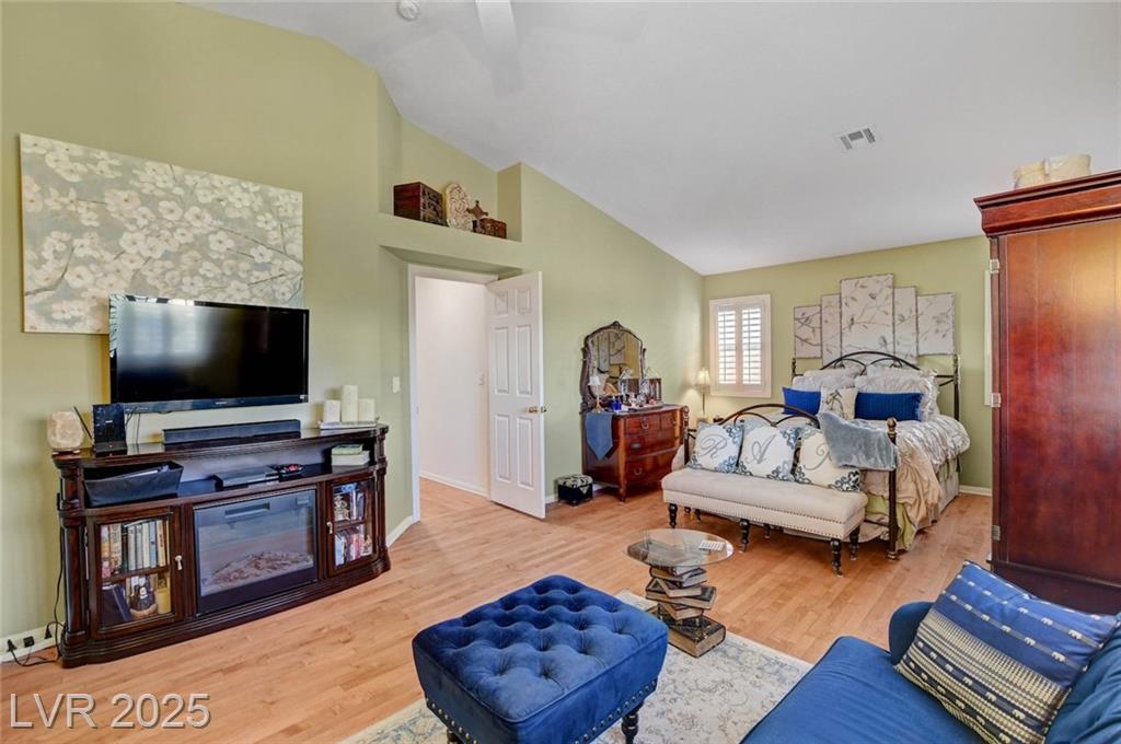 This 1992 sf, 2 level, 4 Bed, 3 bath home sits on a 5663 sf gated parcel located @ The Trails in Summerlin. Experience an airy, open feel as you enter into the flowing floorplan w soaring 25 ft high ceilings. A fine tuned, well lit spacious home providing abundant natural light & interior shutters on ALL windows. The stairs leads up new wood-like flooring stears you to the primary suite w retreat space. The primary bath featuring a large jetted soaking tub, H&H sinks, separate oversized shower w/i closet. This kitchen just got new stainless appliances, & it's positioned next to the backyard, great for entertaining friends & family. A formal dining room, 2 living / family rooms. The one w the fireplace is perfect for cozy nights w the family. The tranquil manicured backyard is great for morning coffee or relaxing evenings. Close to freeways, dining, shopping & entertainment, all in the heart of Summerlin. This floorplan is EXCELLENT...it's just waiting for your personal touches.